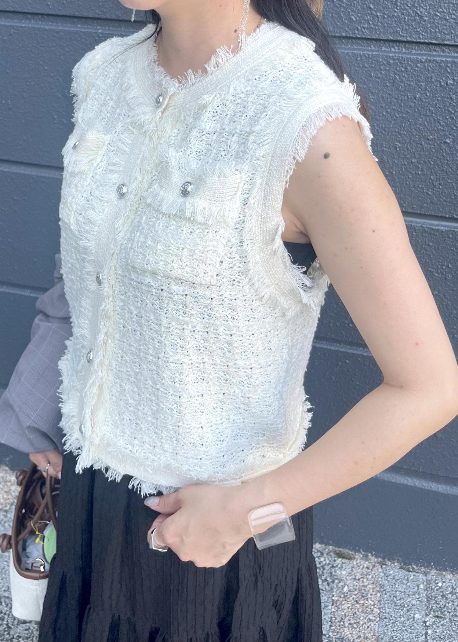 【WEB限定カラー】【サマー・ツイード】着丈が選べるジレベスト/スリーブレスカーディガン