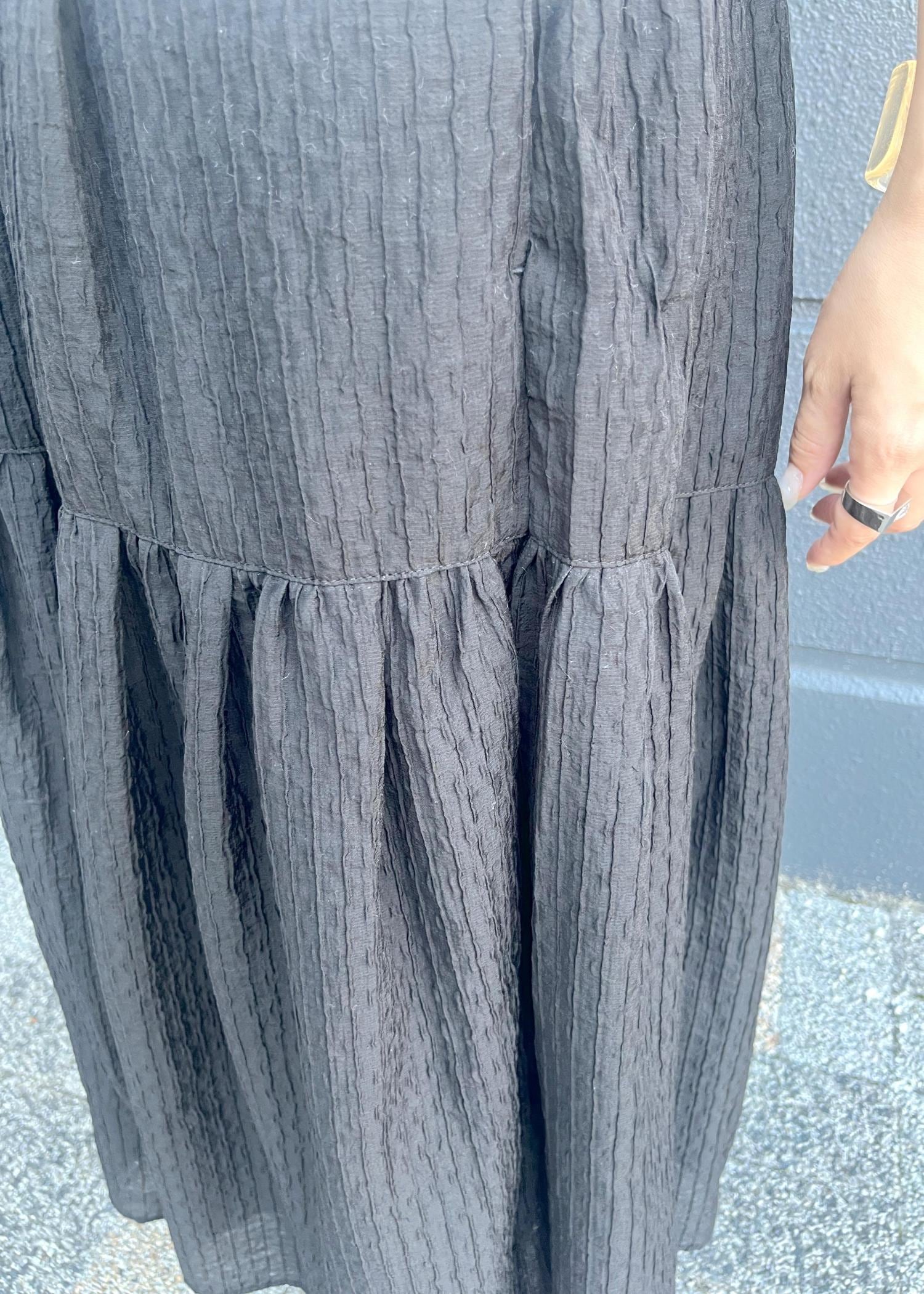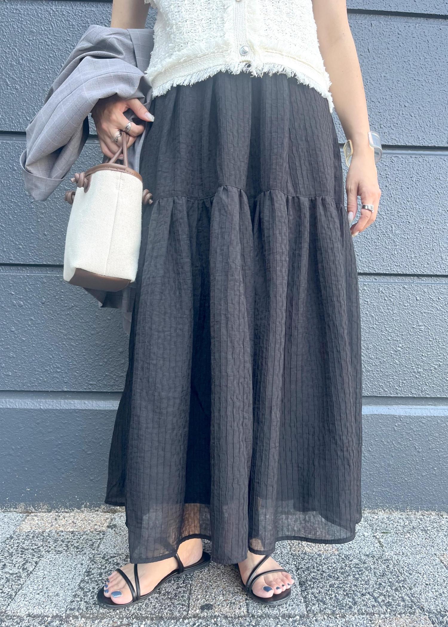 マキシ丈より少し短めの丈感なので階段などで引きずらなそうです◡̈カジュアルからフェミニンまで幅広いコーデで着まわせます。