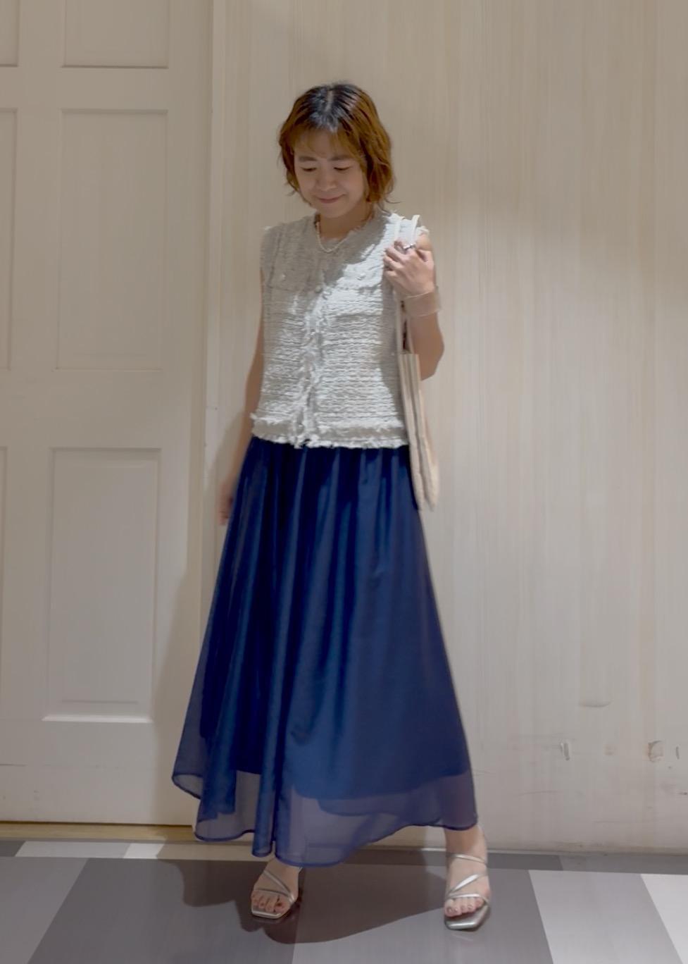 ROPÉ PICNICエアリーシアーギャザーロングスカートネイビー / 38¥6,490レビューとってもエアリーで、発色の綺麗なスカートです◎