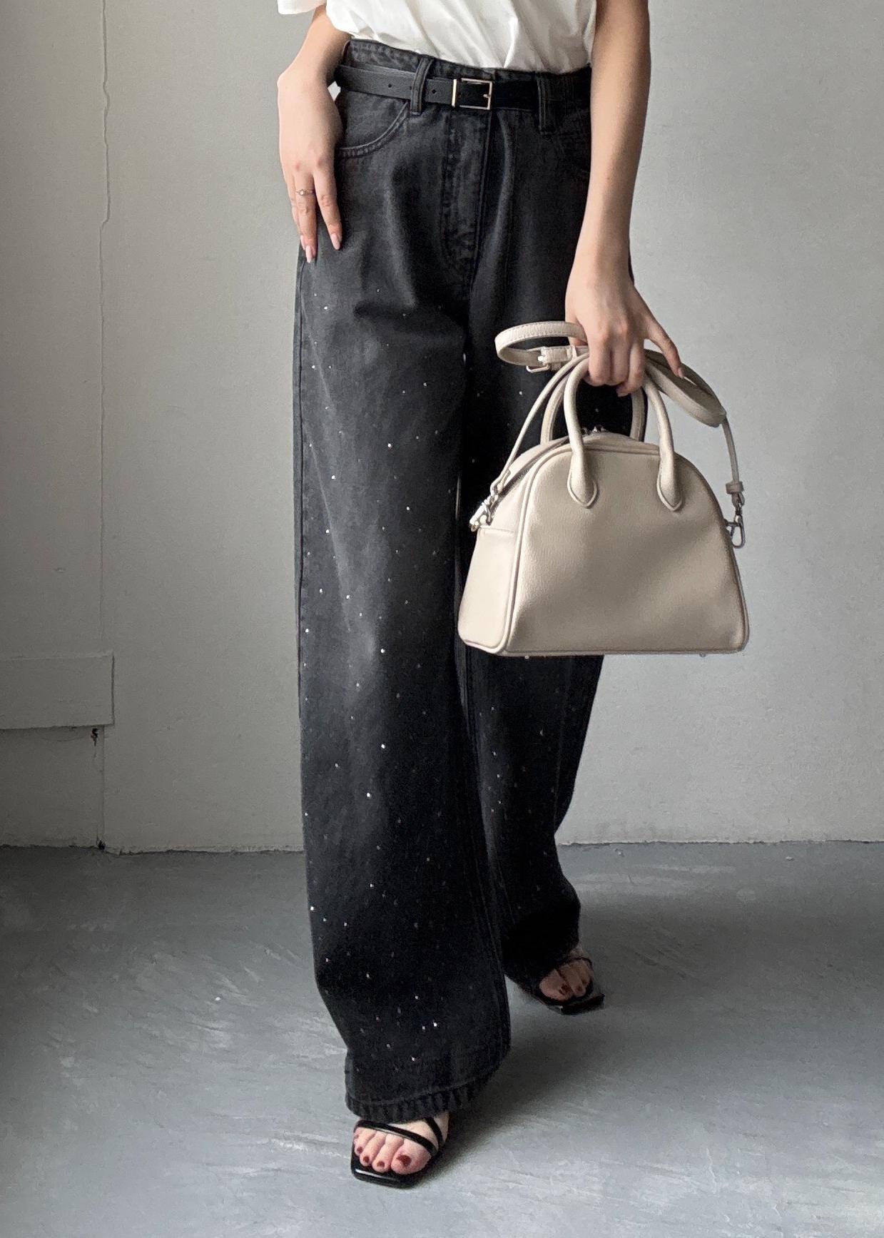 ブラック系(02)の色味は、暗すぎない濃いグレーのような色味でシルバーに輝くビジューが散りばめられています。