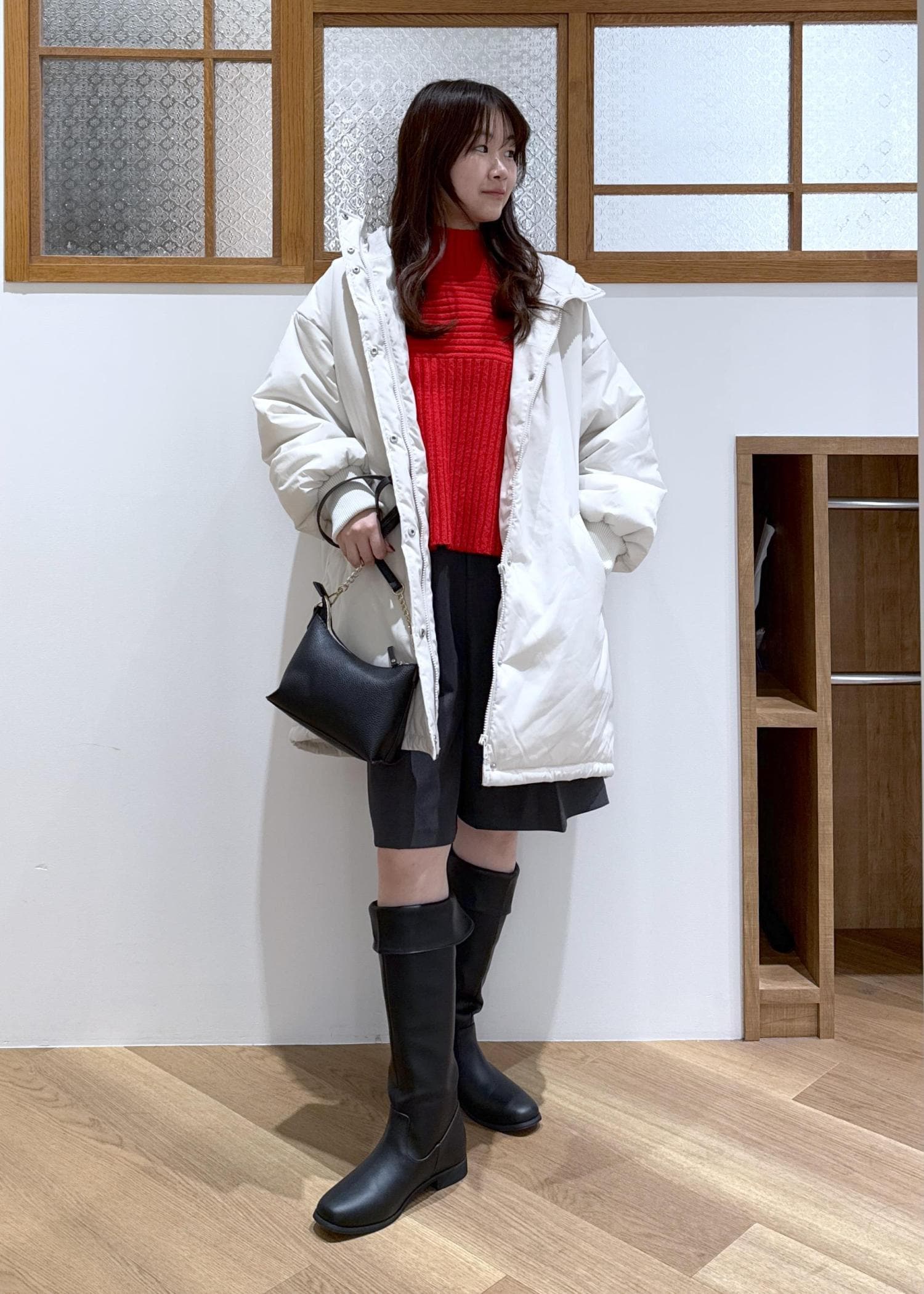 形はワイドめのシルエットで脚のラインを拾いにくいです。腰あたりからまっすぐ落ちるラインが綺麗で、スタイルアップ効果があります。