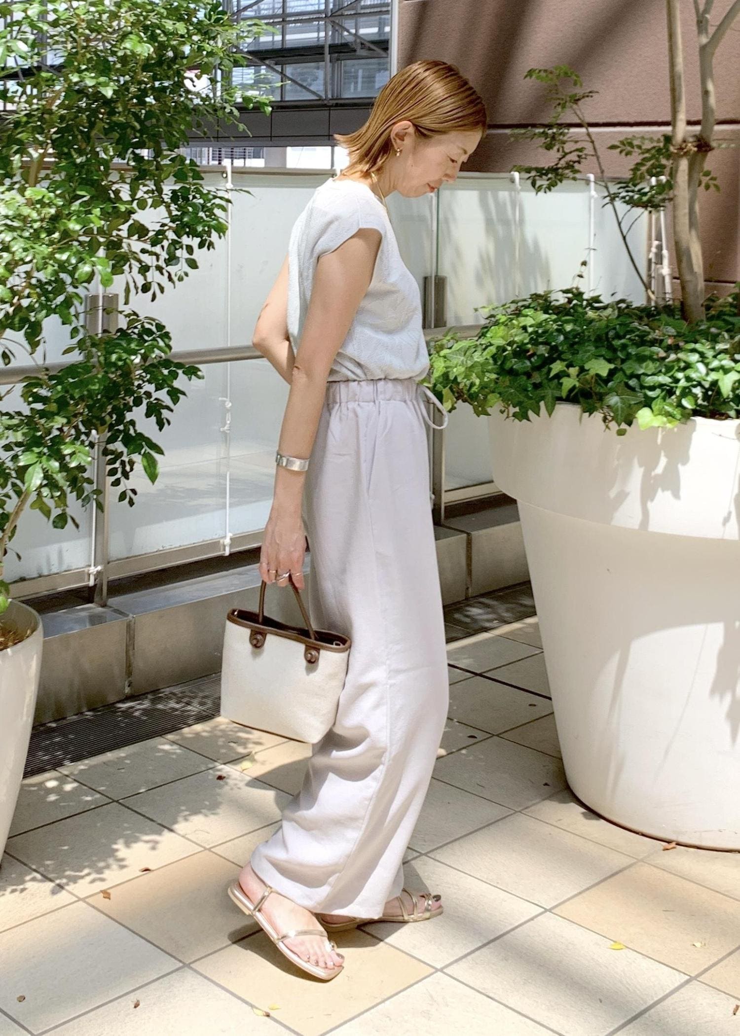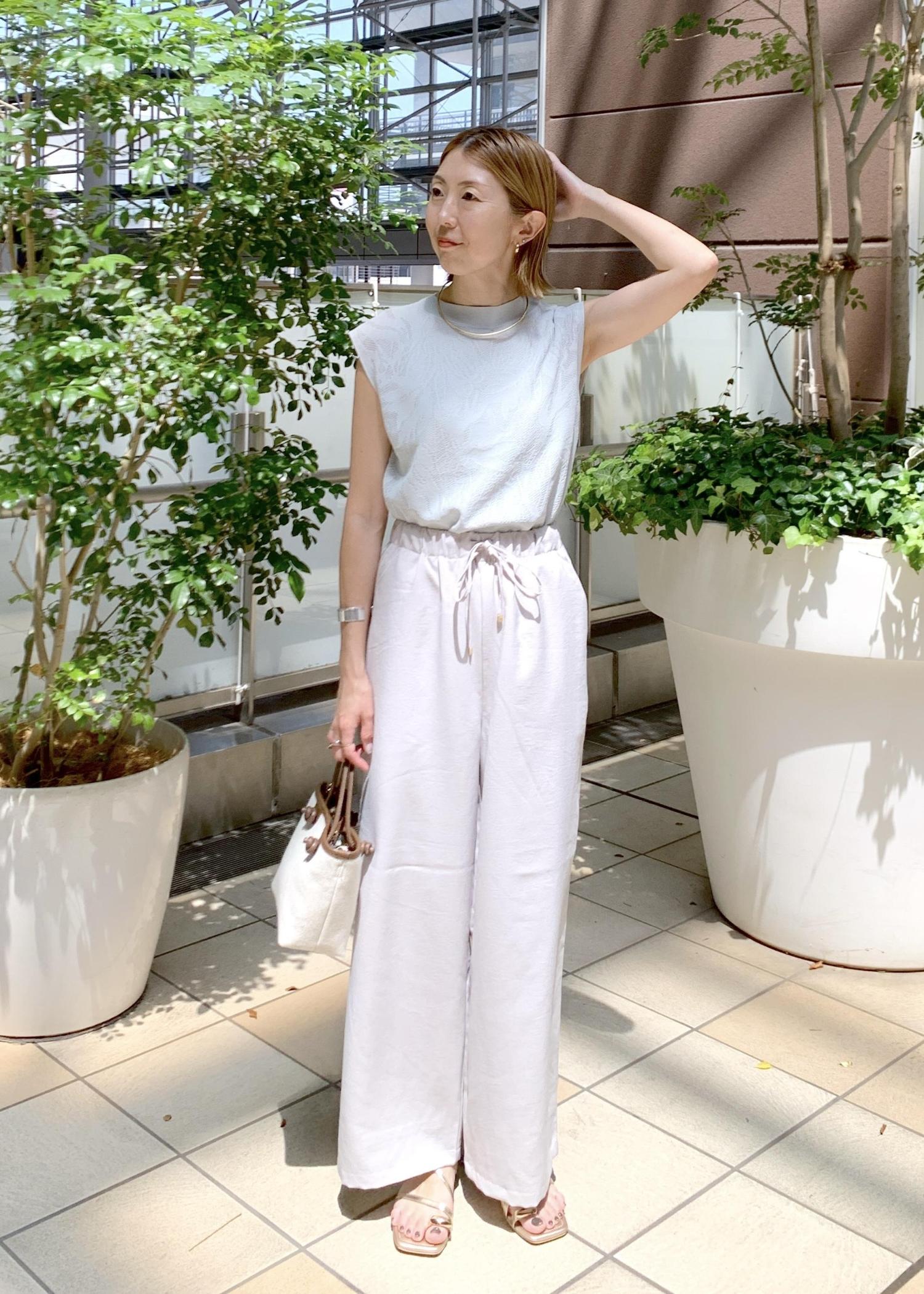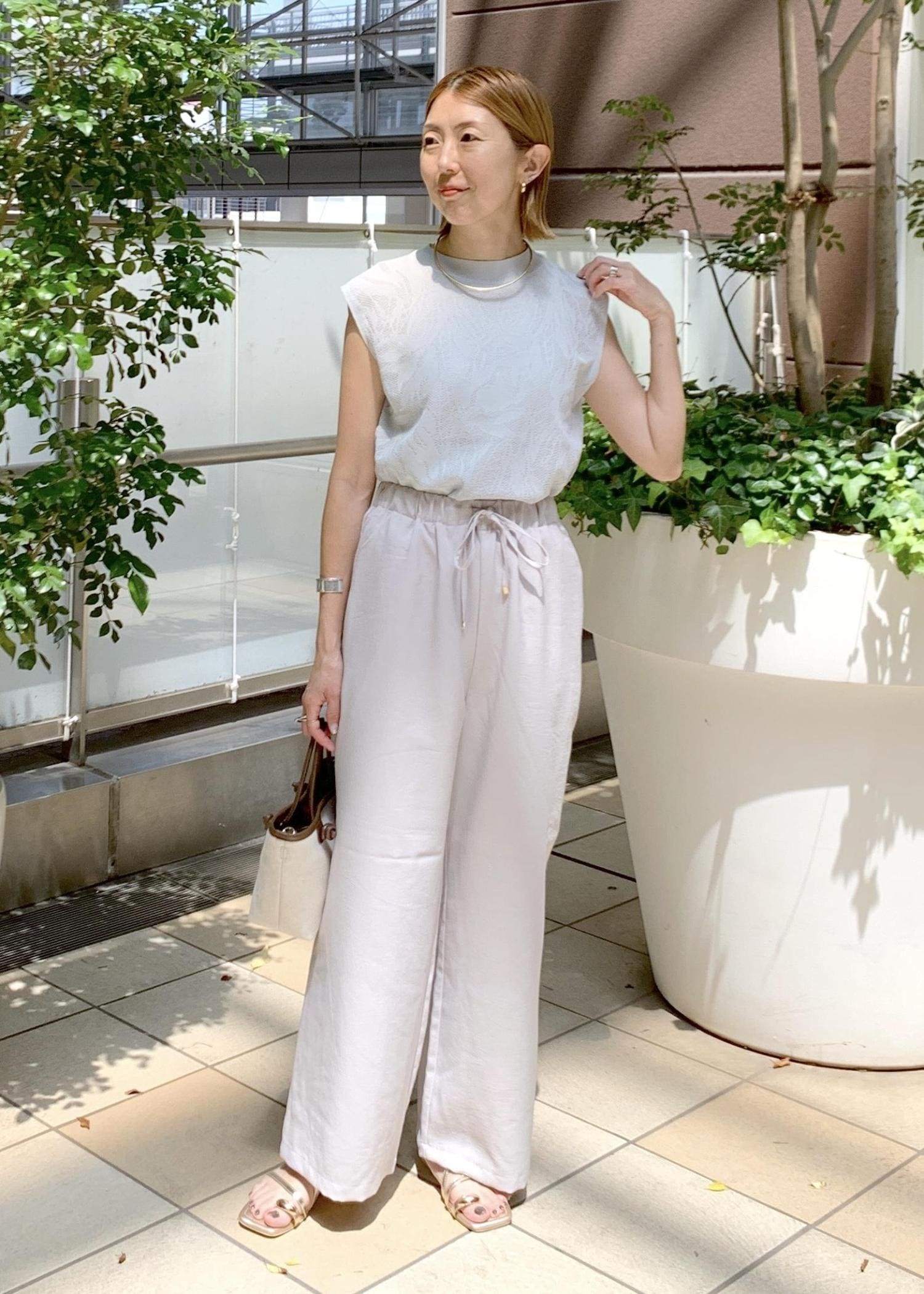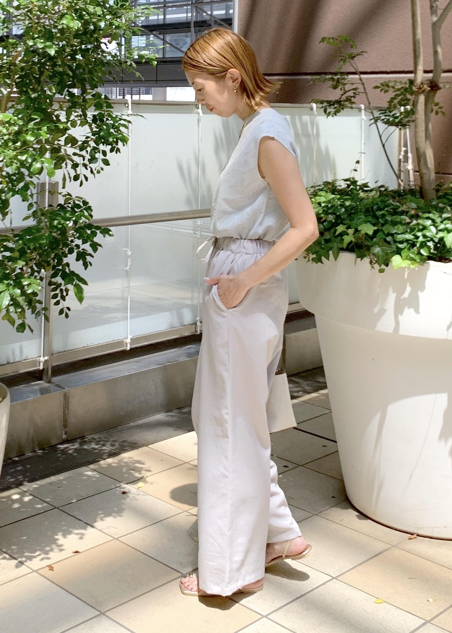 甘めなトップスなので、大人はワイドパンツなどクールなアイテムと合わせても◎ -