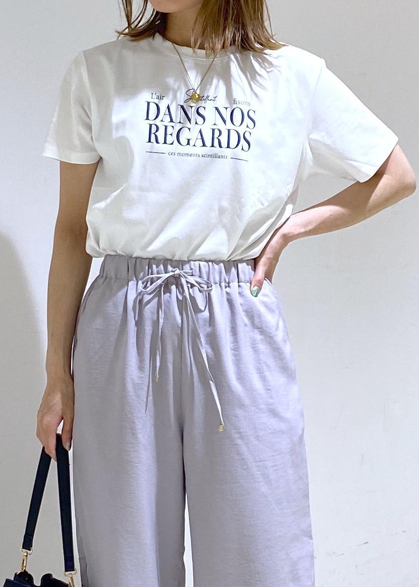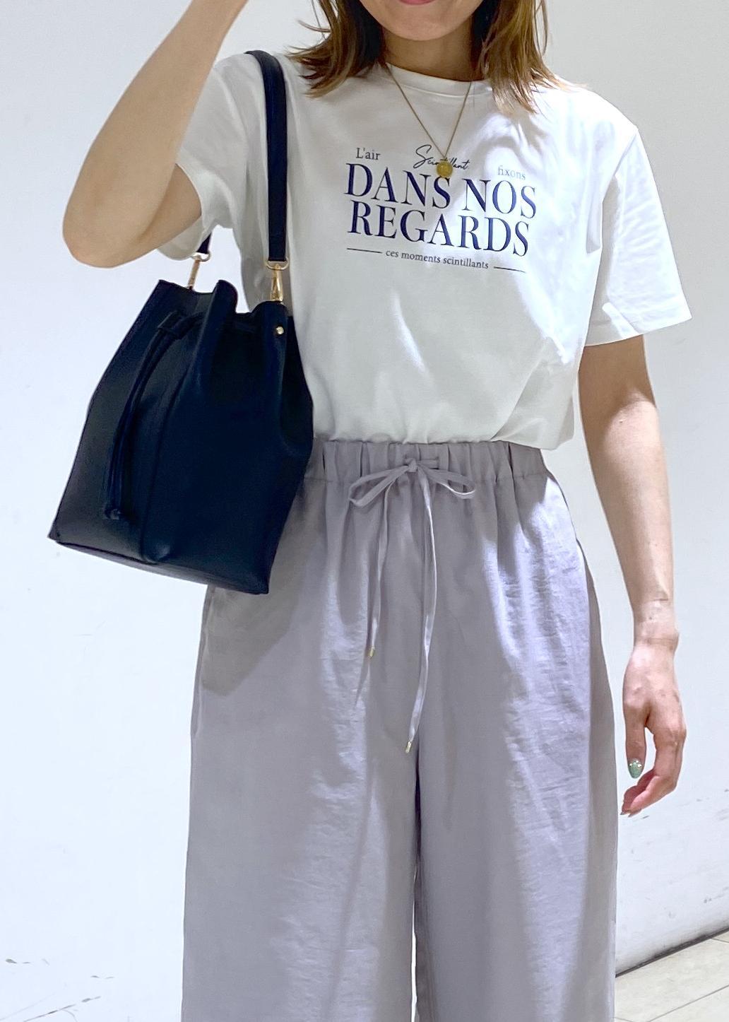 白Tシャツにリラックス感のあるワイドパンツを合わせた