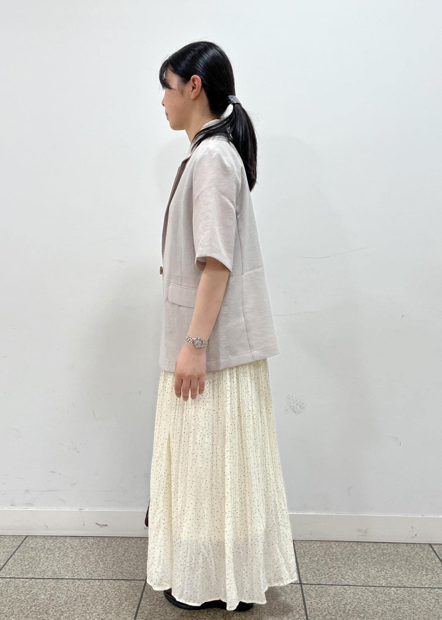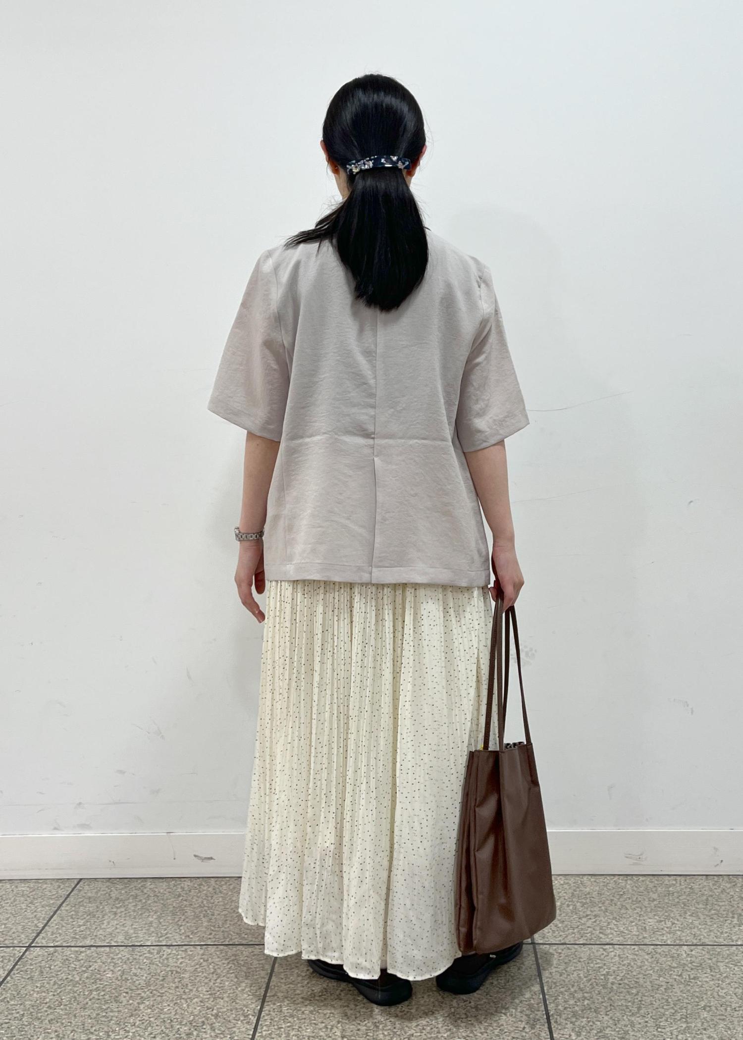 5分袖なので、二の腕出さずに涼しげなコーディネートができます。 -