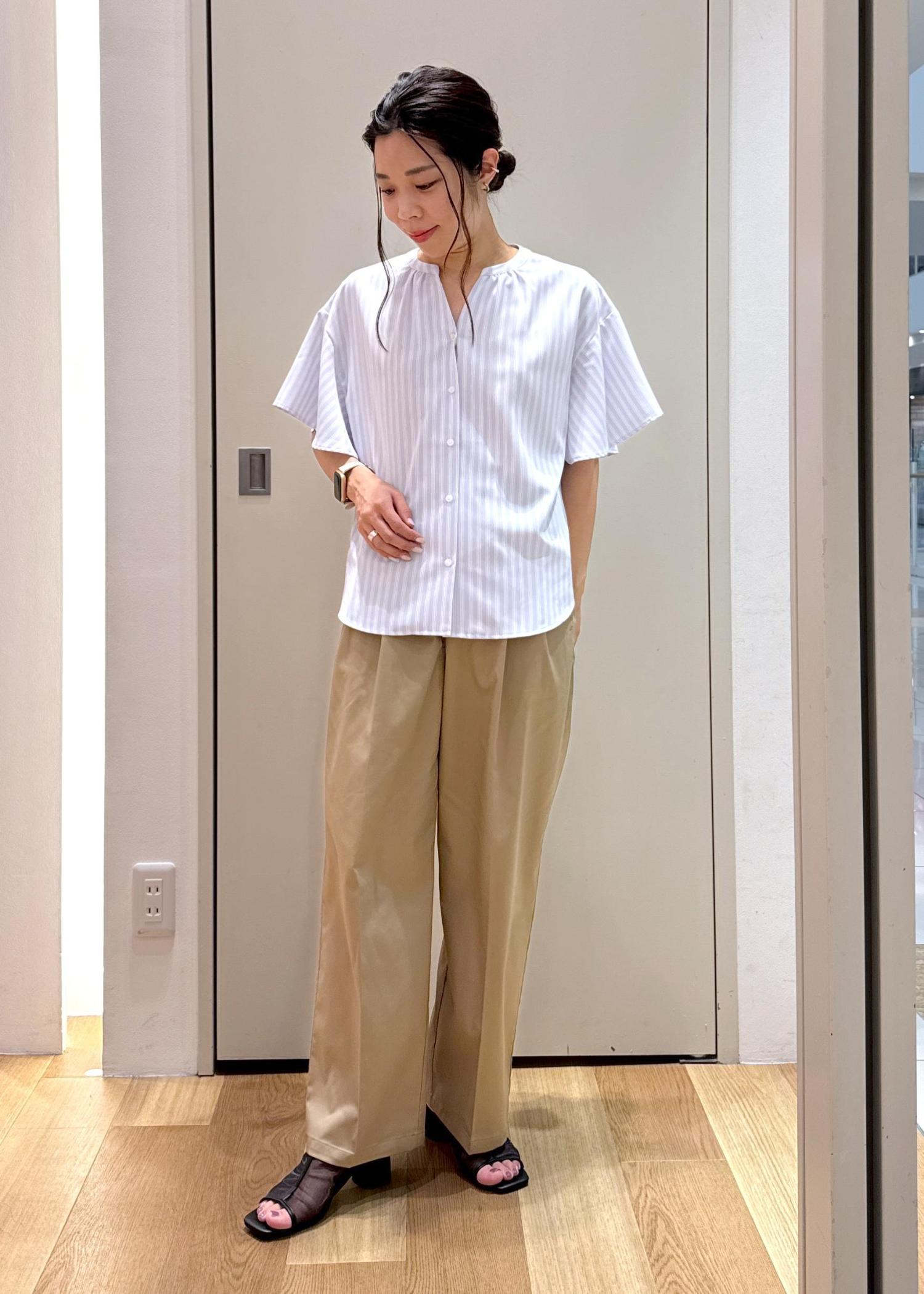 人気のフレアブラウスにチノライクパンツを合わせて綺麗めカジュアルなコーディネートにしてみました!