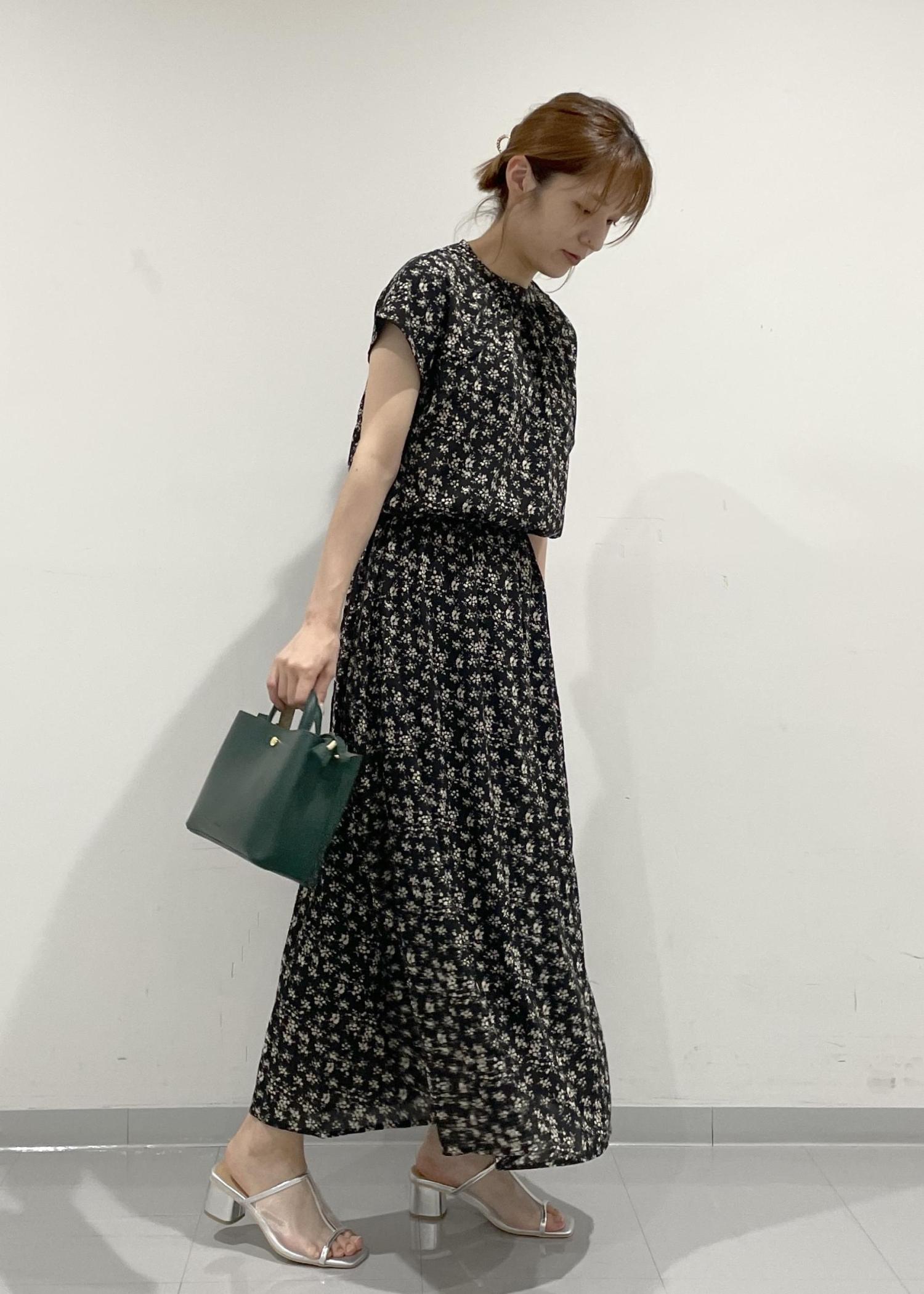 1枚で楽に着れるワンピースでデザインも可愛いので気分が上がります♪サンダルの透け感も夏らしさを感じさせてくれます!