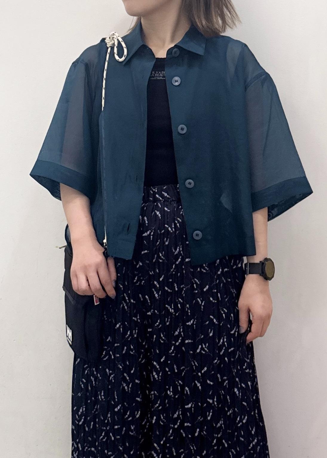 少しシャリ感のある素材で透け感があるので、キャミソールやTシャツ合わせなどインナーで様々な着こなしができるシャツカーディガンです。 -