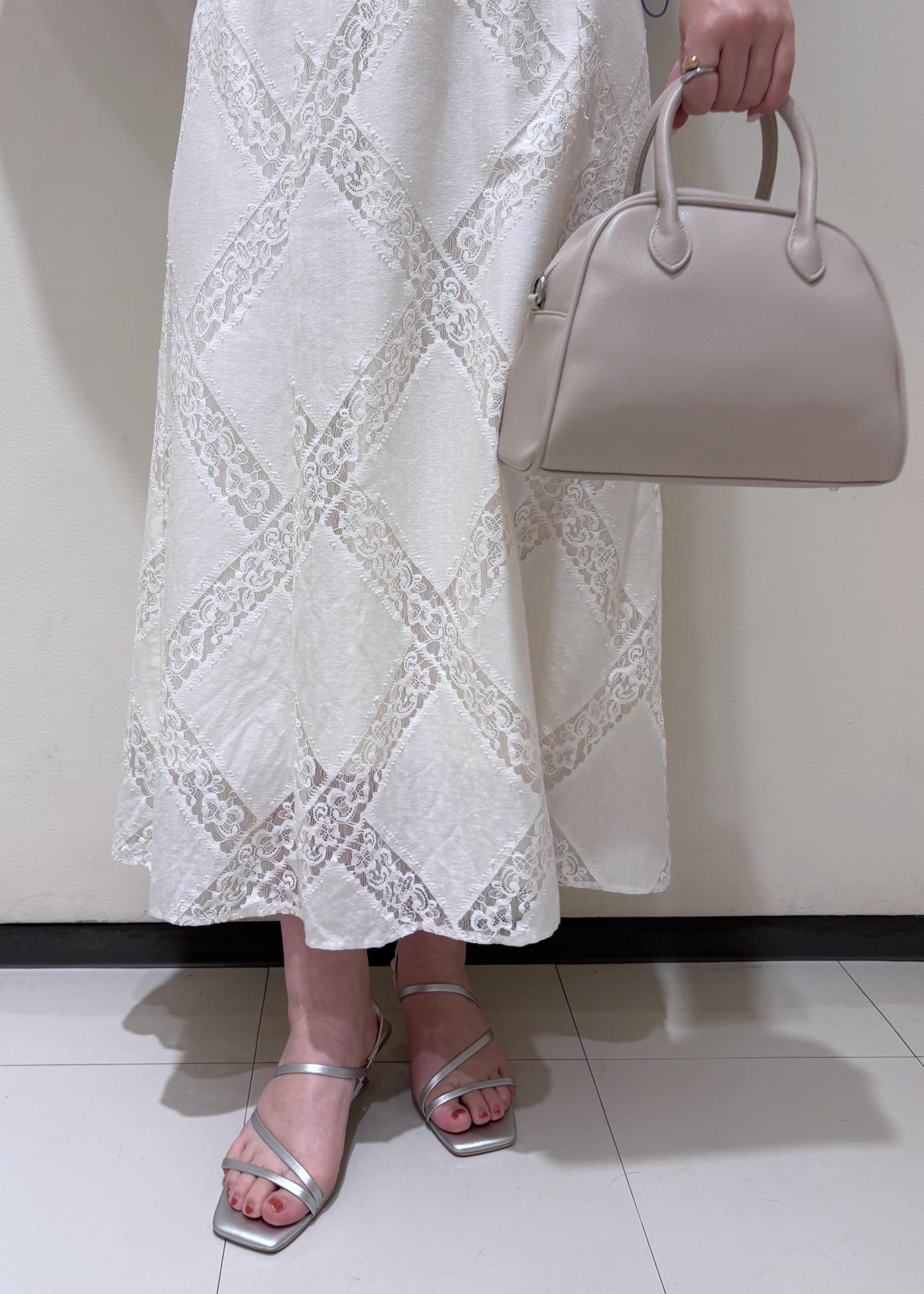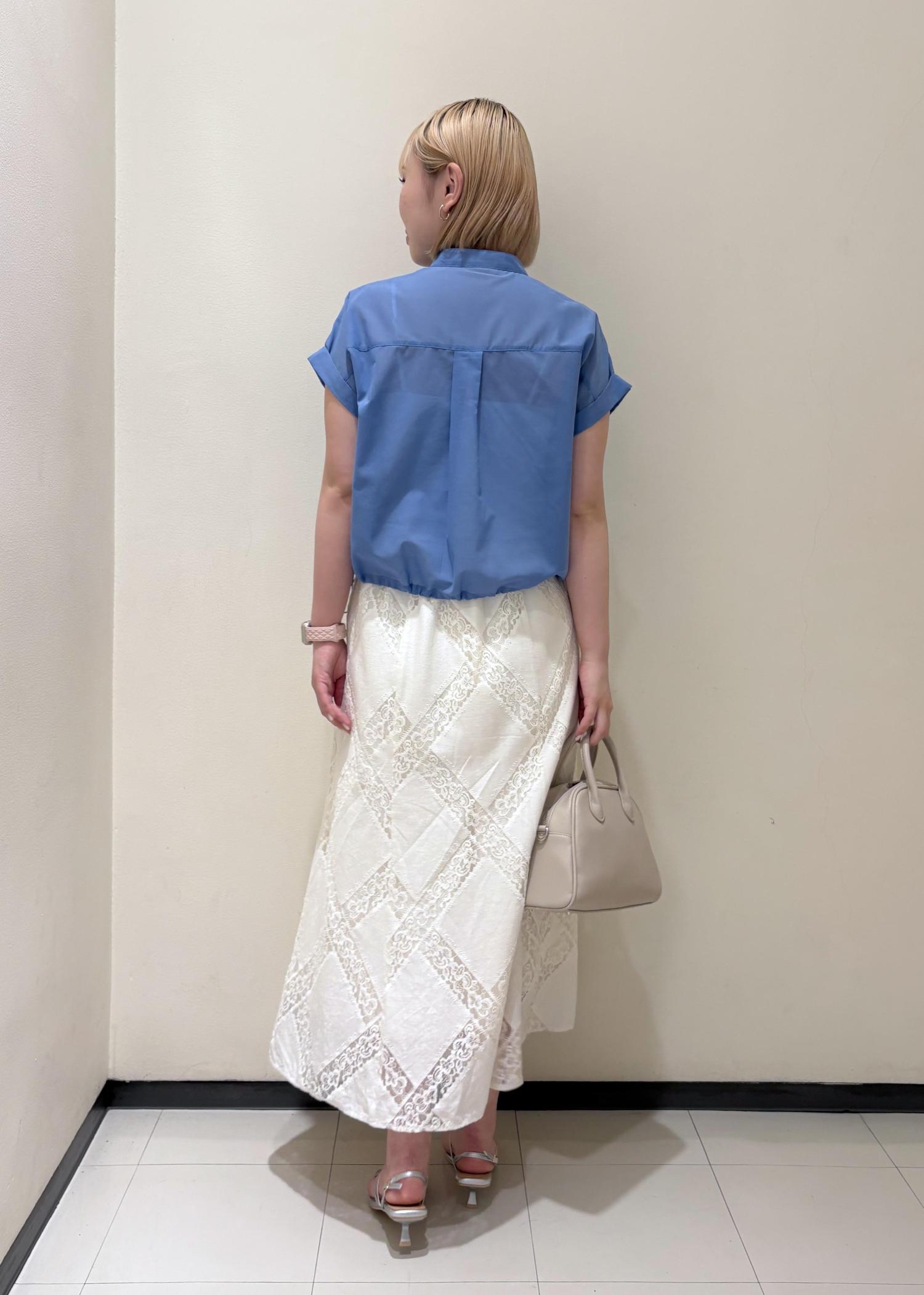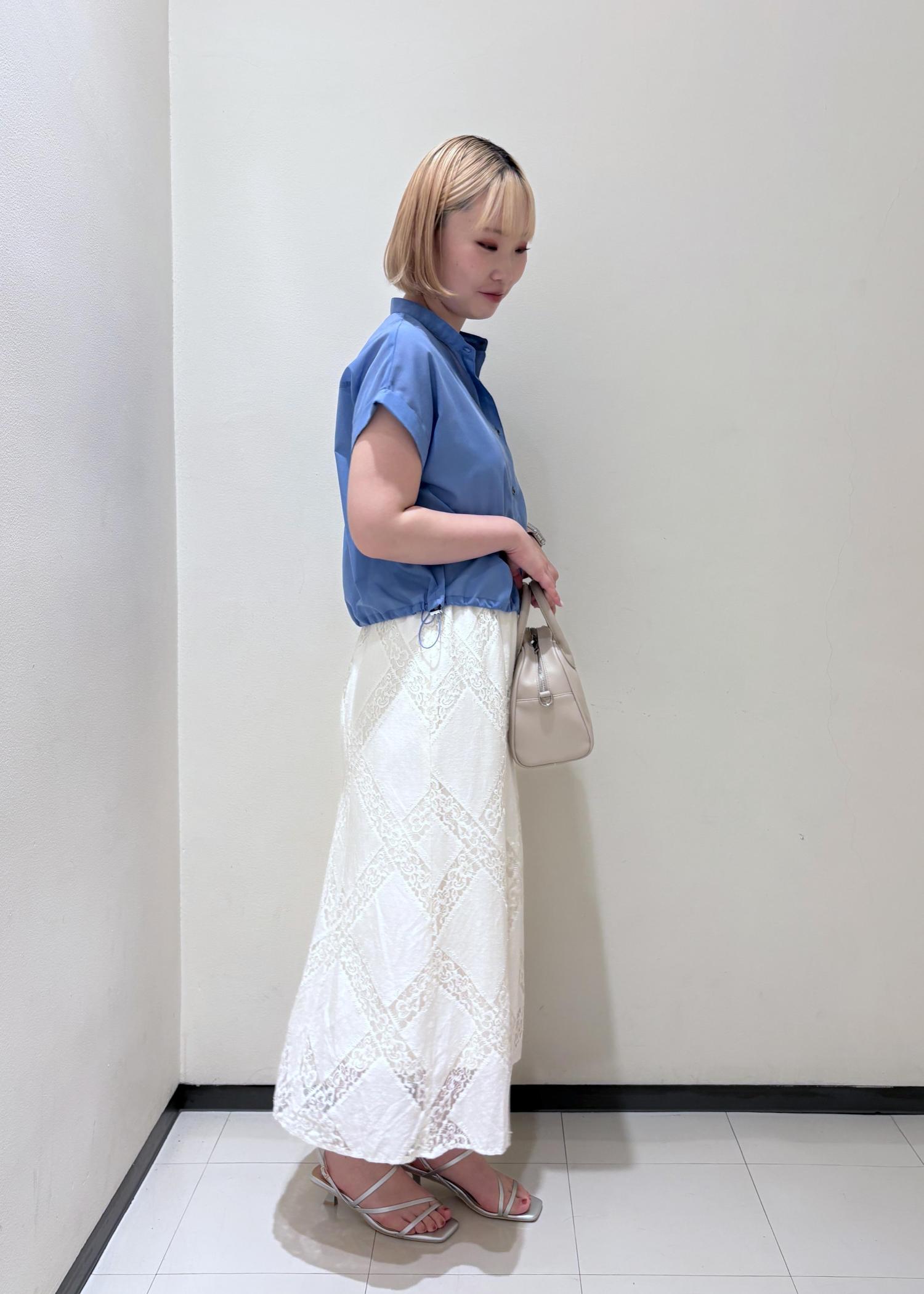 Aラインのレーススカートと合わせることで女性らしい印象にしました。