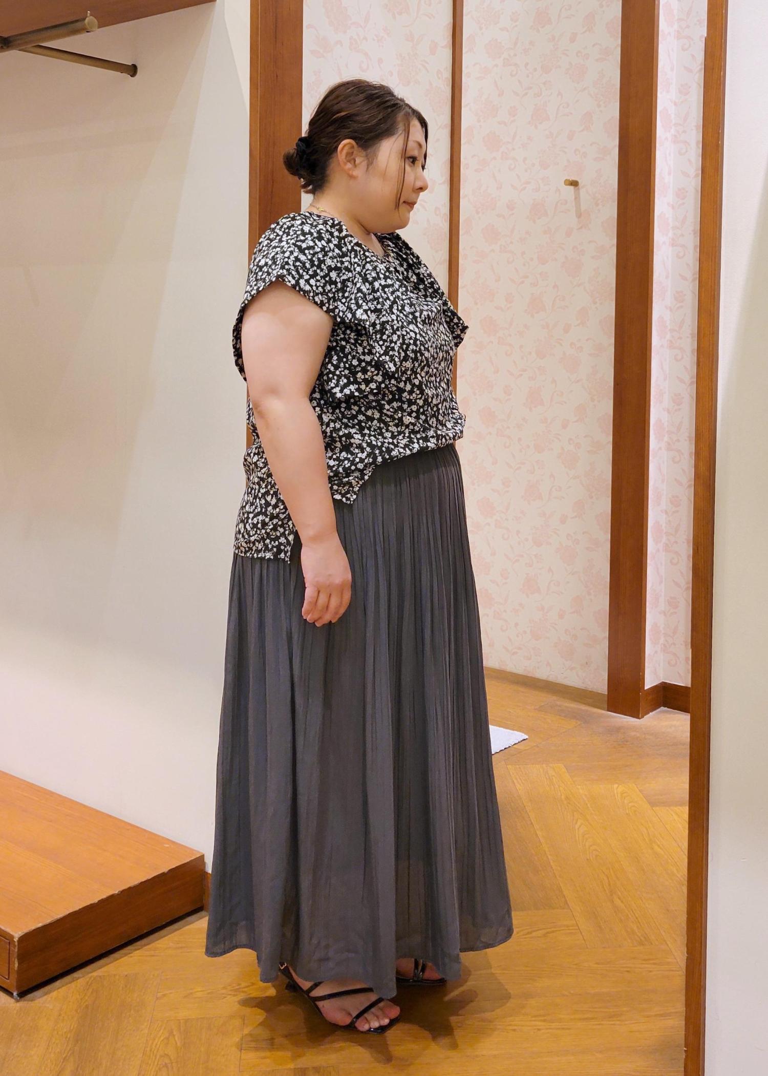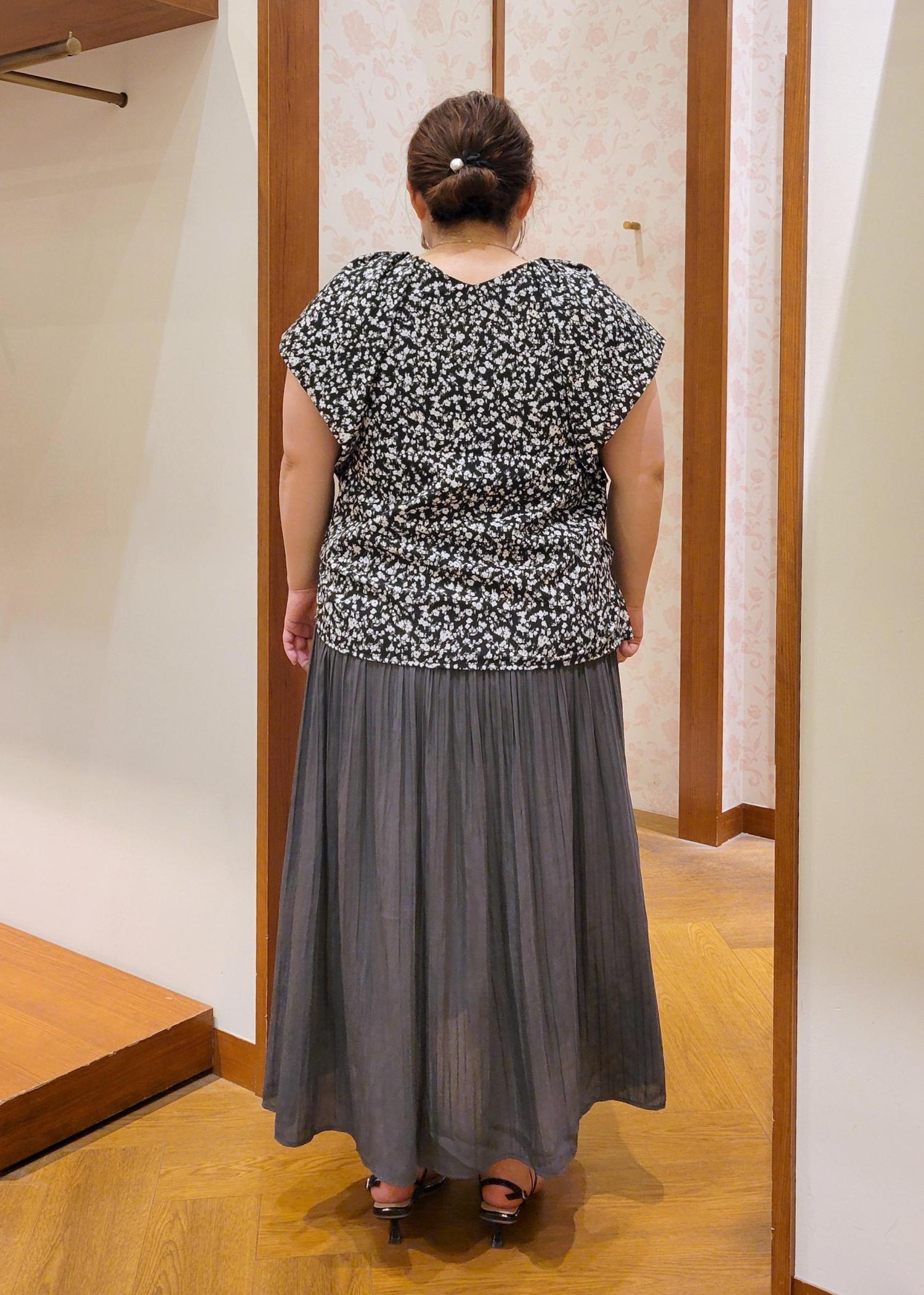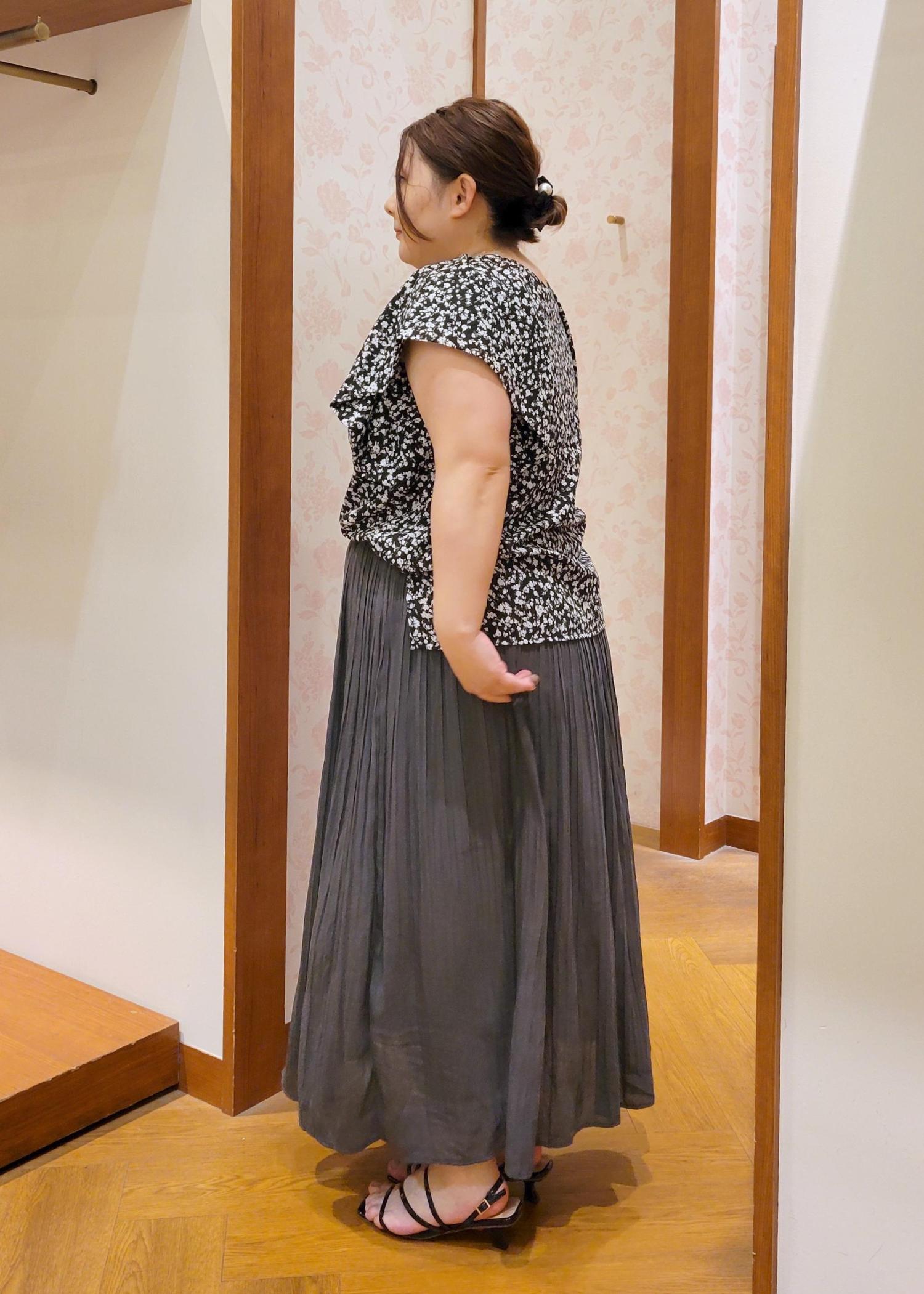 ROPÉ PICNIC着丈が選べるエアリープリーツスカートグレー / 38T¥3,993レビューウエストがゴム仕様になってるので締め付け感がなく着れます。低身長でも38Tサイズでも足首あたりの丈感なので引きずることはありません。裏地も付いてるので安心して着用できますよ。