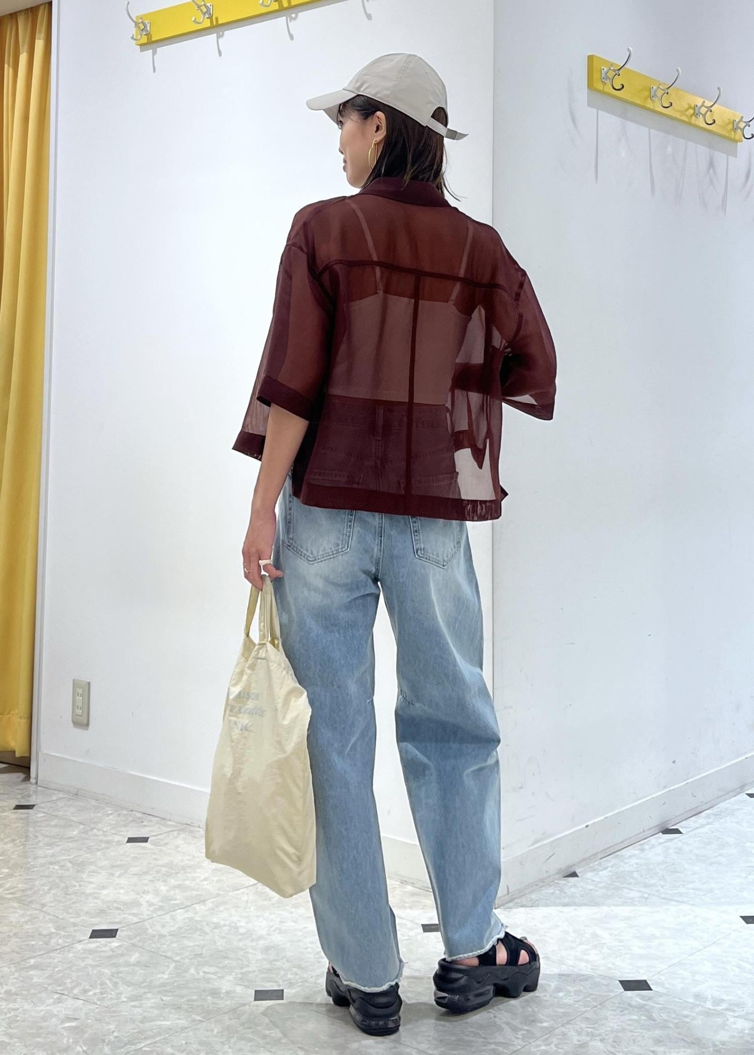 全体的に透け感のある軽い素材感で、暑い時期にも羽織りやすい生地感。