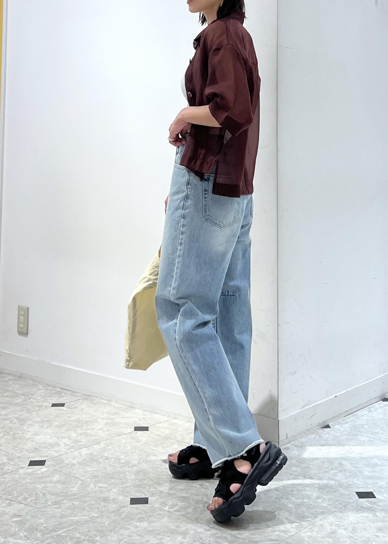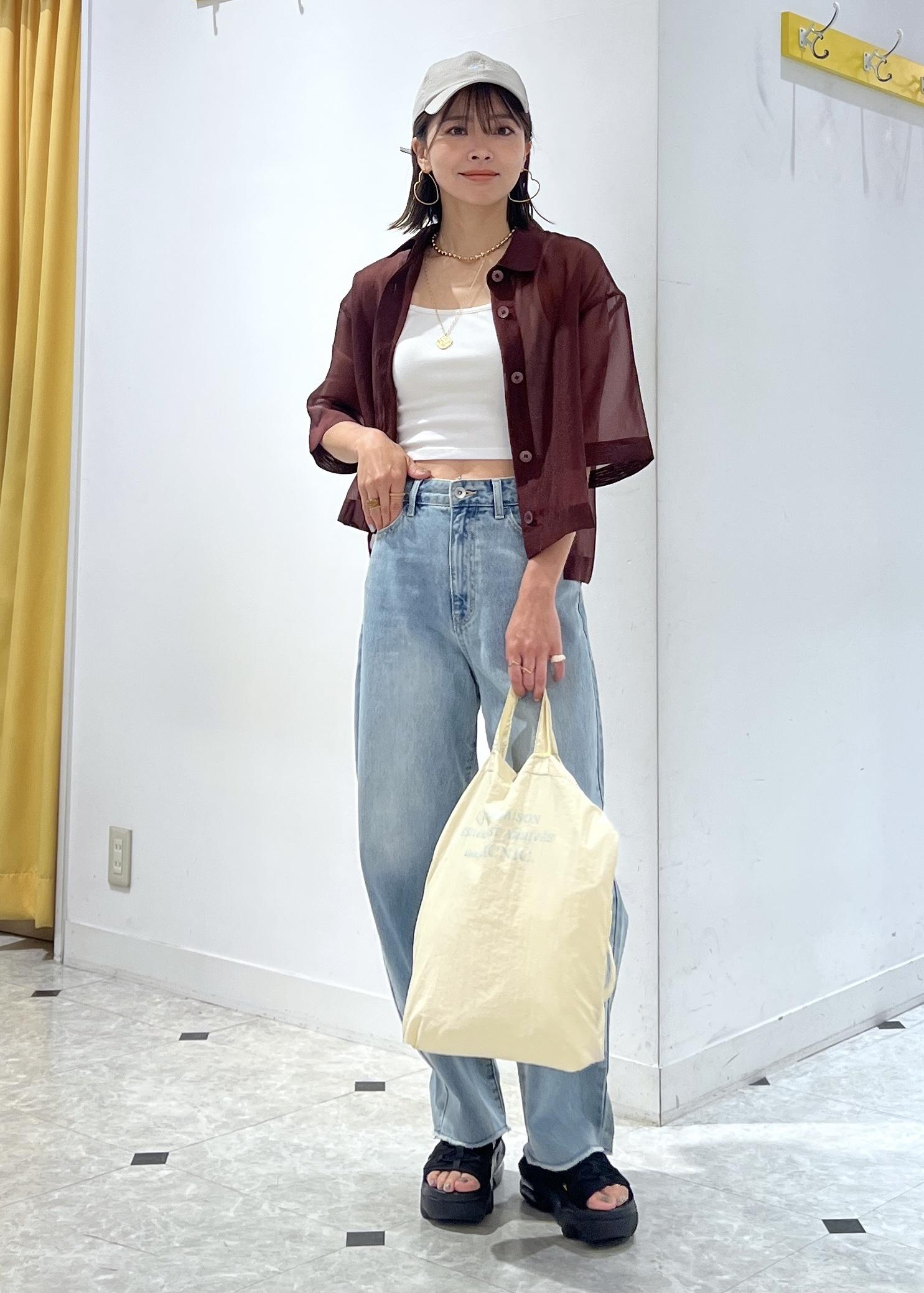 デニムでメンズライクなコーデですが、肌見せのバランスを調整して女の子らしさのあるスタイリングにしました。