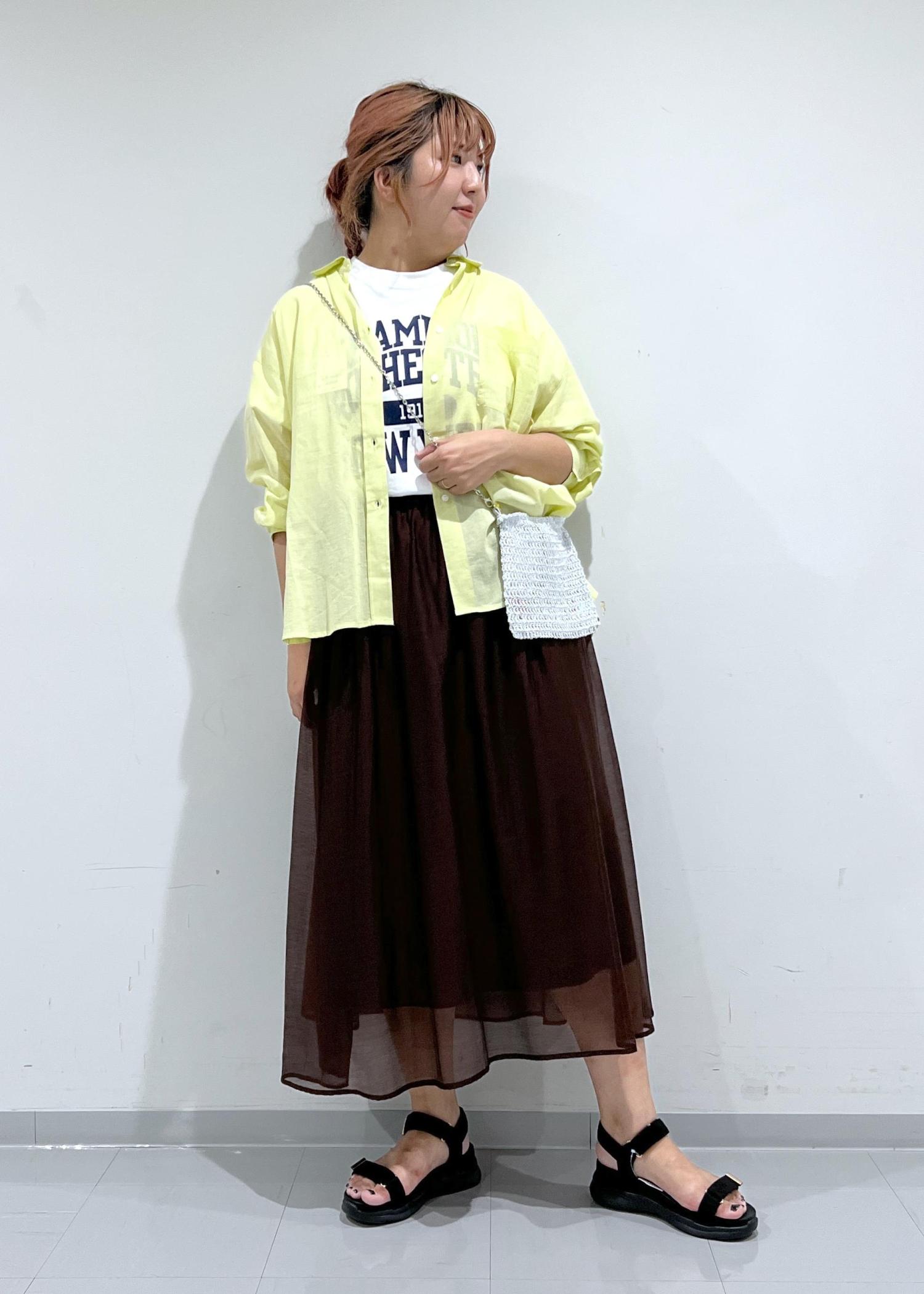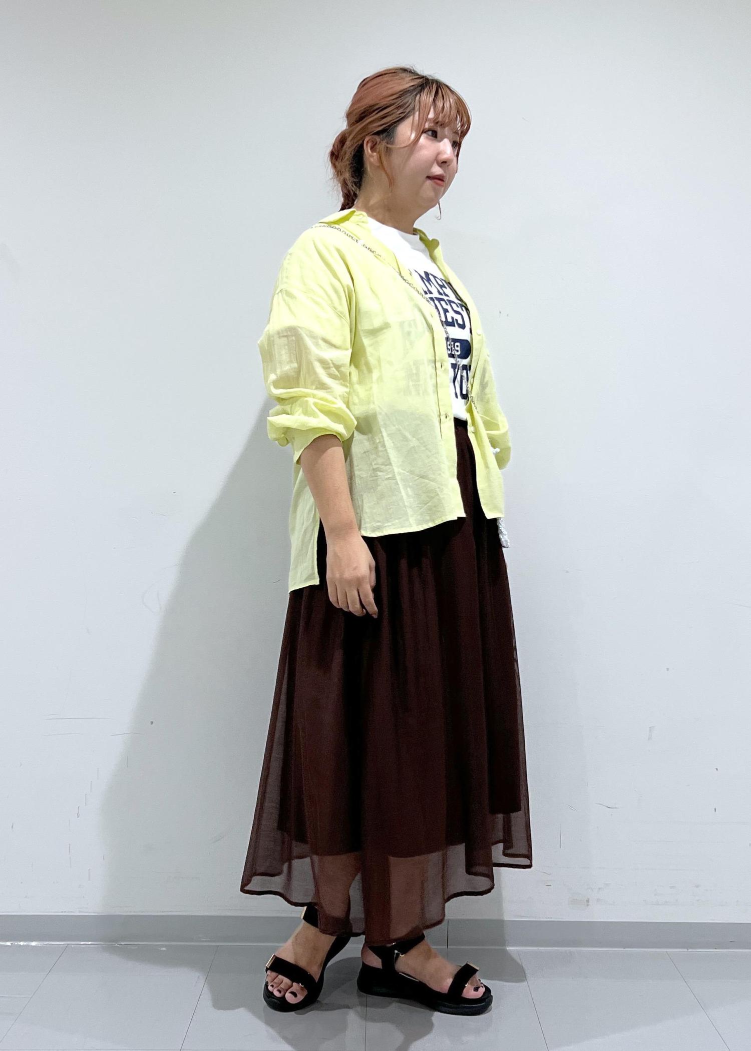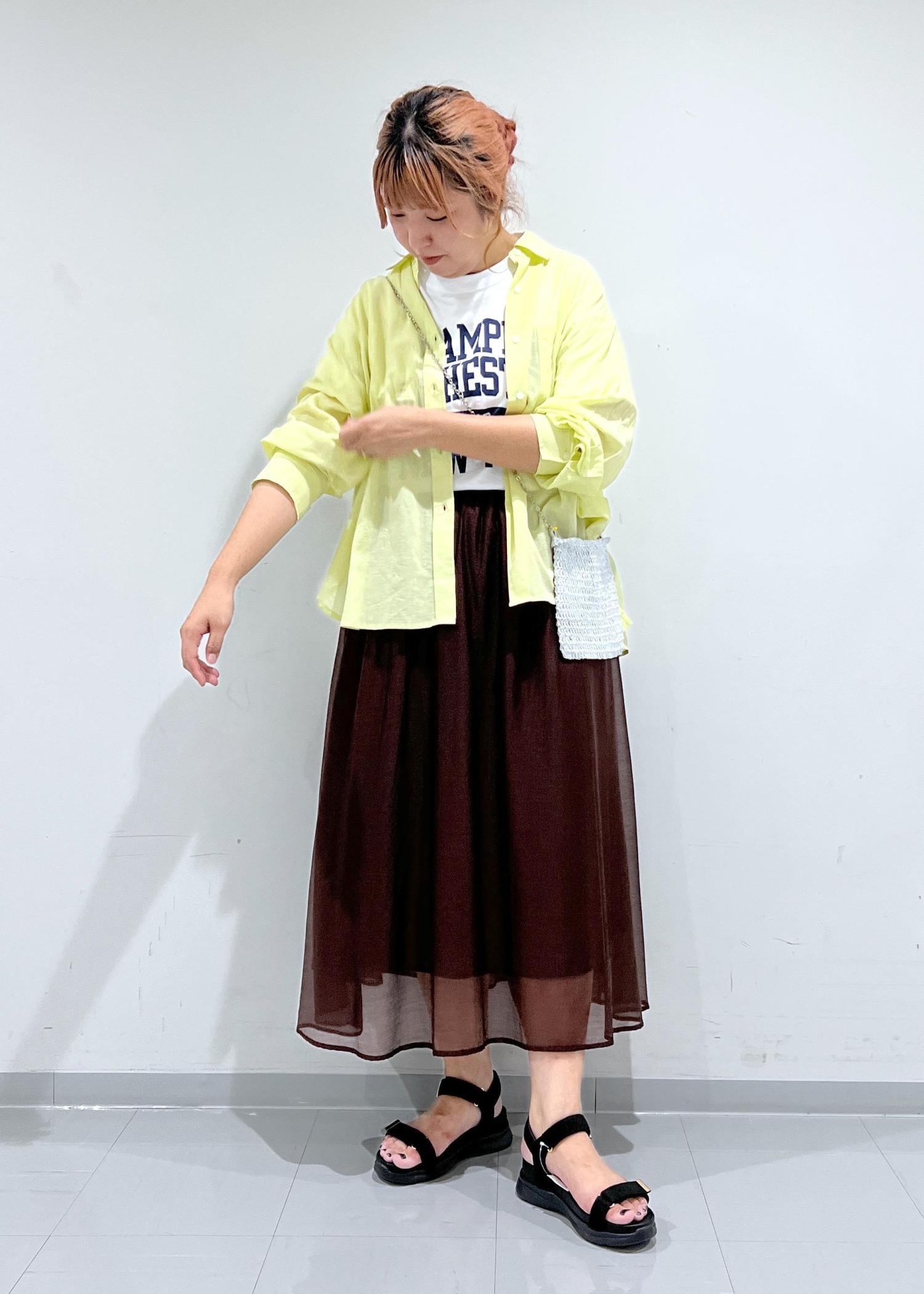 ROPÉ PICNICエアリーシアーギャザーロングスカートダークブラウン / 38¥6,490レビューシアー感が夏らしいスカート。ウエストゴムは緩めの作りでストレスフリーです。ふんわりしたシルエットですがギャザーが多くないので腰周りすっきり着られます。