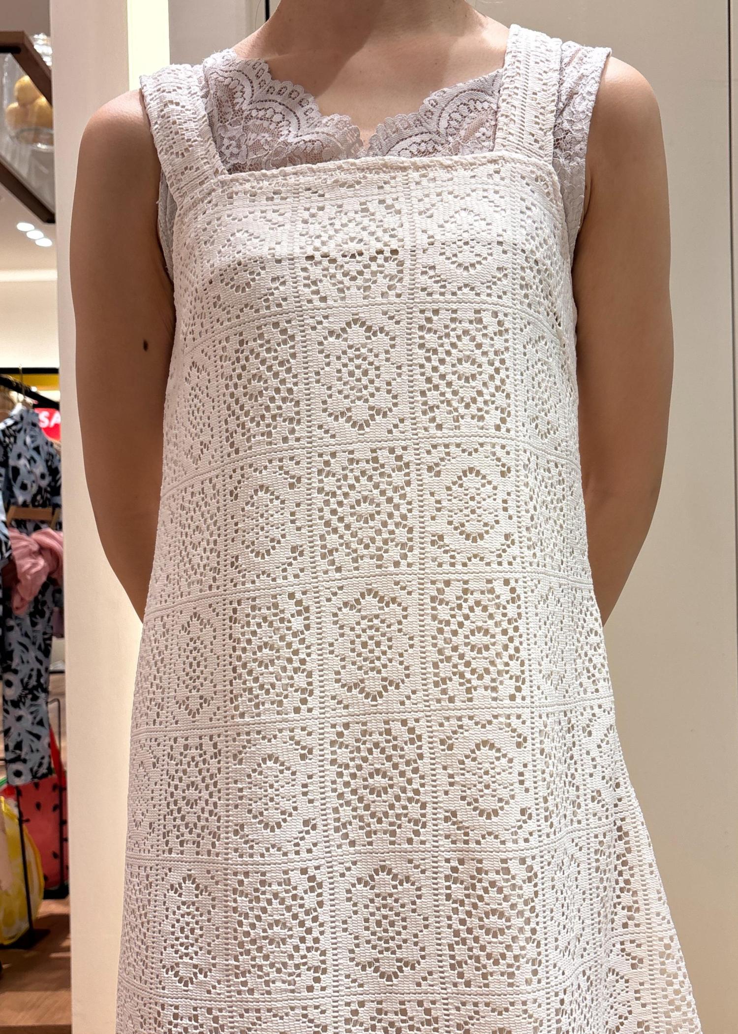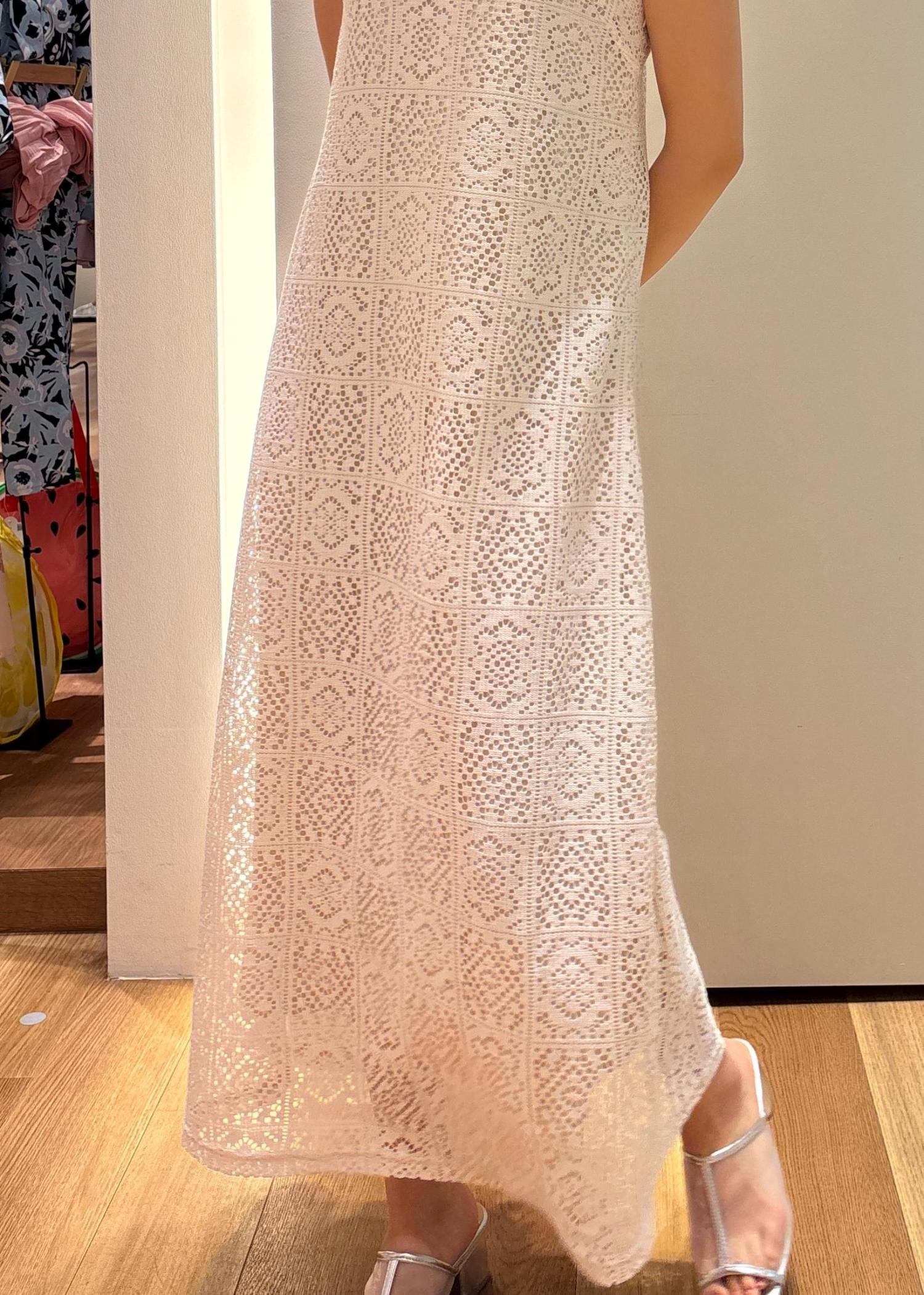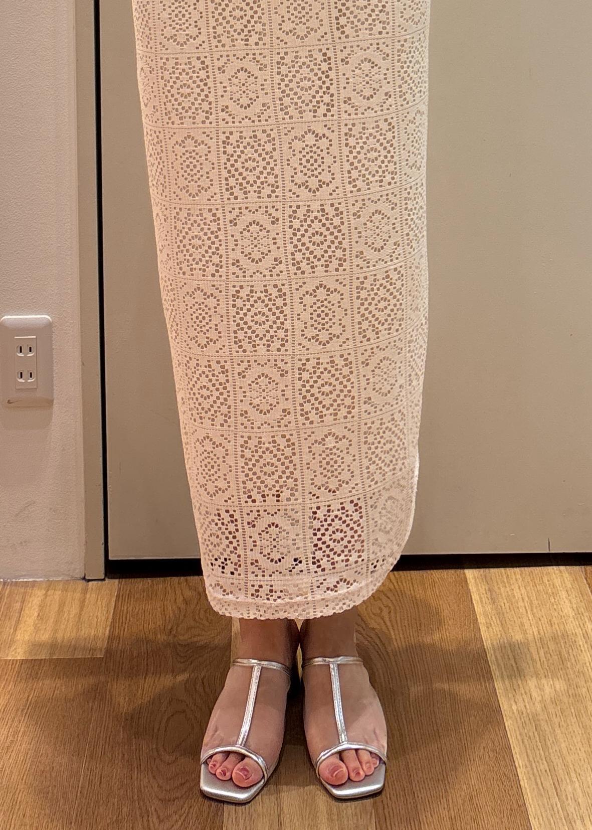 レースのワンピースは女性らしいシルエットで着用できます。1枚で着映えするアイテムです。