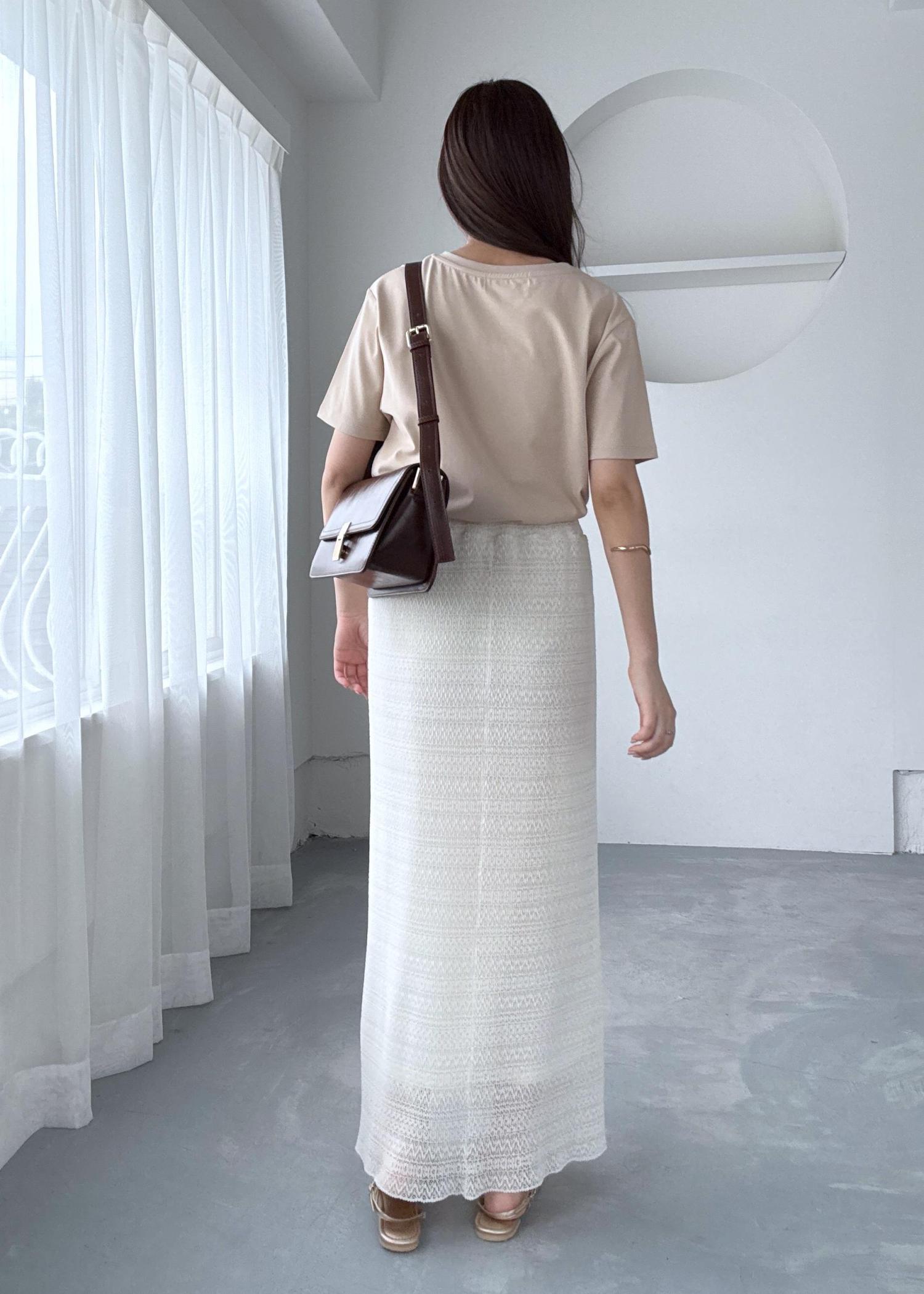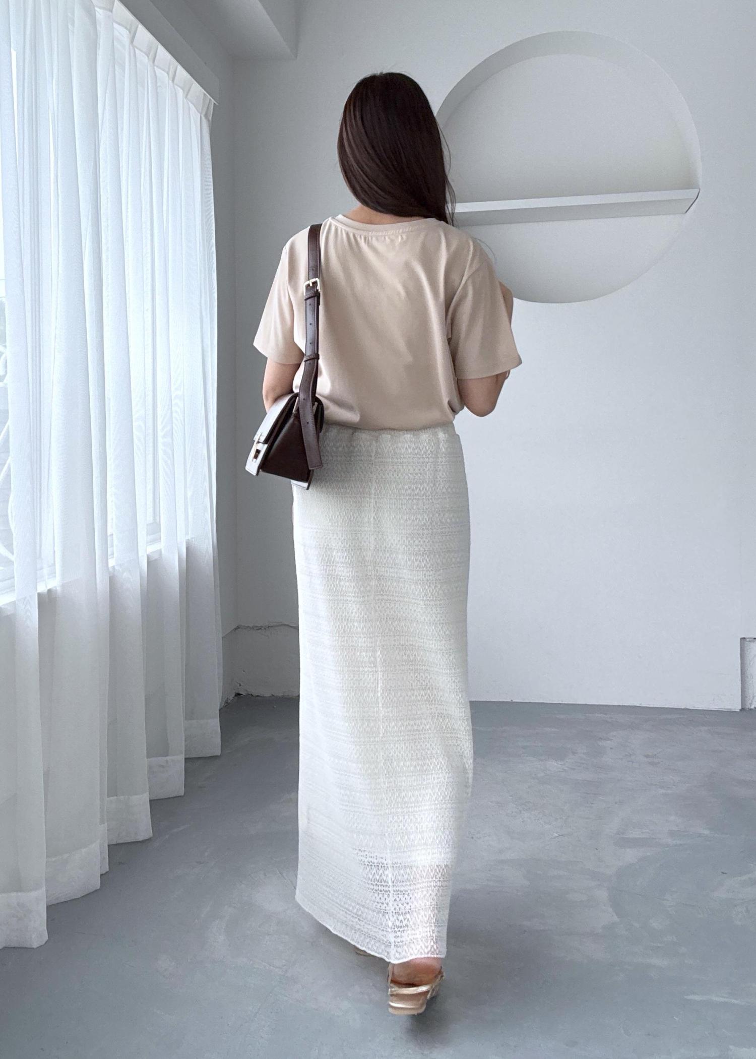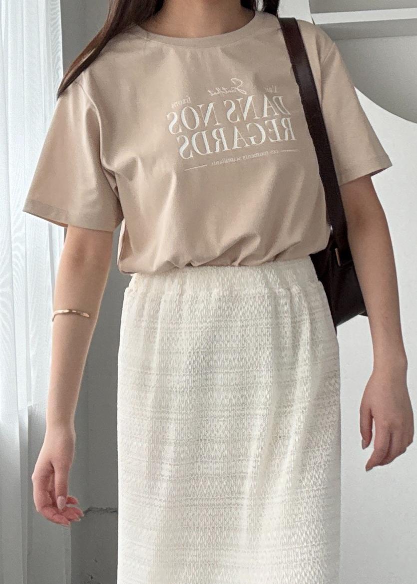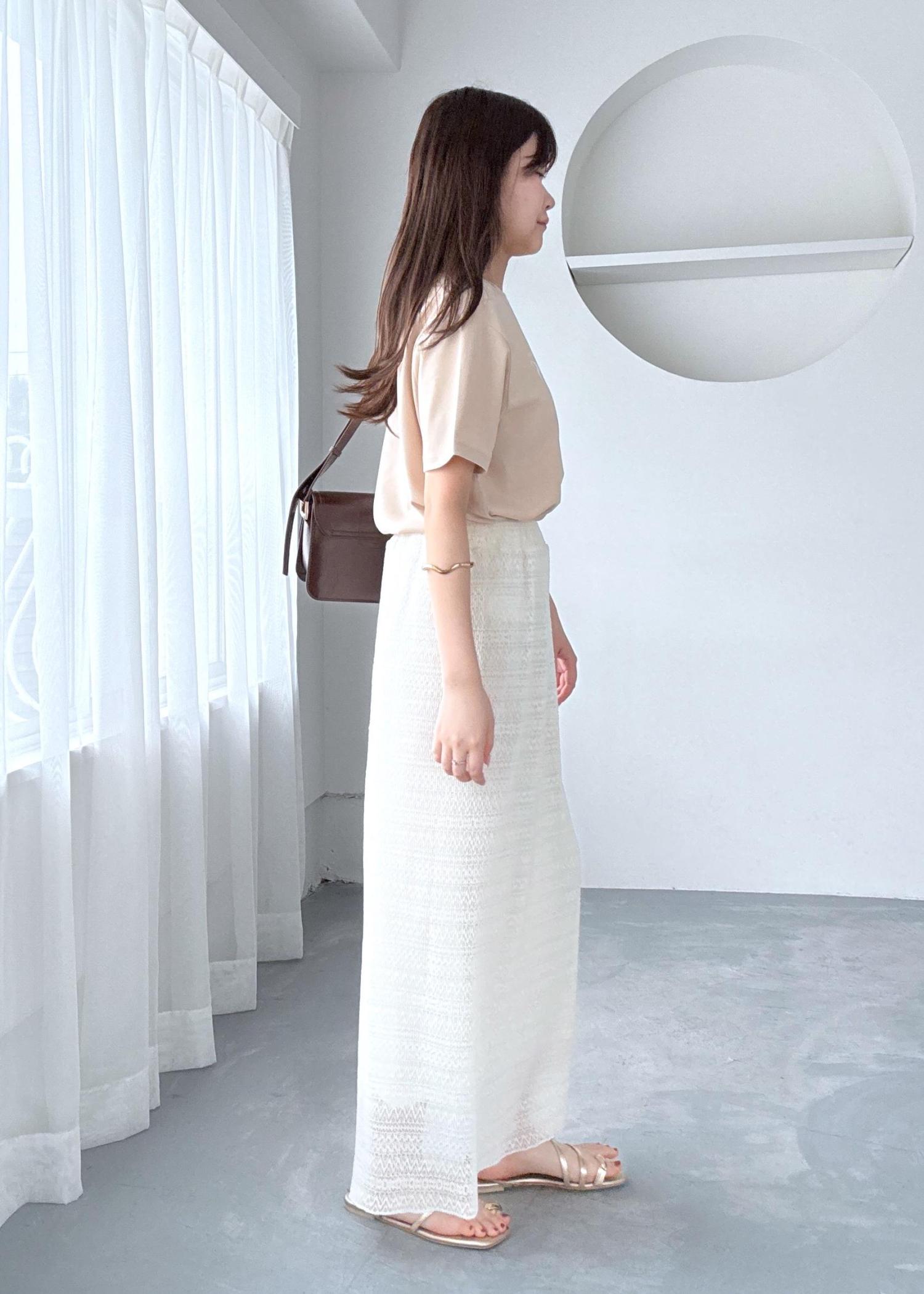 ベージュ×アイボリー 涼しげなTシャツコーデ