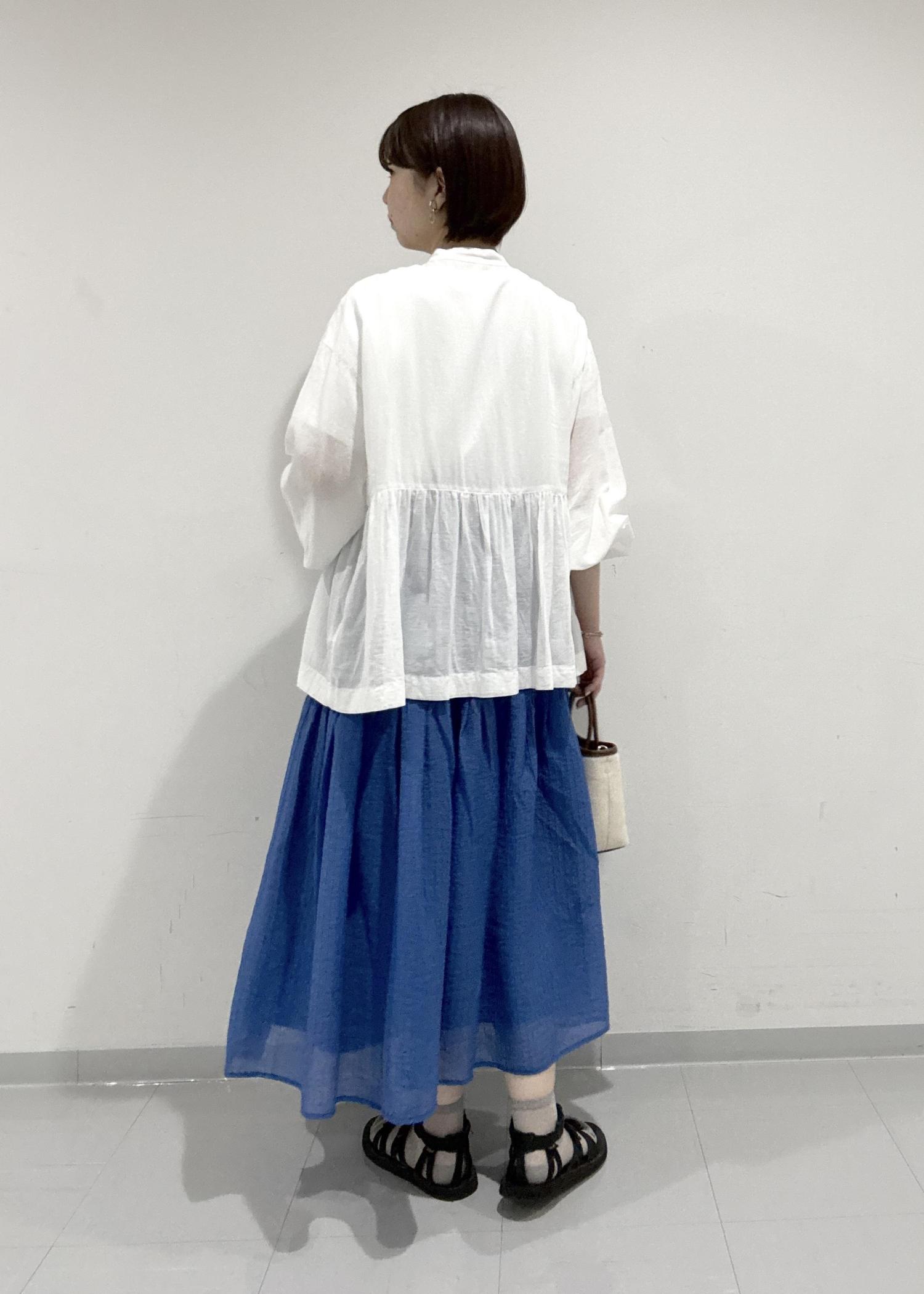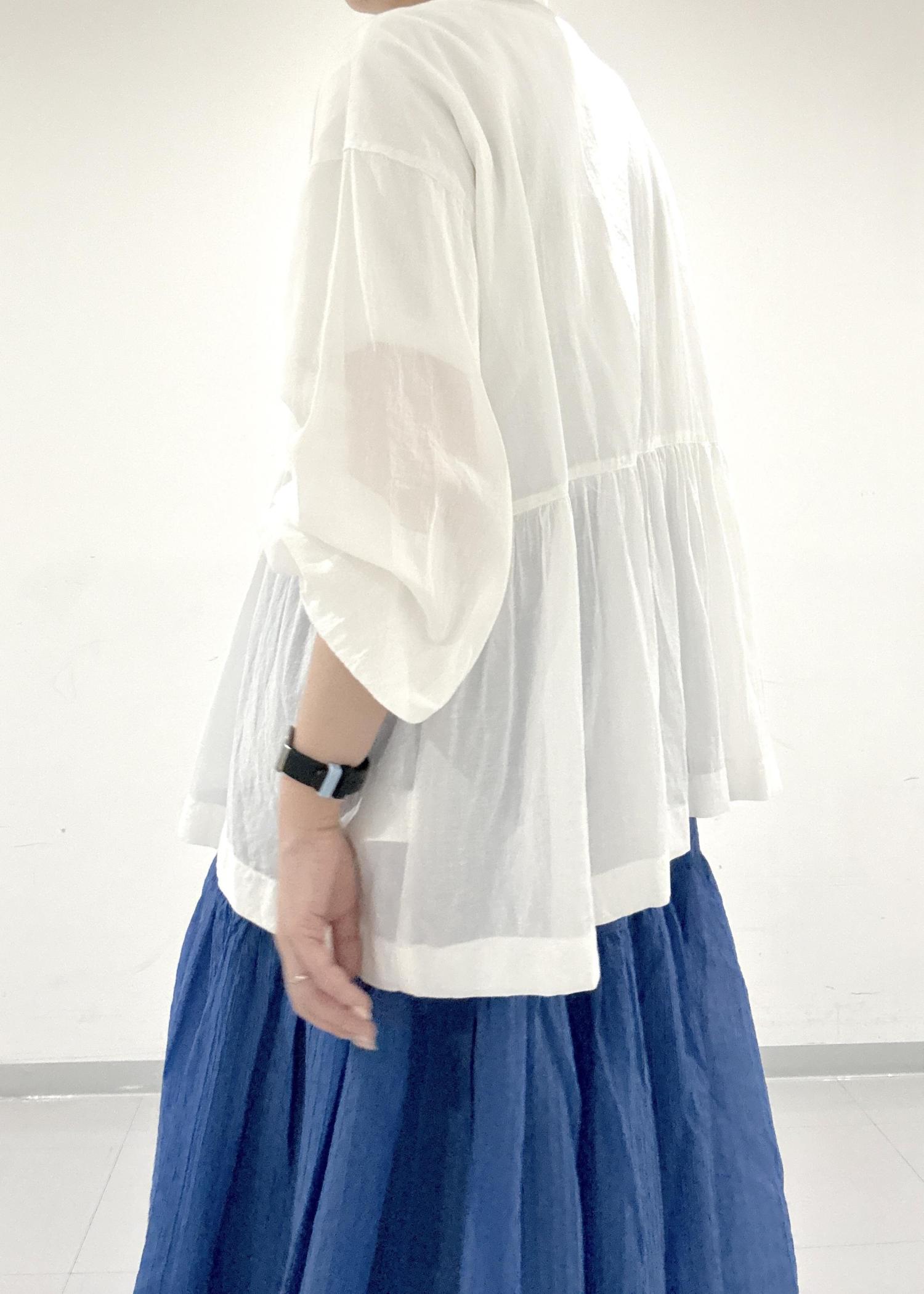どのカラーも透け感があるため、タンクトップやTシャツなどとの重ね着スタイルがお勧めです。