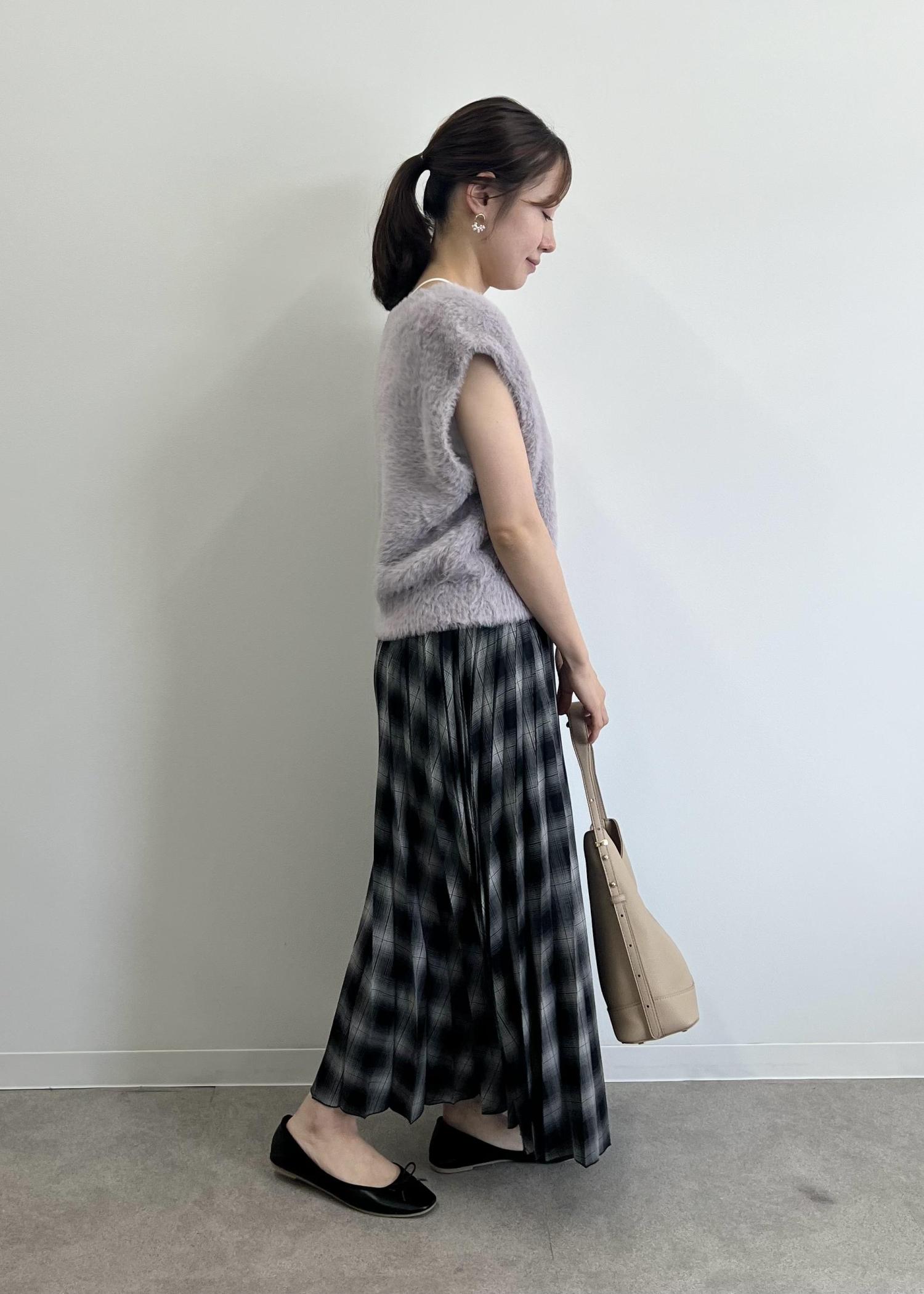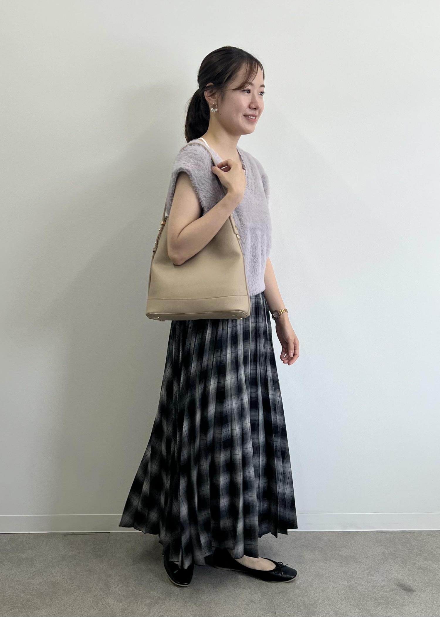 チェックスカートで秋らしい装いにしたのがポイントです!