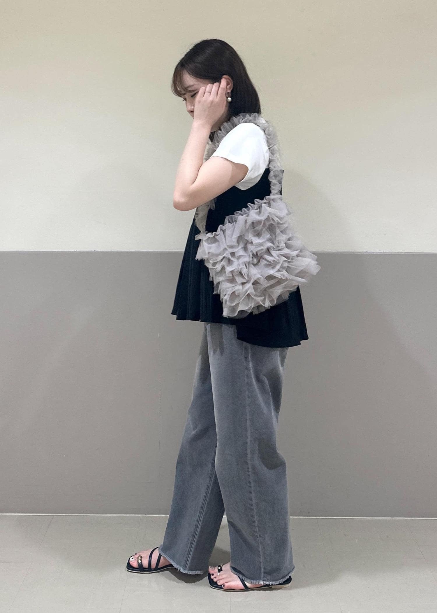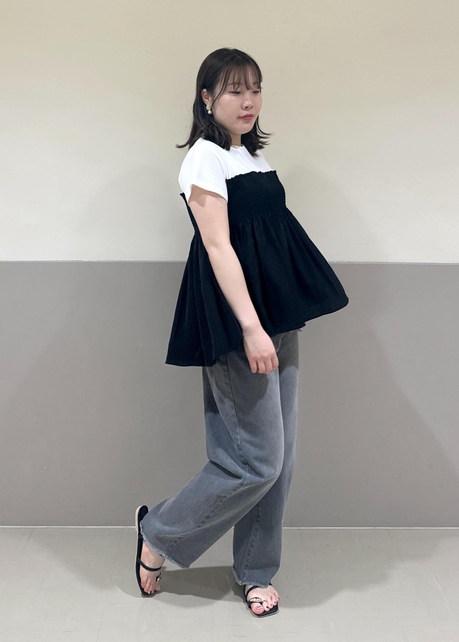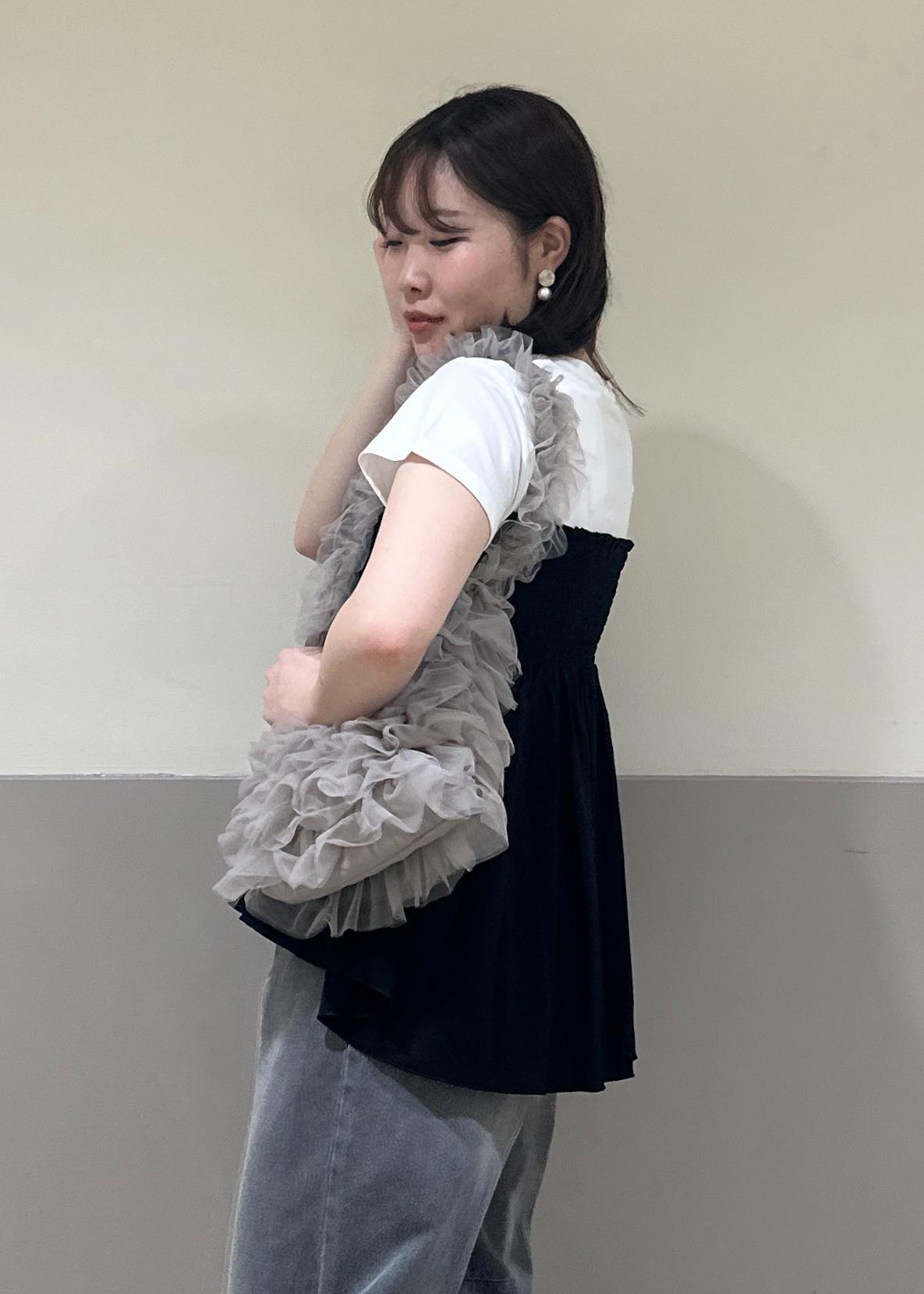 チュールドッキングが腰周りをカバーしてくれてスタイルアップするトップスを使ったコーディネートです!