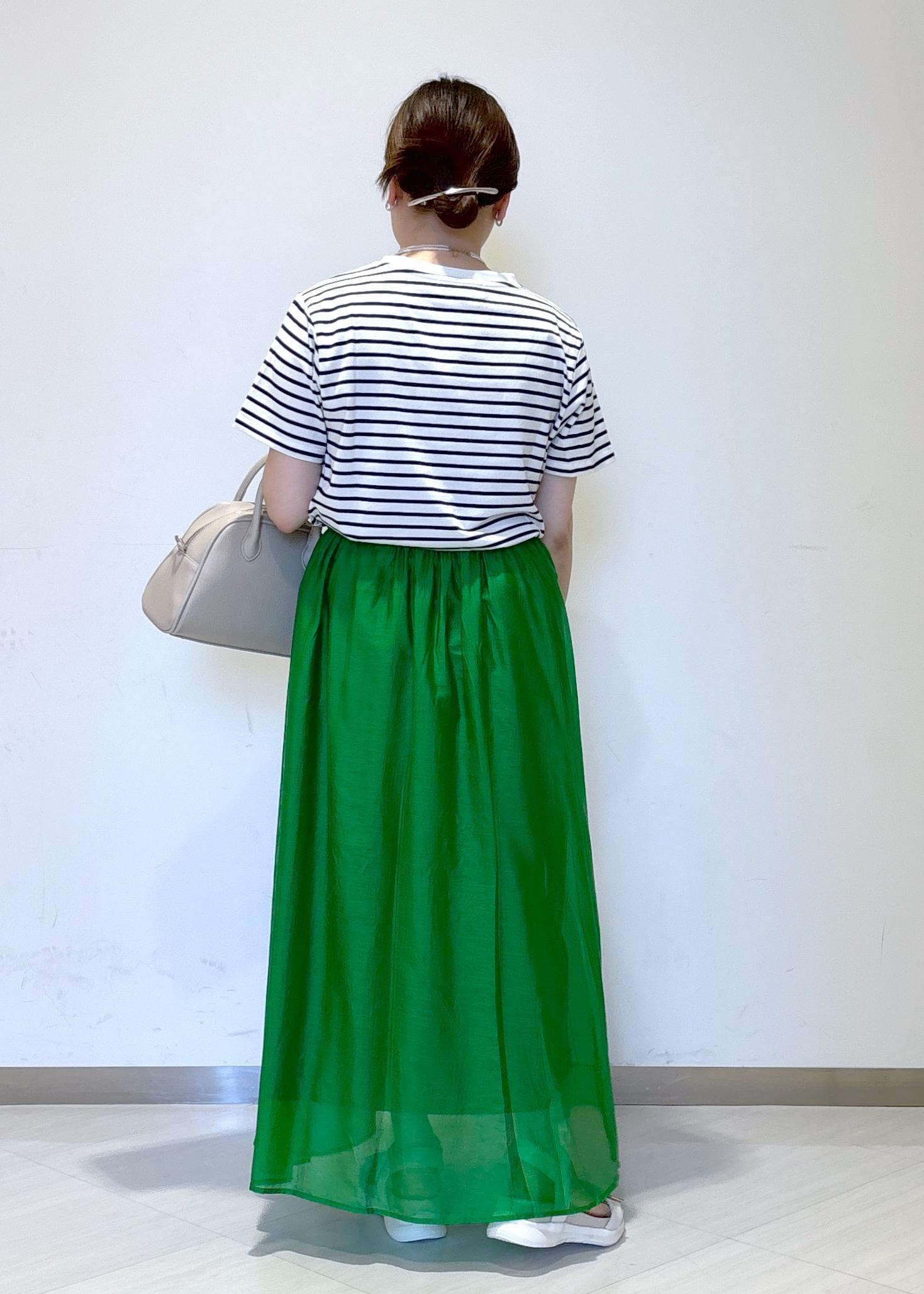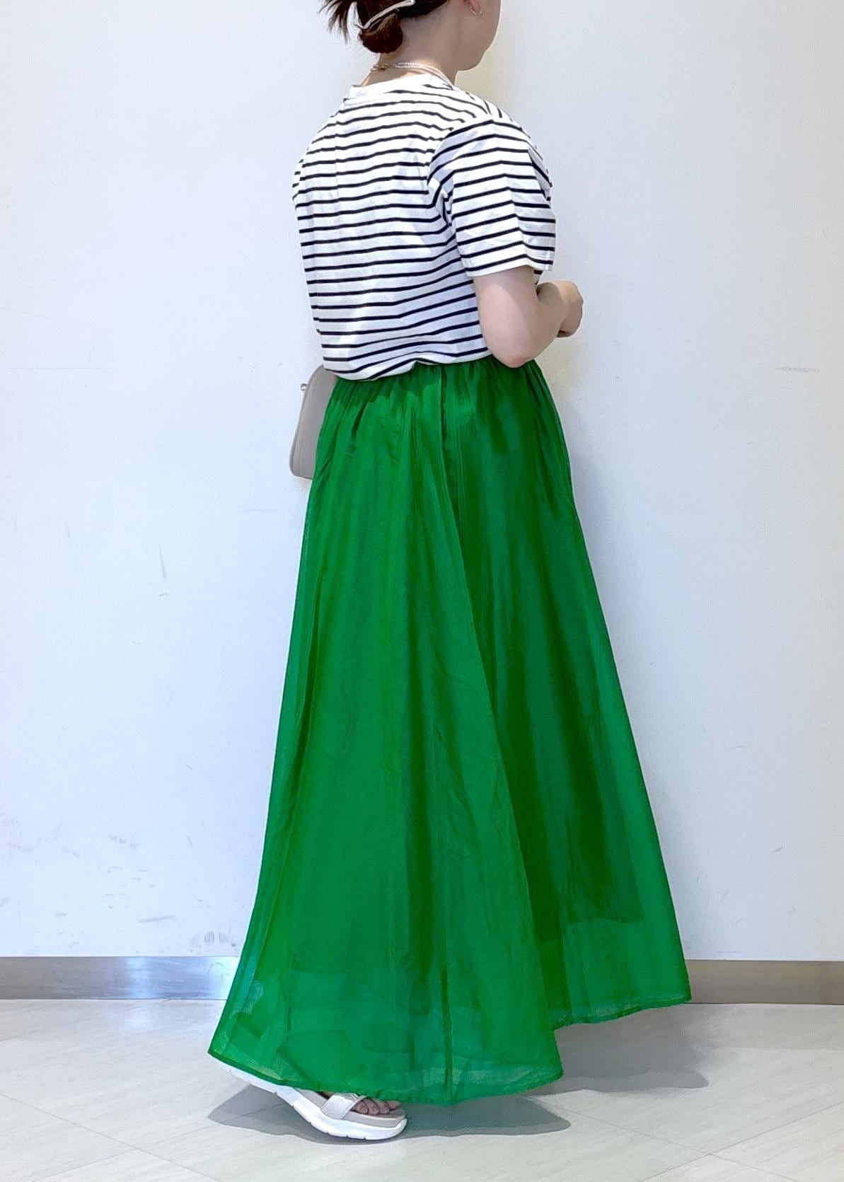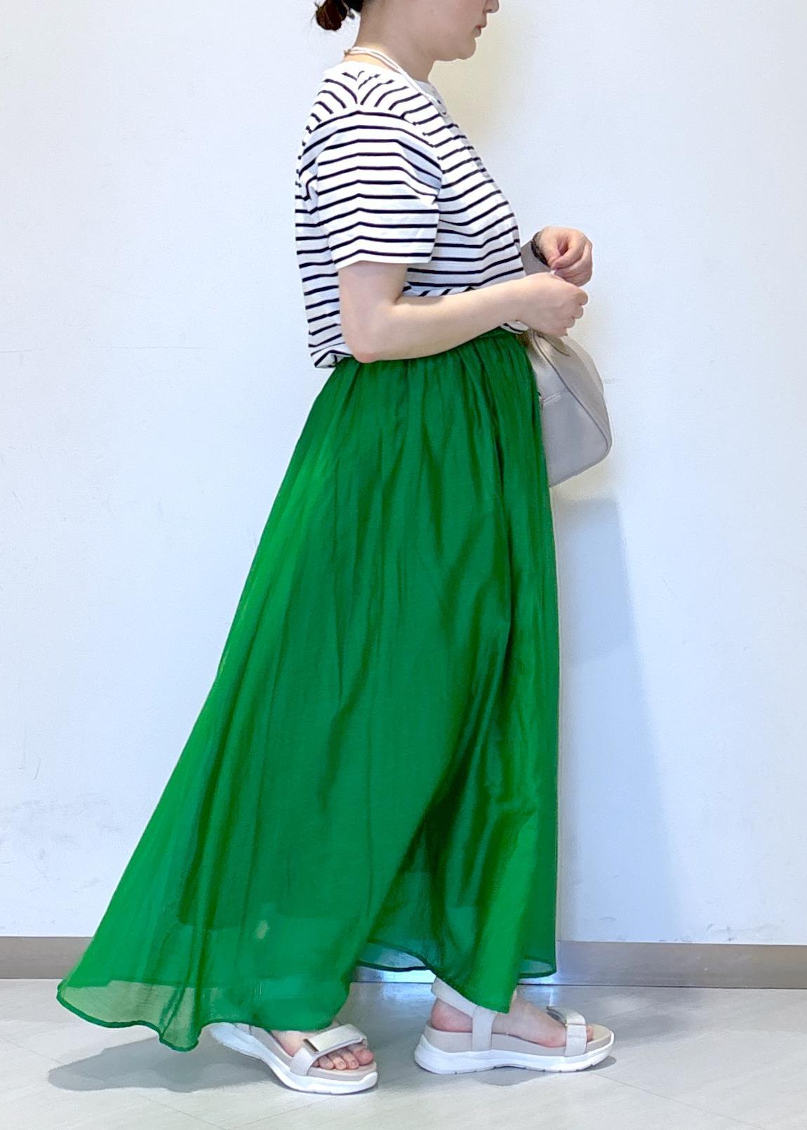 ROPÉ PICNICエアリーシアーギャザーロングスカートグリーン / 38¥6,490レビュー私はウェスト周りがしっかりしているので、着膨れしないか心配でしたが、想像よりもボリュームはありませんでした◎