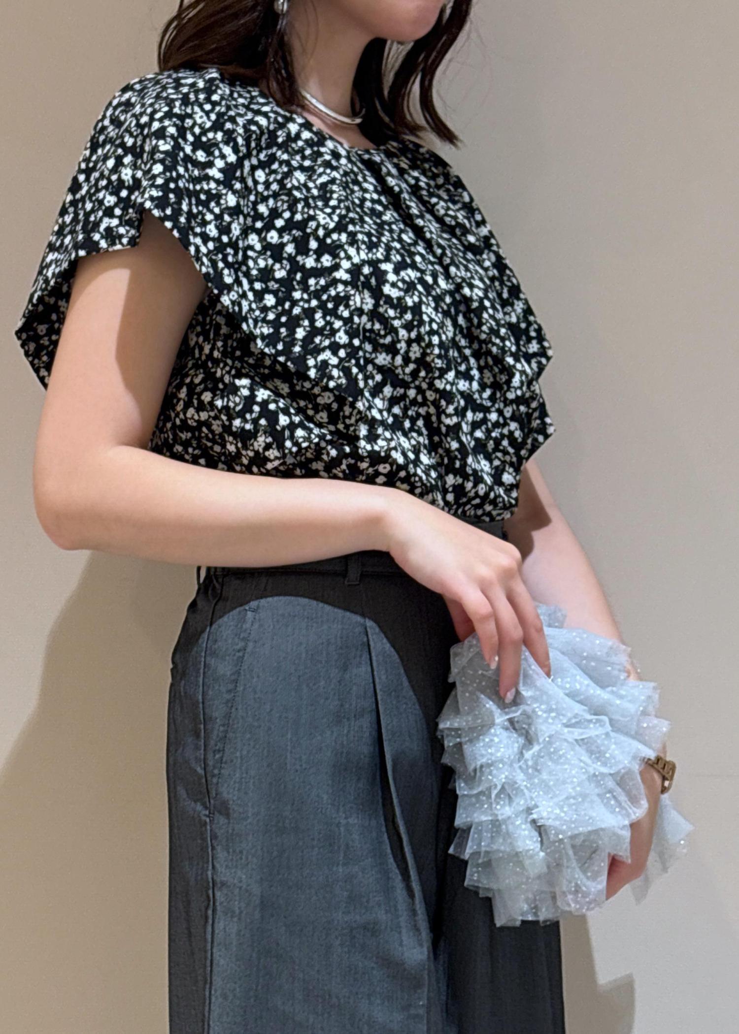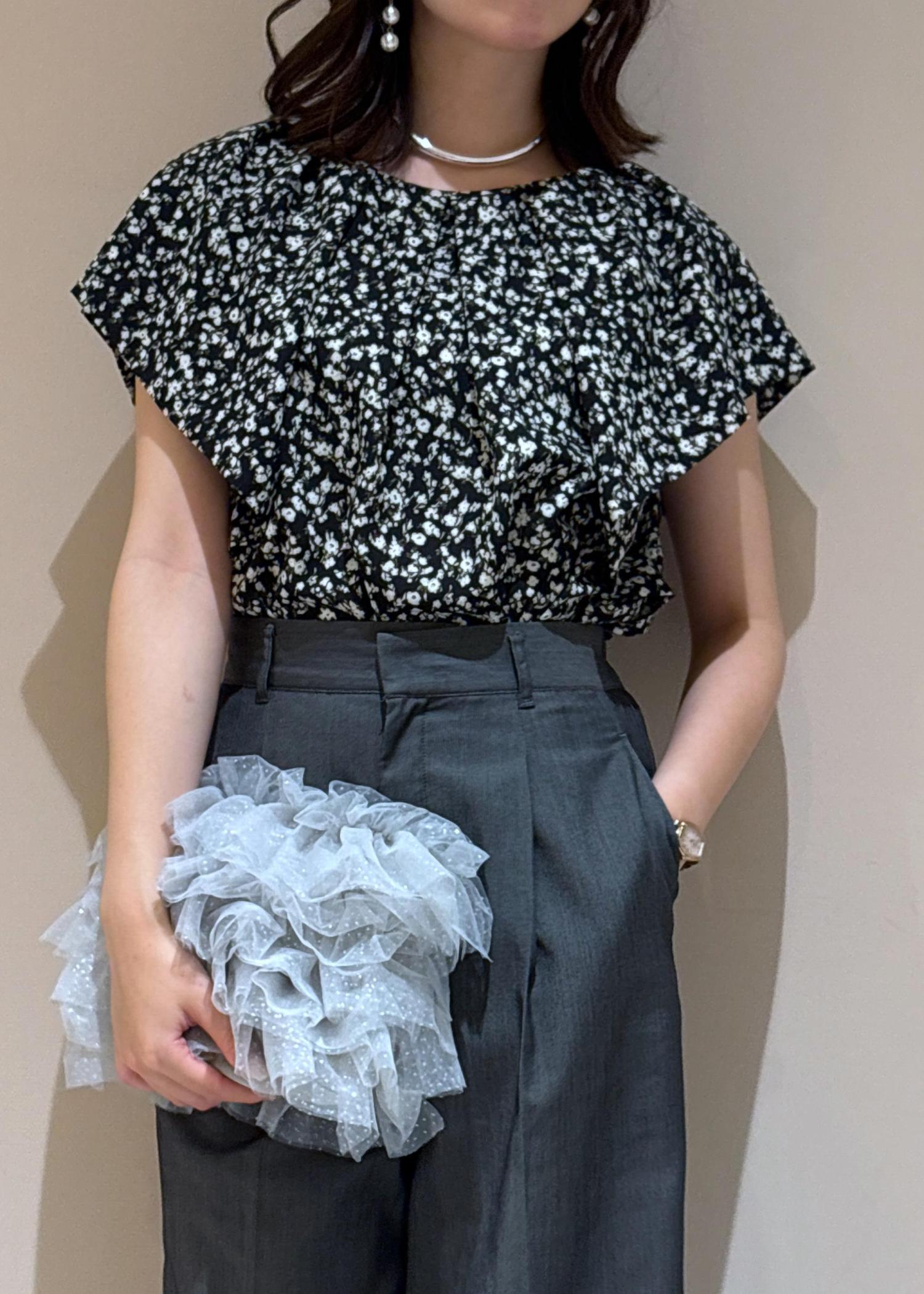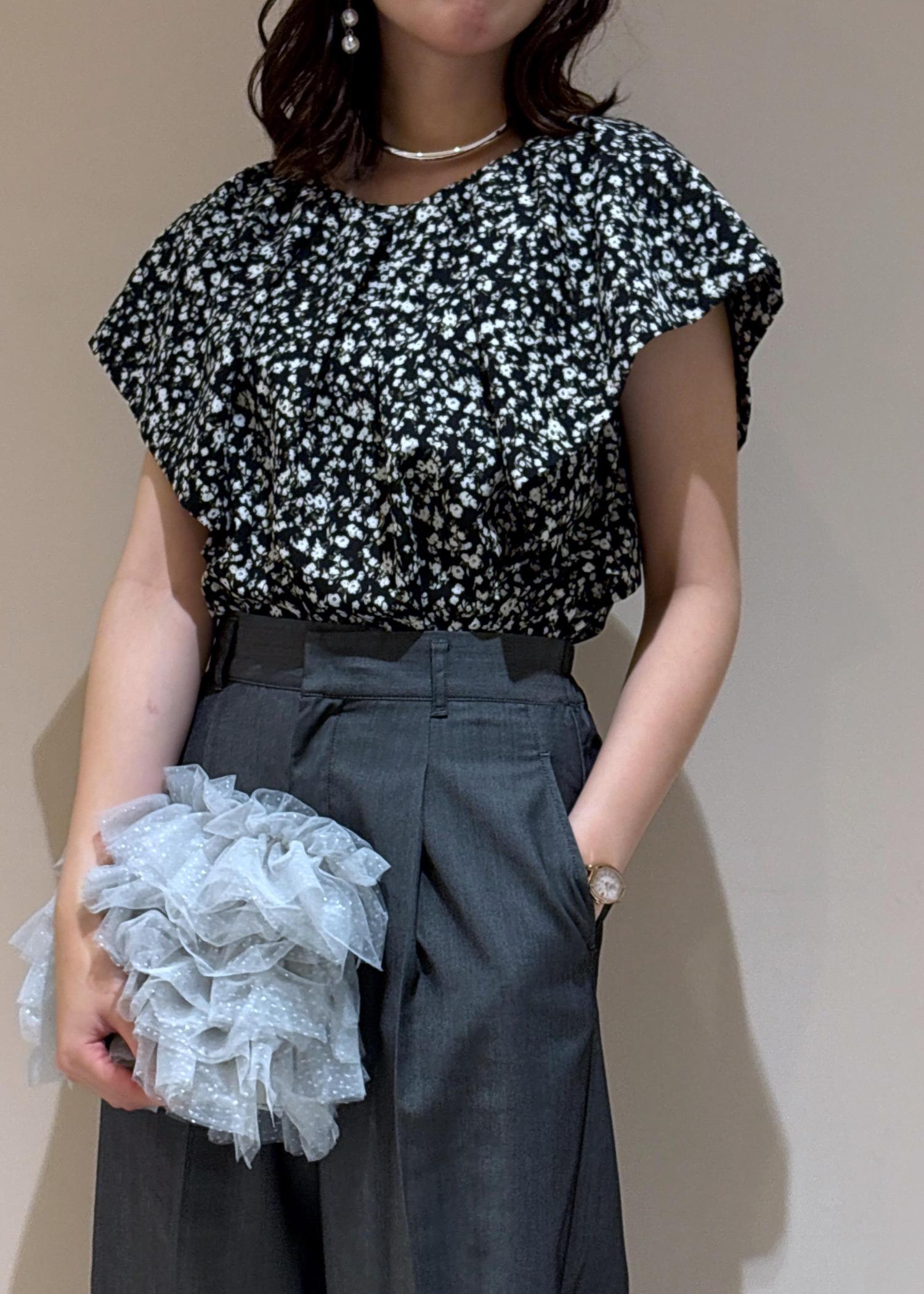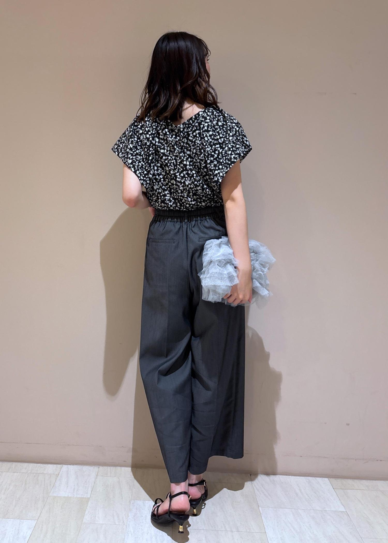 この夏にブラックを着ても重たくならないように柄×明るめのブラックを合わせてみました!