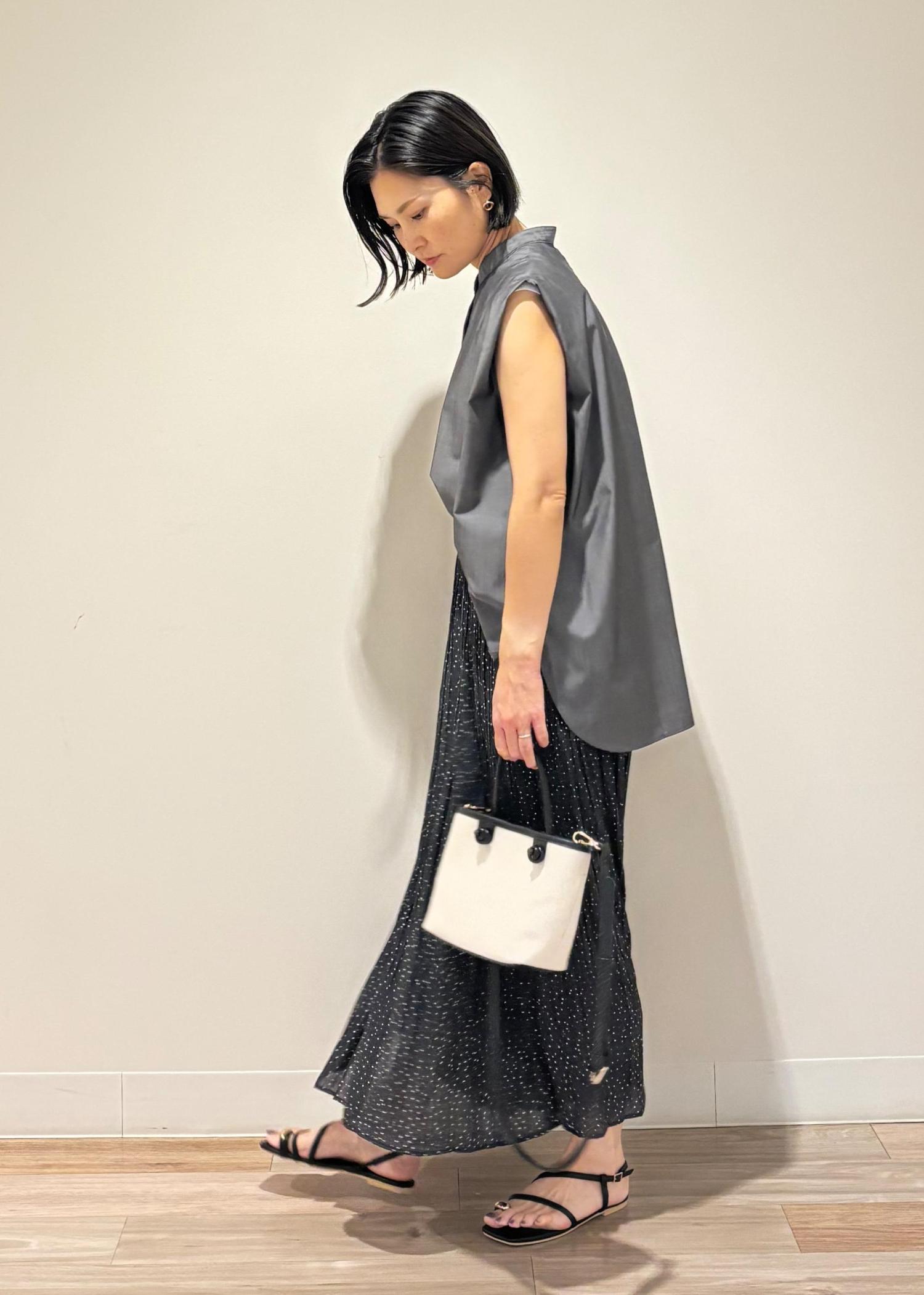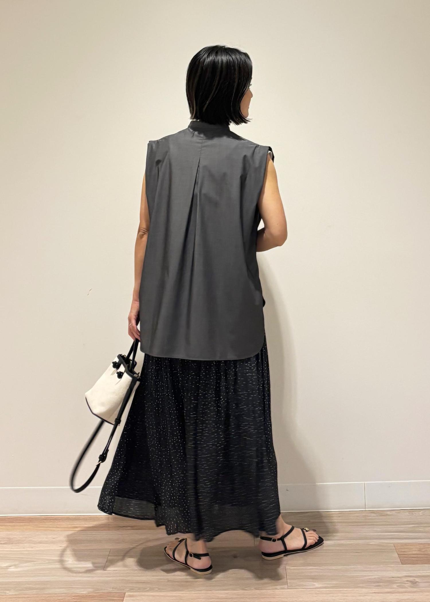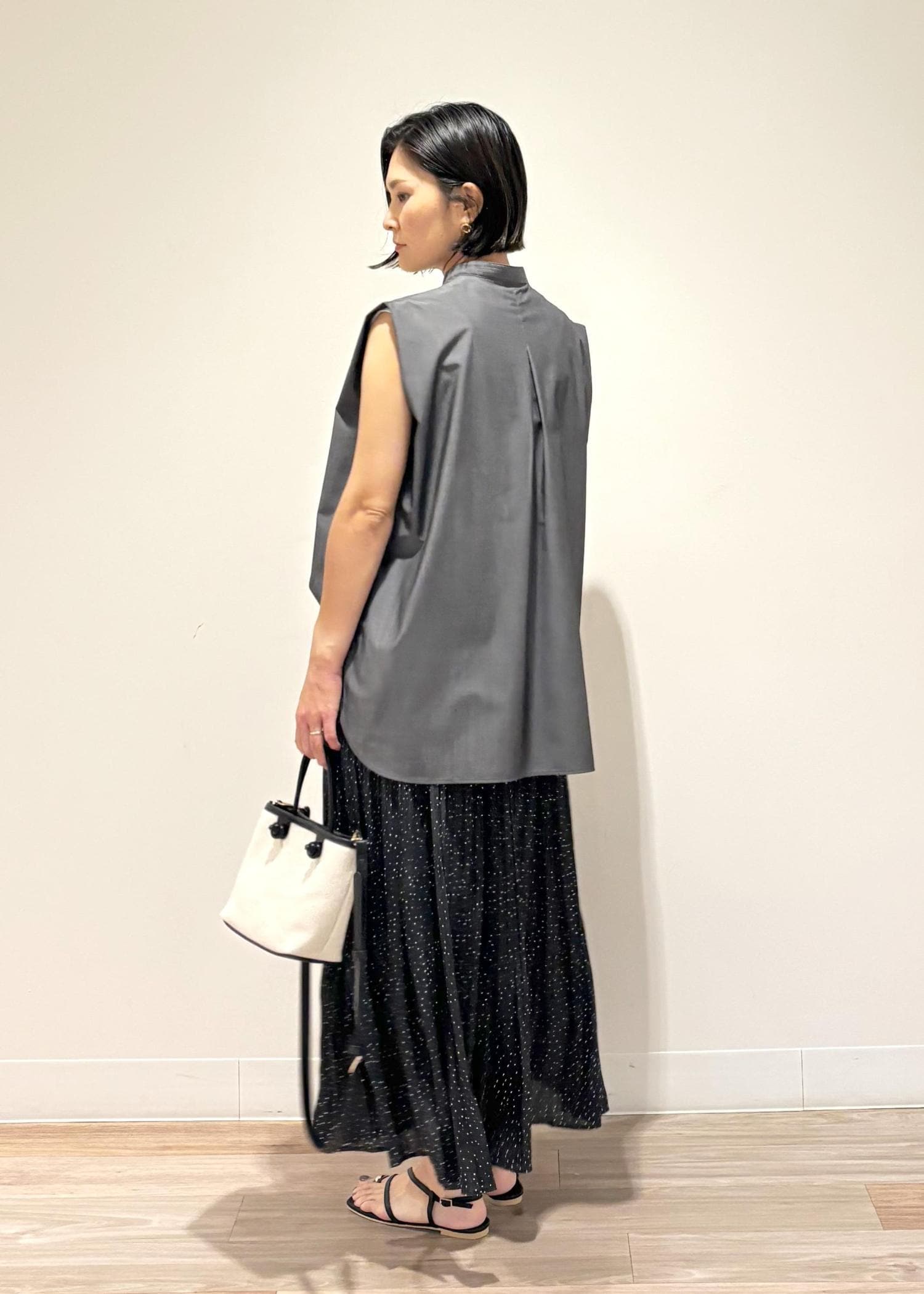 ゆとりのあるサイズ感で羽織りとしても使いやすいです。肩のタックデザインが気になる腕周りをすっきり見せてくれます。