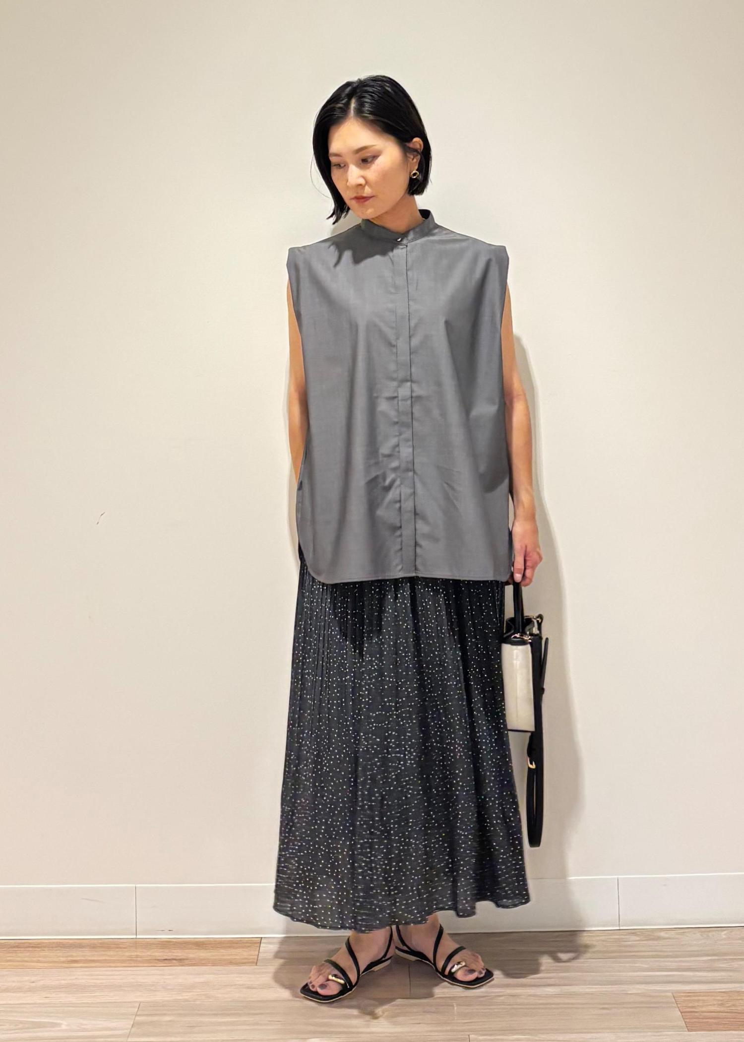 【UVカット・接触冷感・イージーケア】バンドカラーノースリーブシャツ/通勤対応