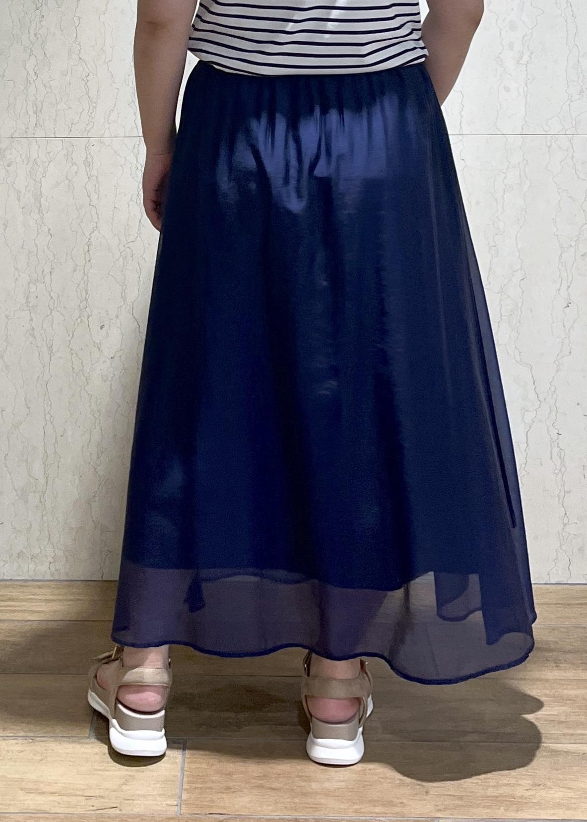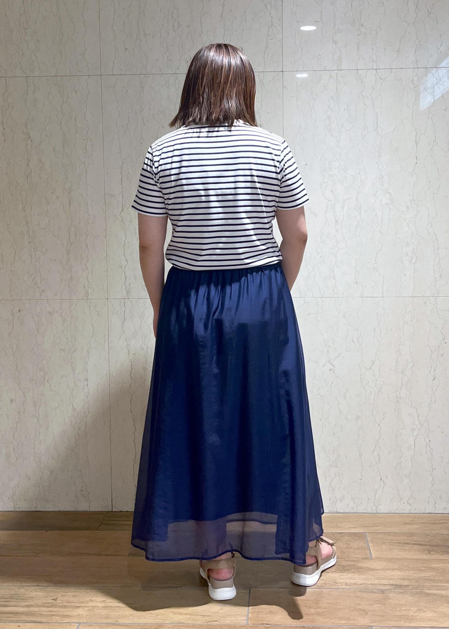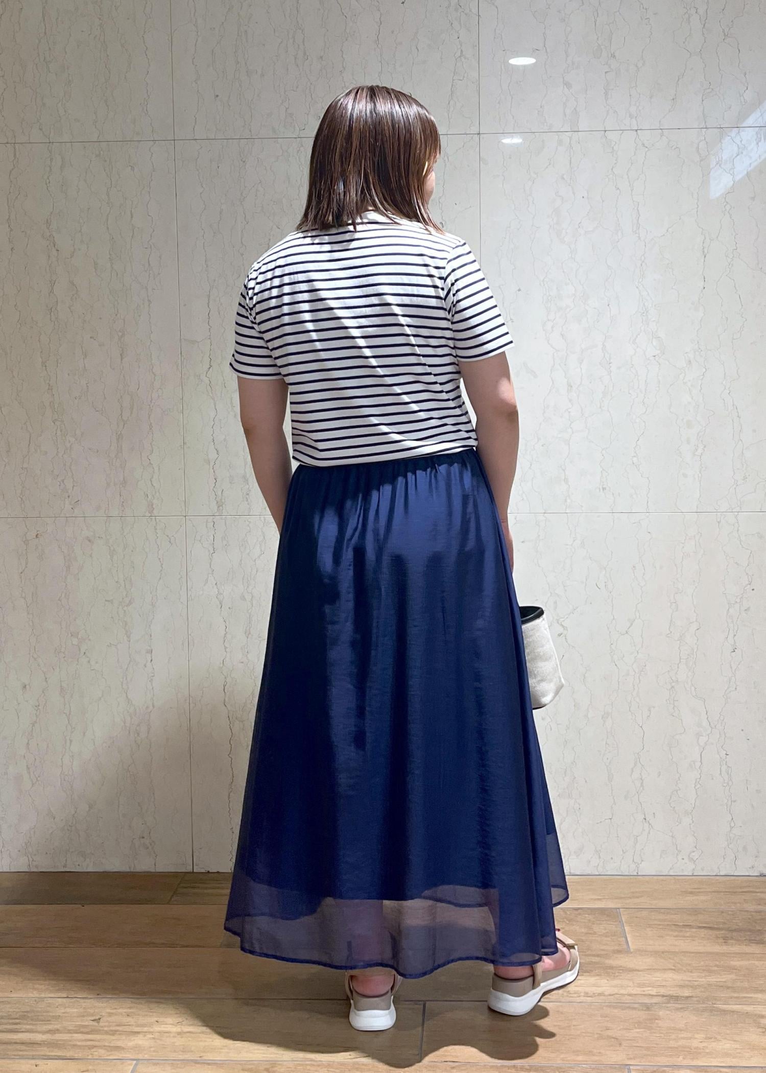 ロングスカートですが、裾はシアー感があるので重く見えずに履いて頂けます。 -