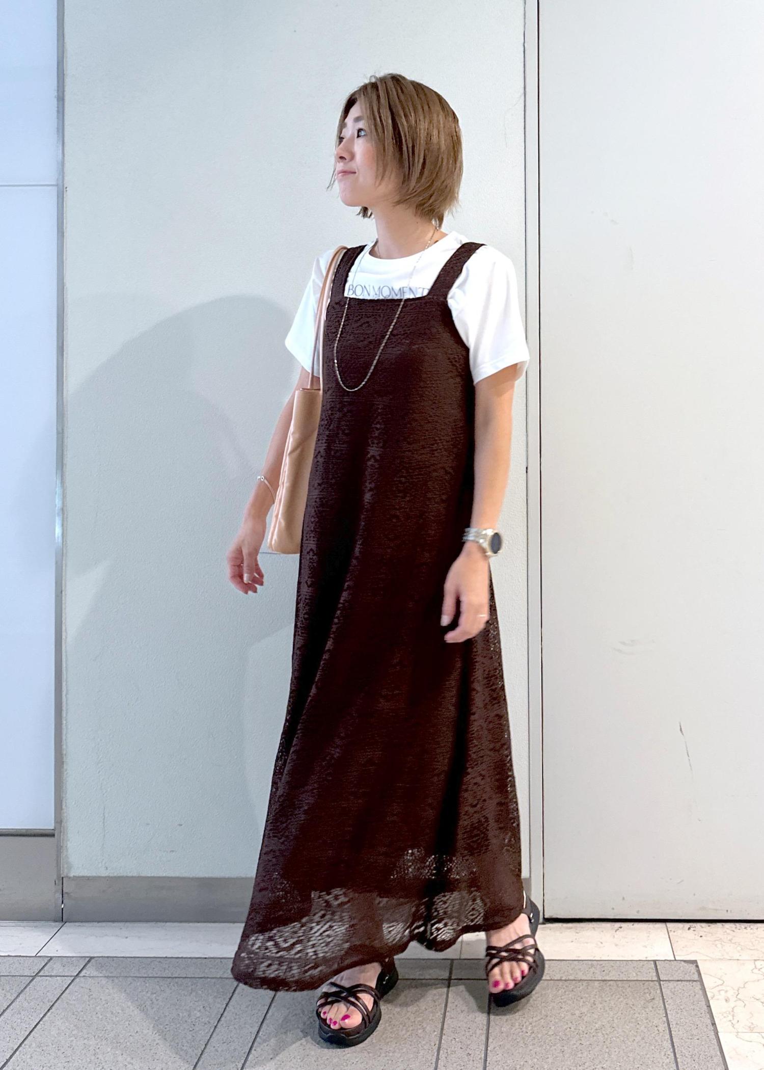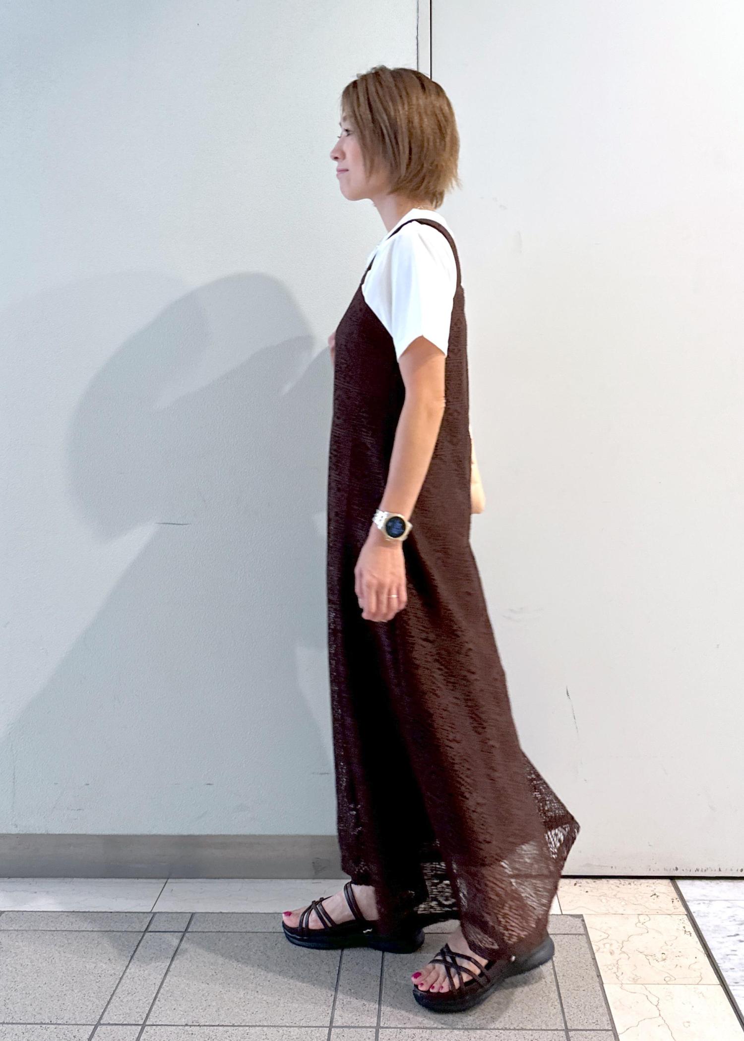 さらりとした着心地で、身幅はややゆとりのあるサイズ感です。着丈は腰まわりにかかる位の長さでパンツでもスカートでも合わせやすいです。