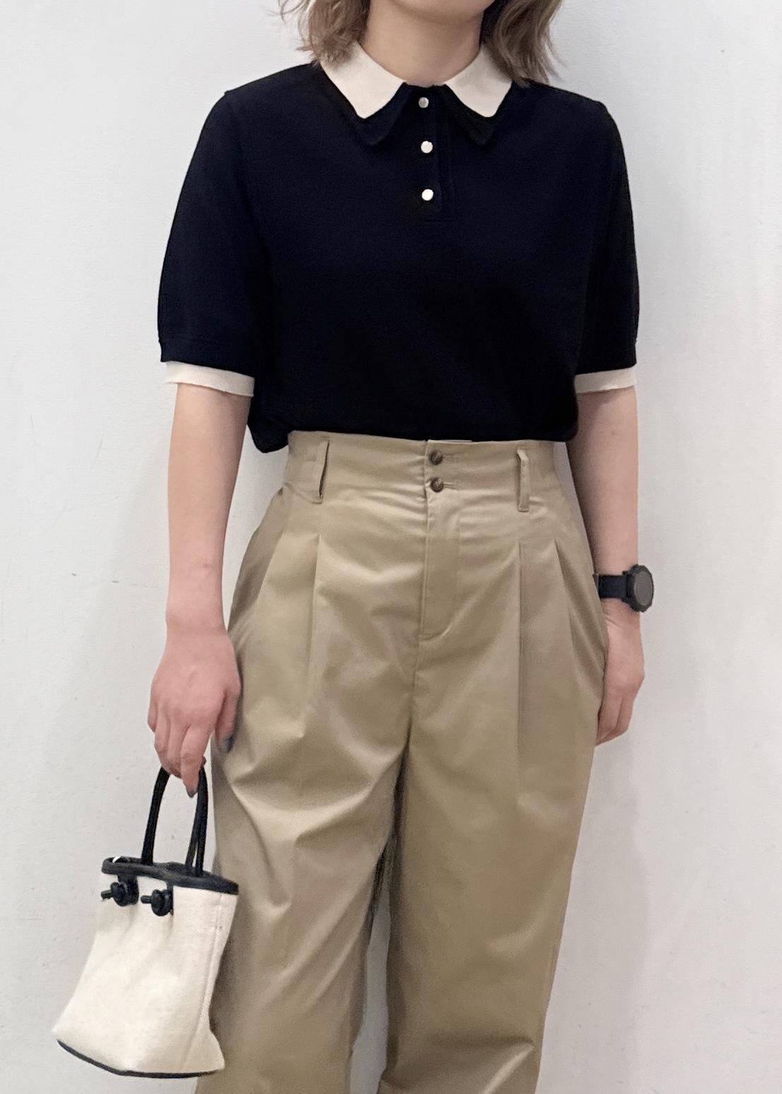襟と袖口のバイカラーデザインが可愛いポロニットです。 -