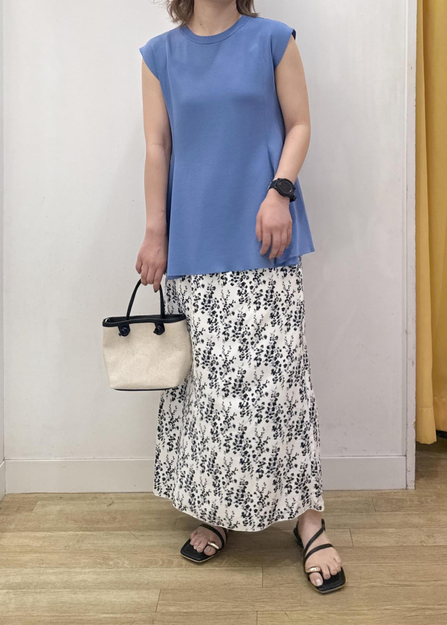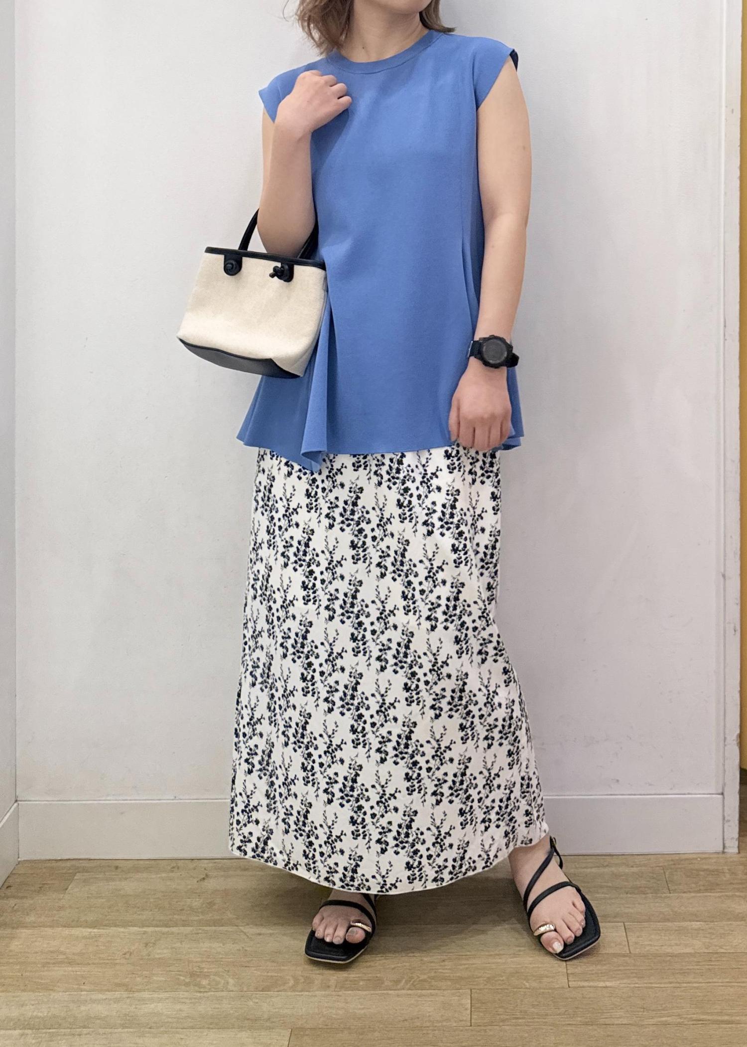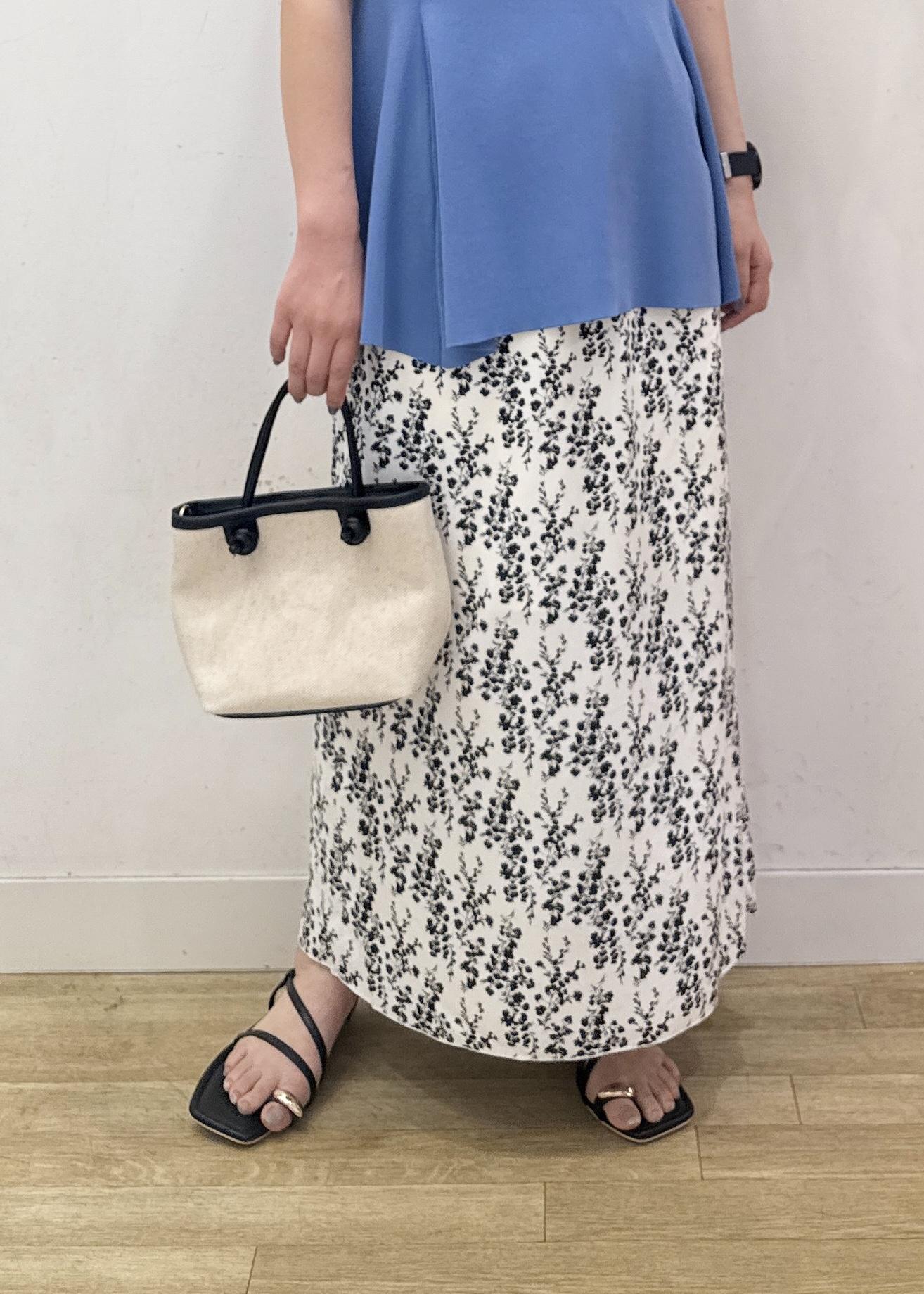 花柄のアイラインシルエットのスカートを合わせて休日のお出かけコーディネートに☺︎