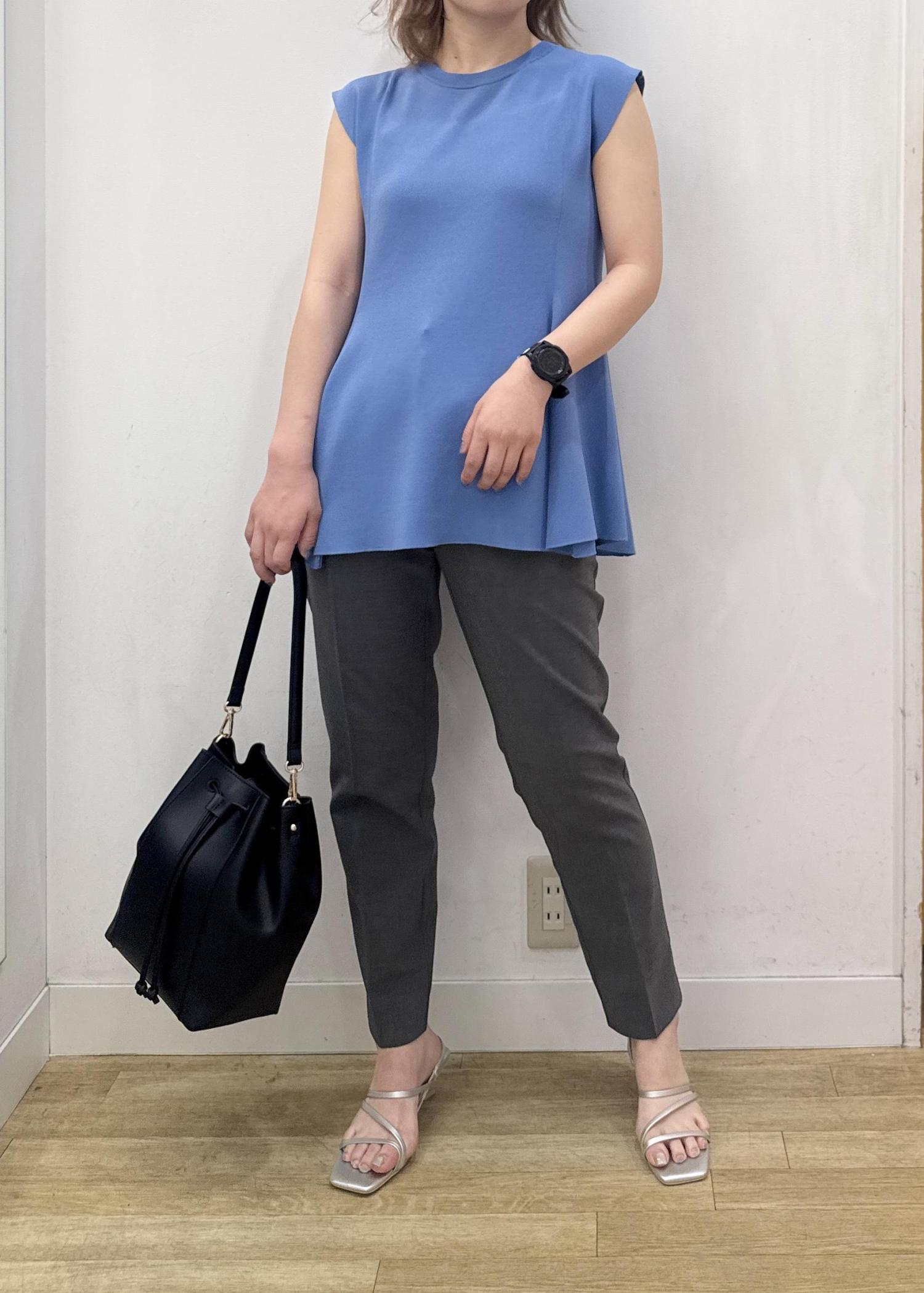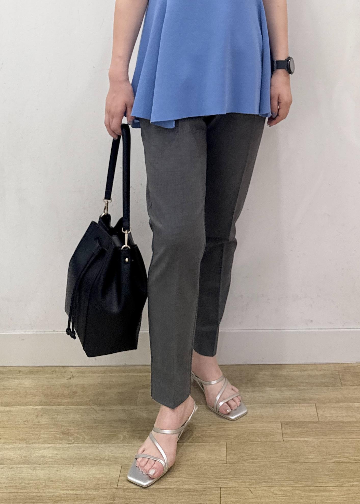 サラッと薄手の素材とスッキリとしたラインのテーパードパンツは夏のお仕事着にもオススメです。 -
