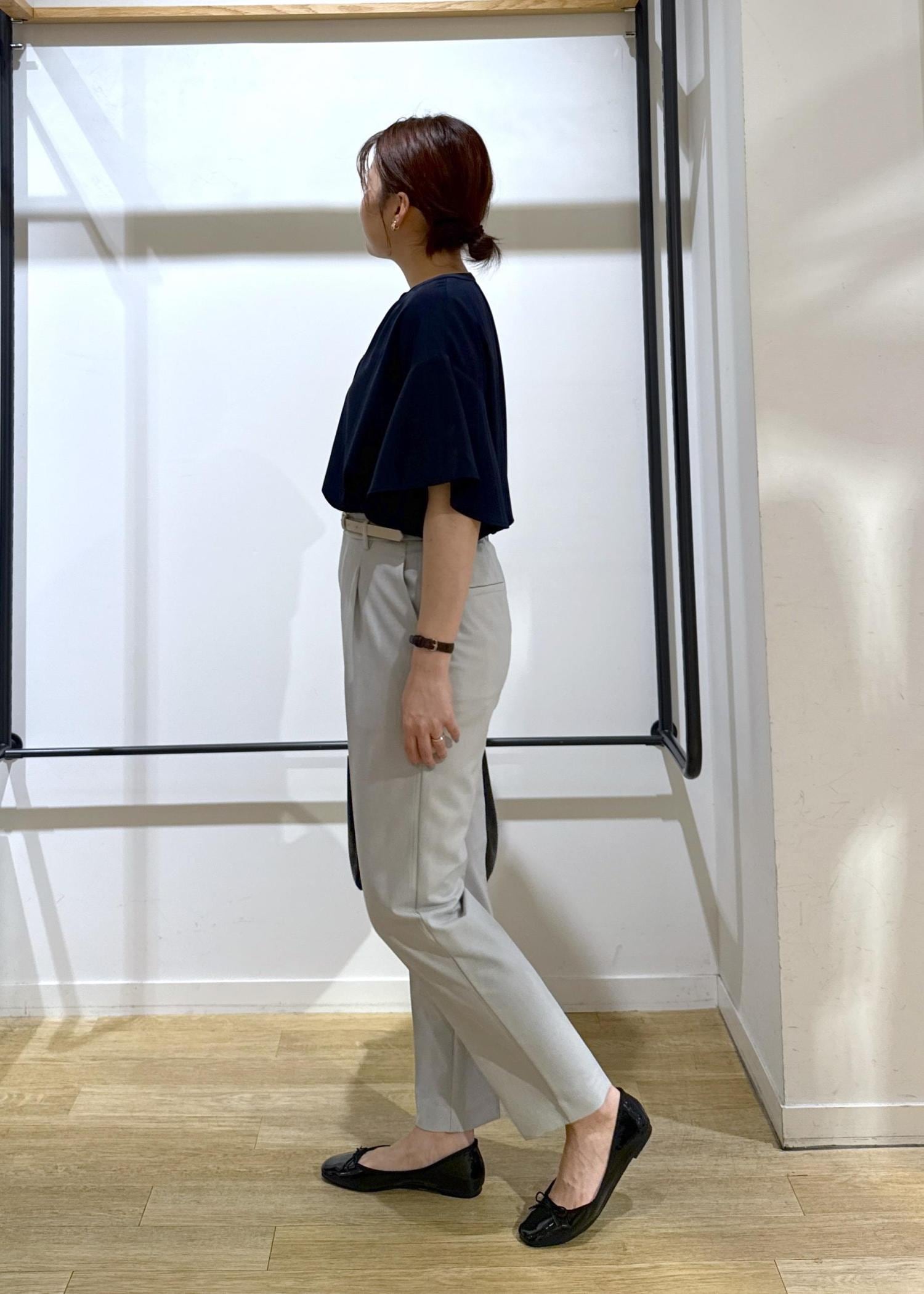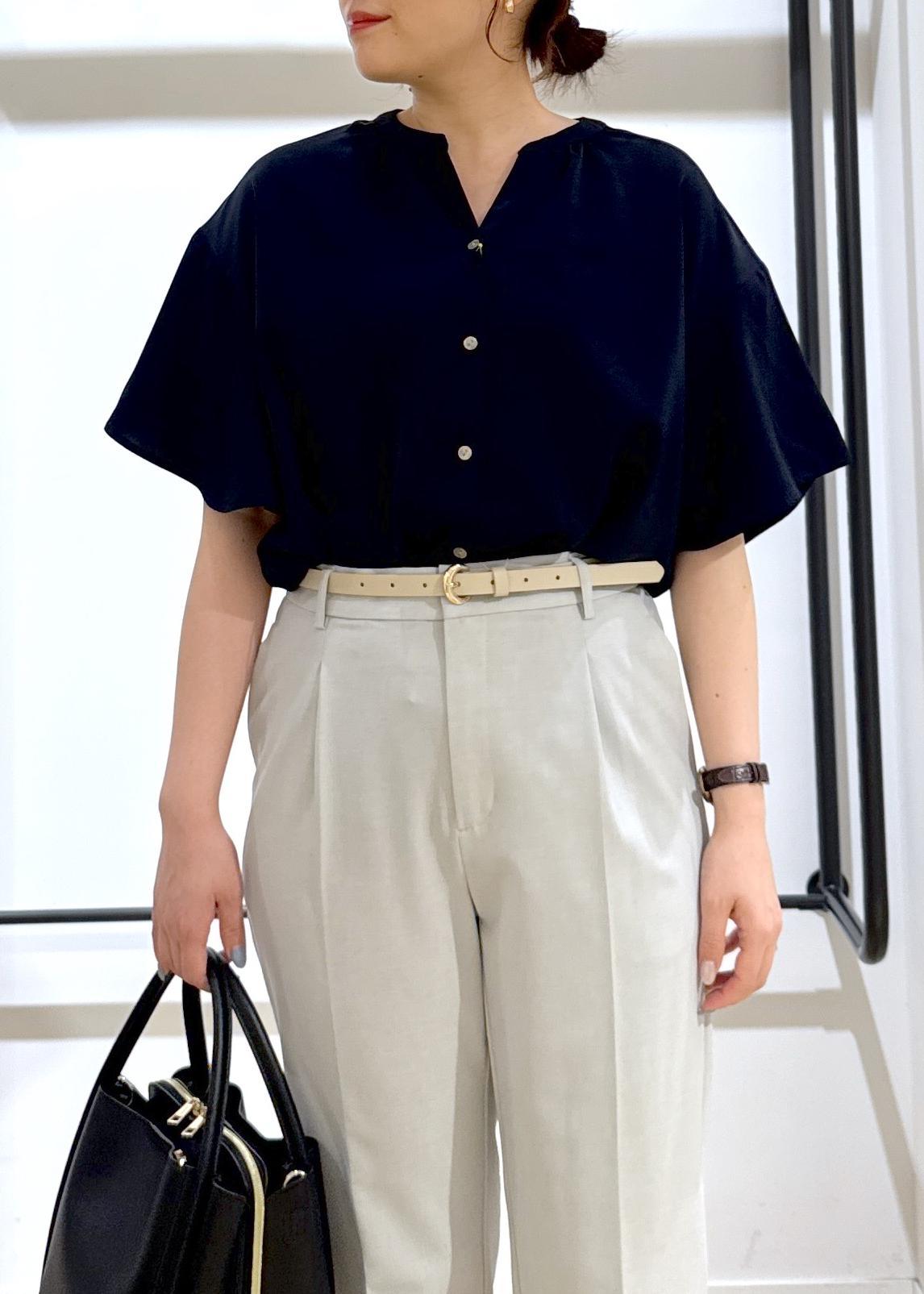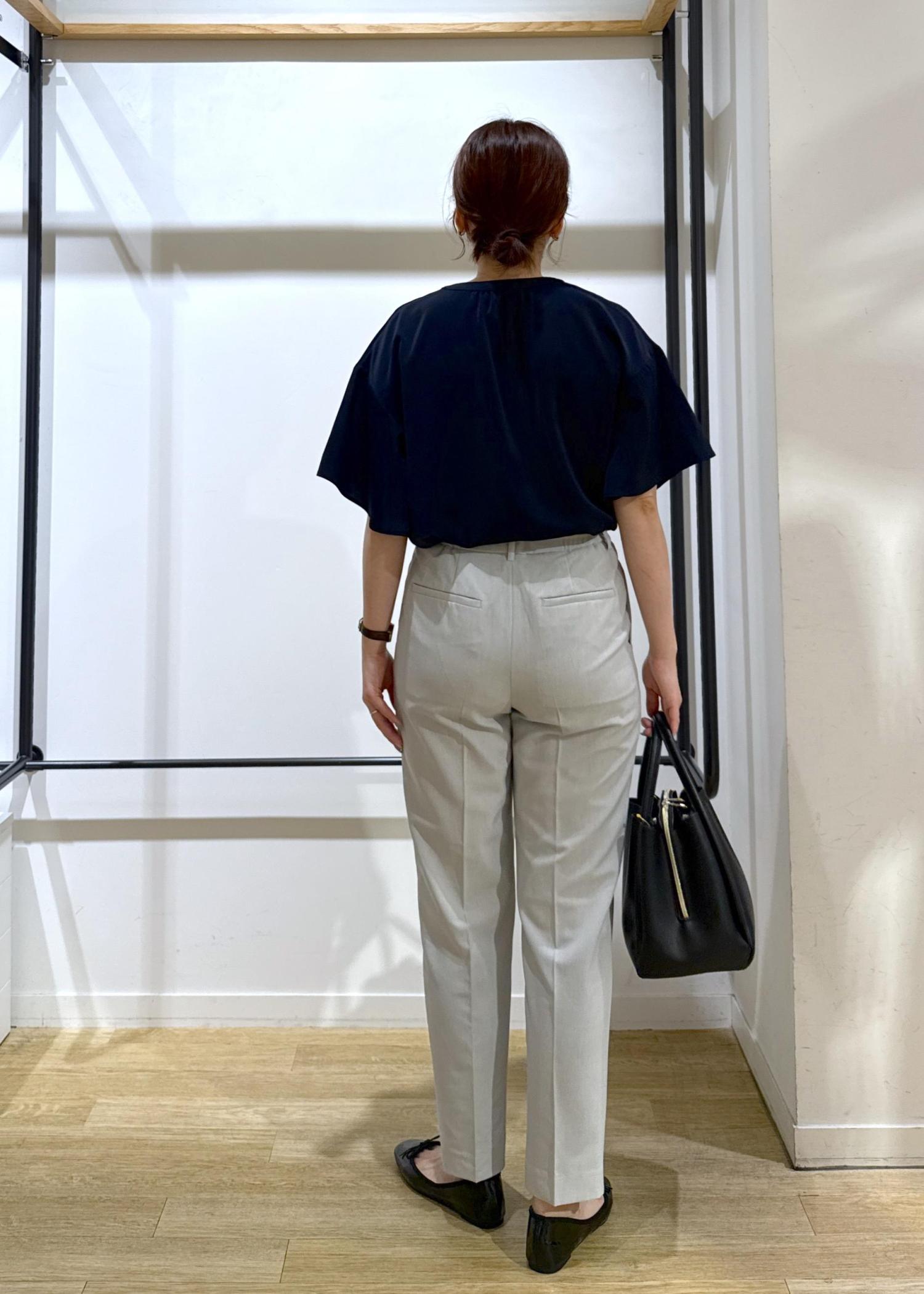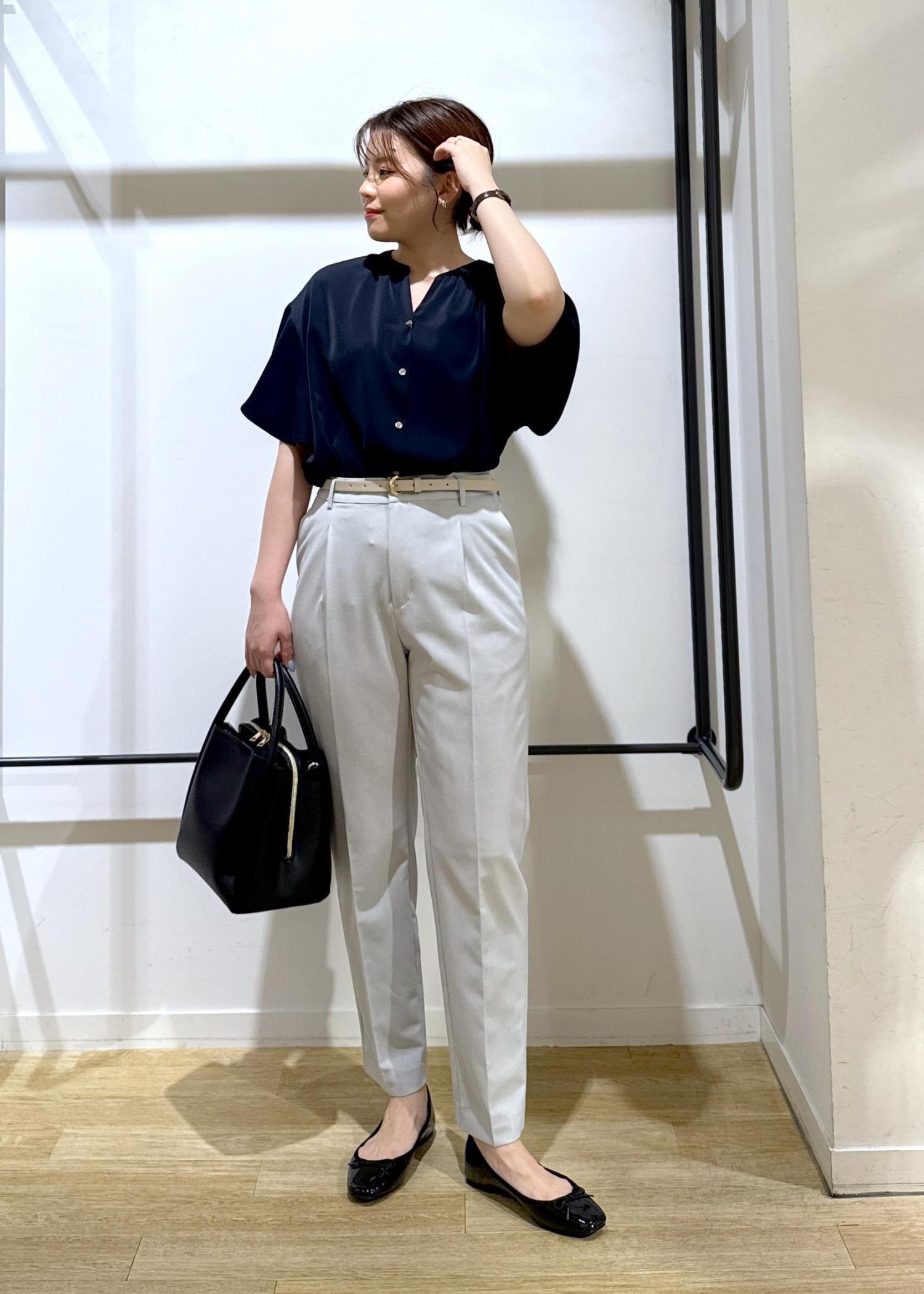 トップスは透け感気にならないネイビーで、ボトムスをライトグレーで涼しげな印象にしてみました!