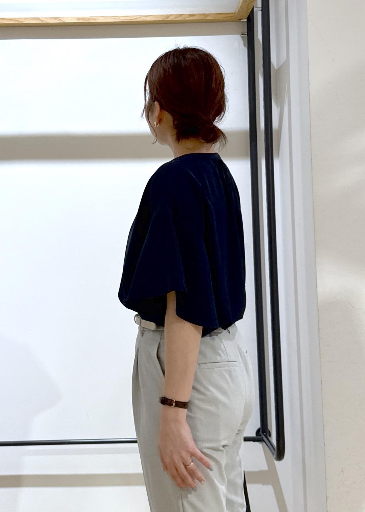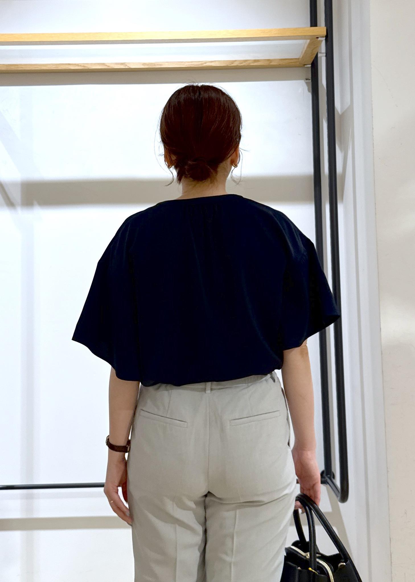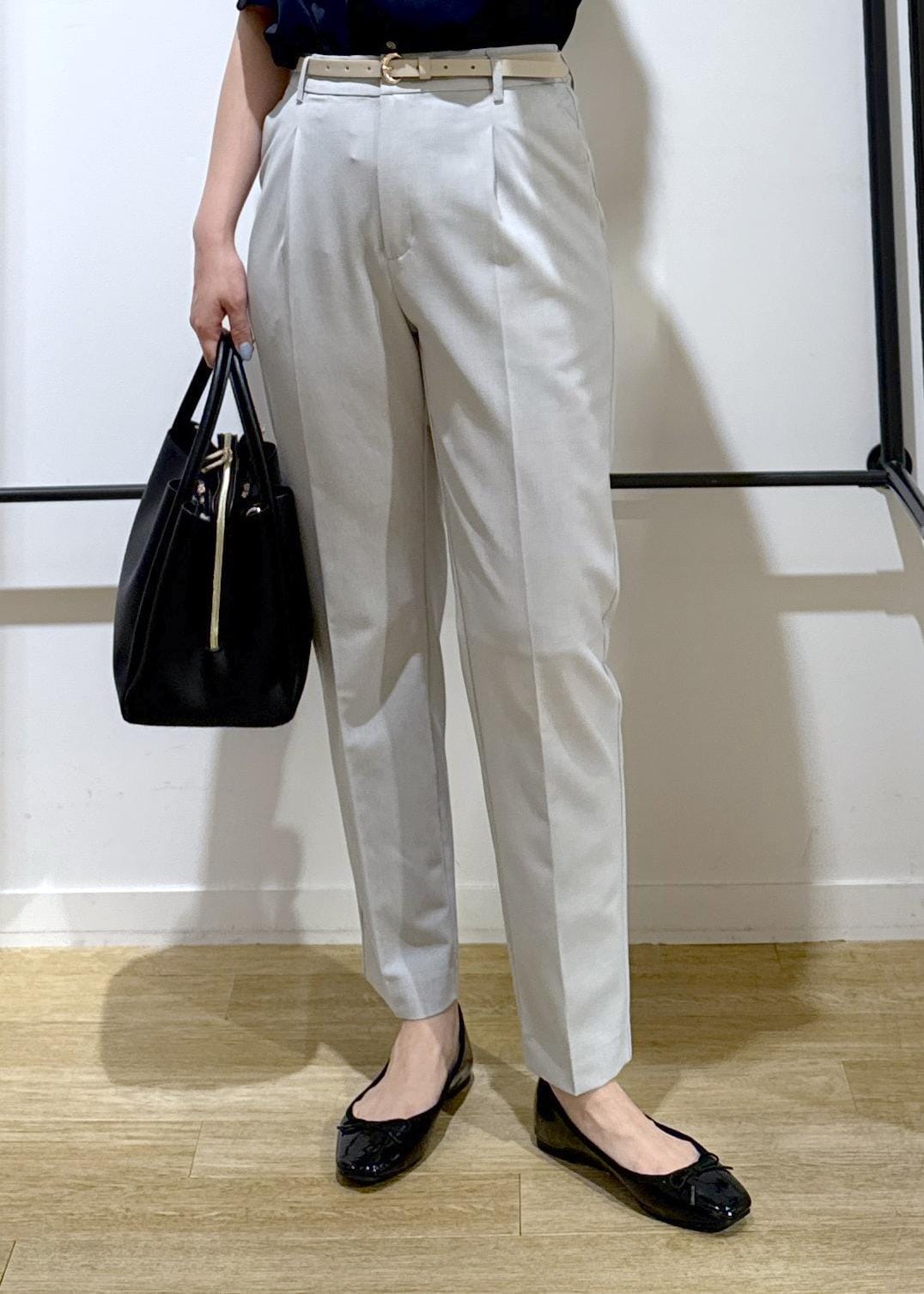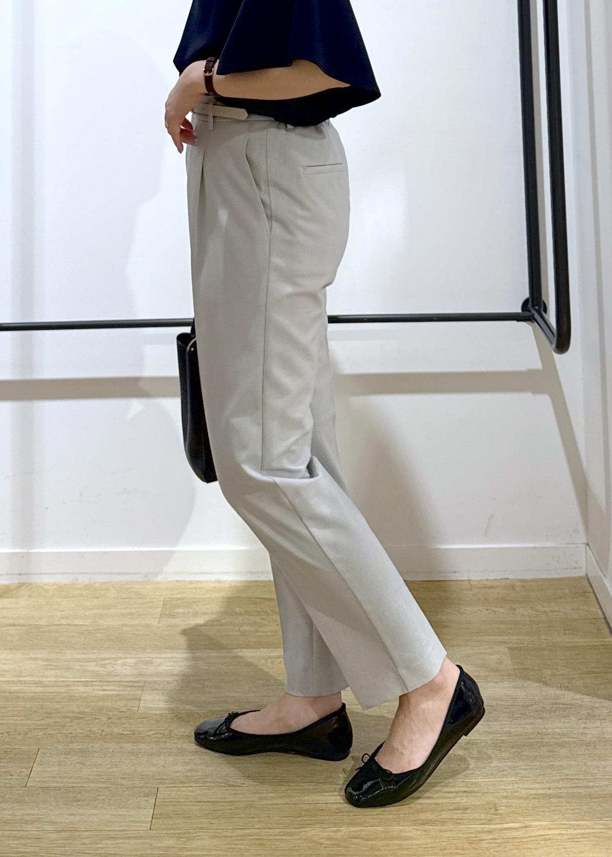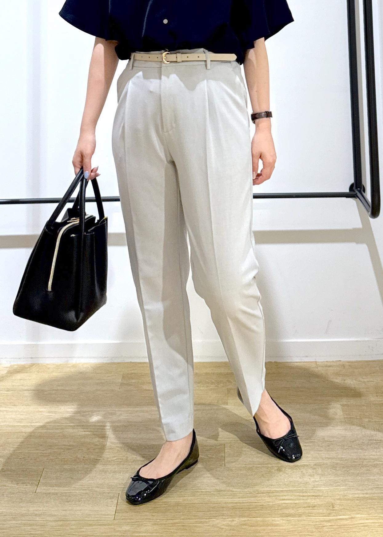 トップスは透け感気にならないネイビーで、ボトムスをライトグレーで涼しげな印象にしてみました!