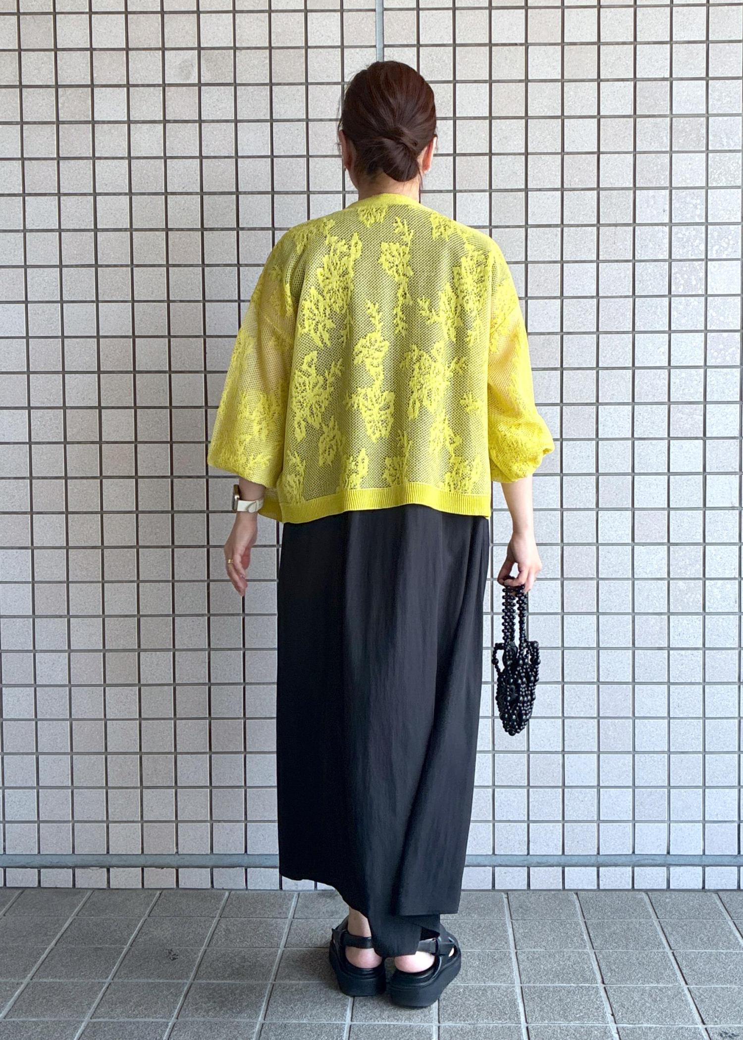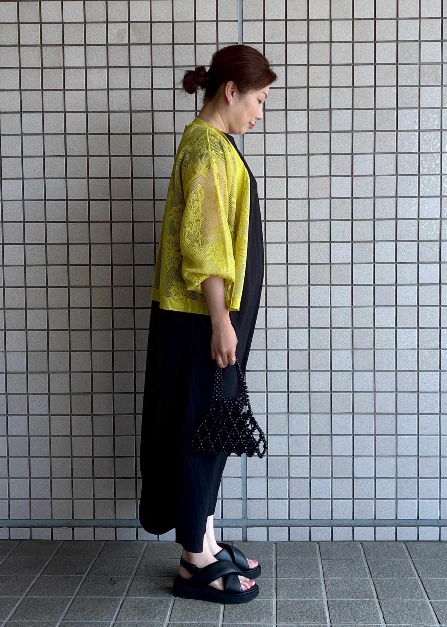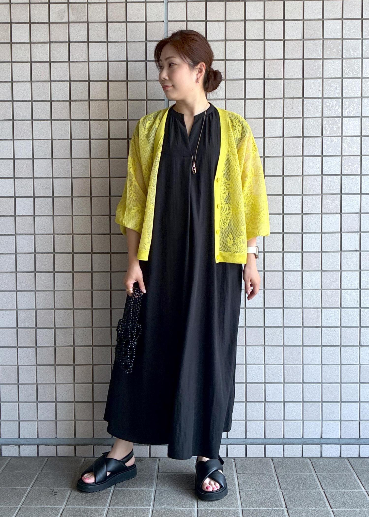 暗くなりすぎないように、差し色でイエローのカーディガンを合わせました☺︎
