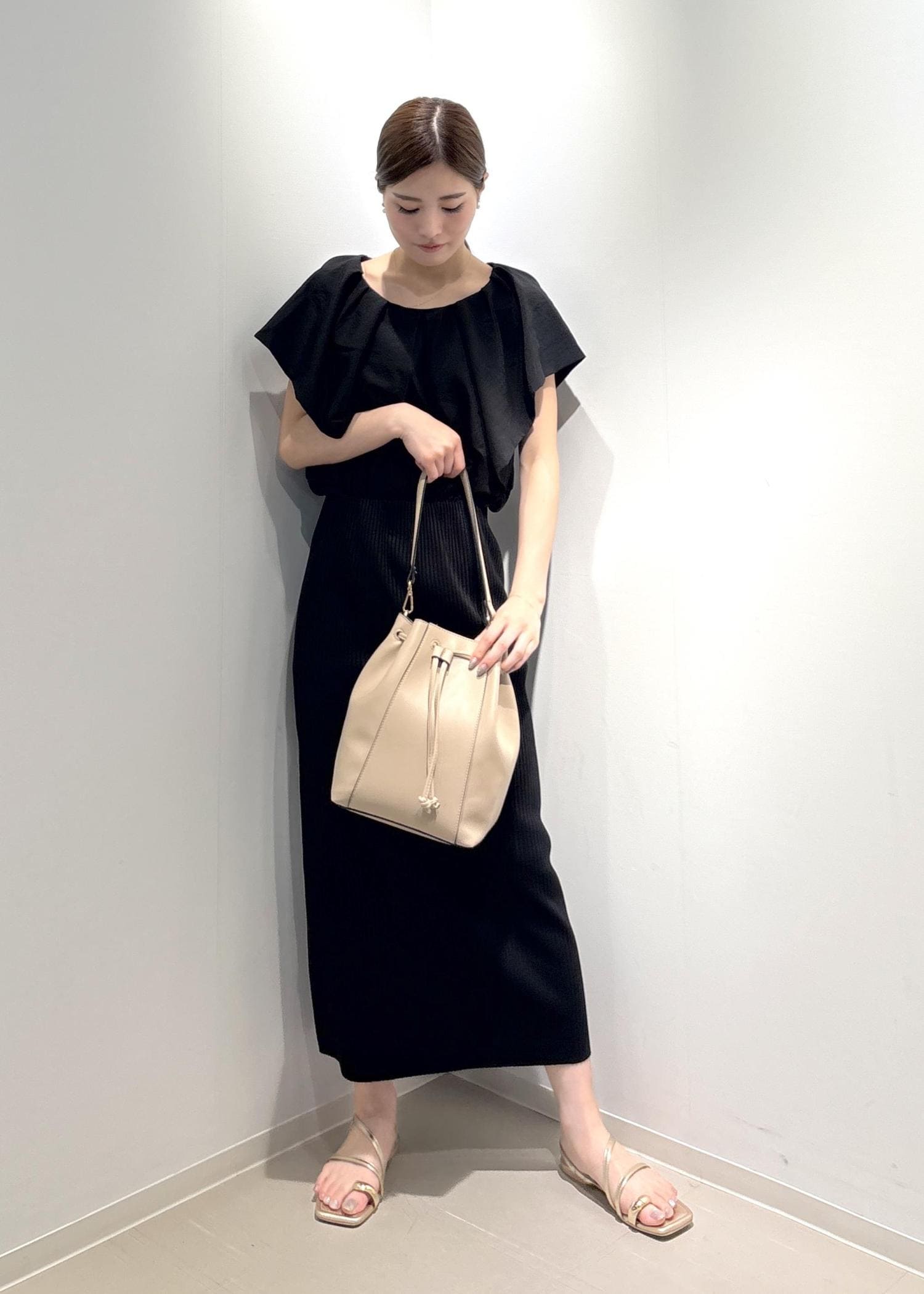 足元とバッグは重たくならないようにゴールドとベージュのお色合わせで♪