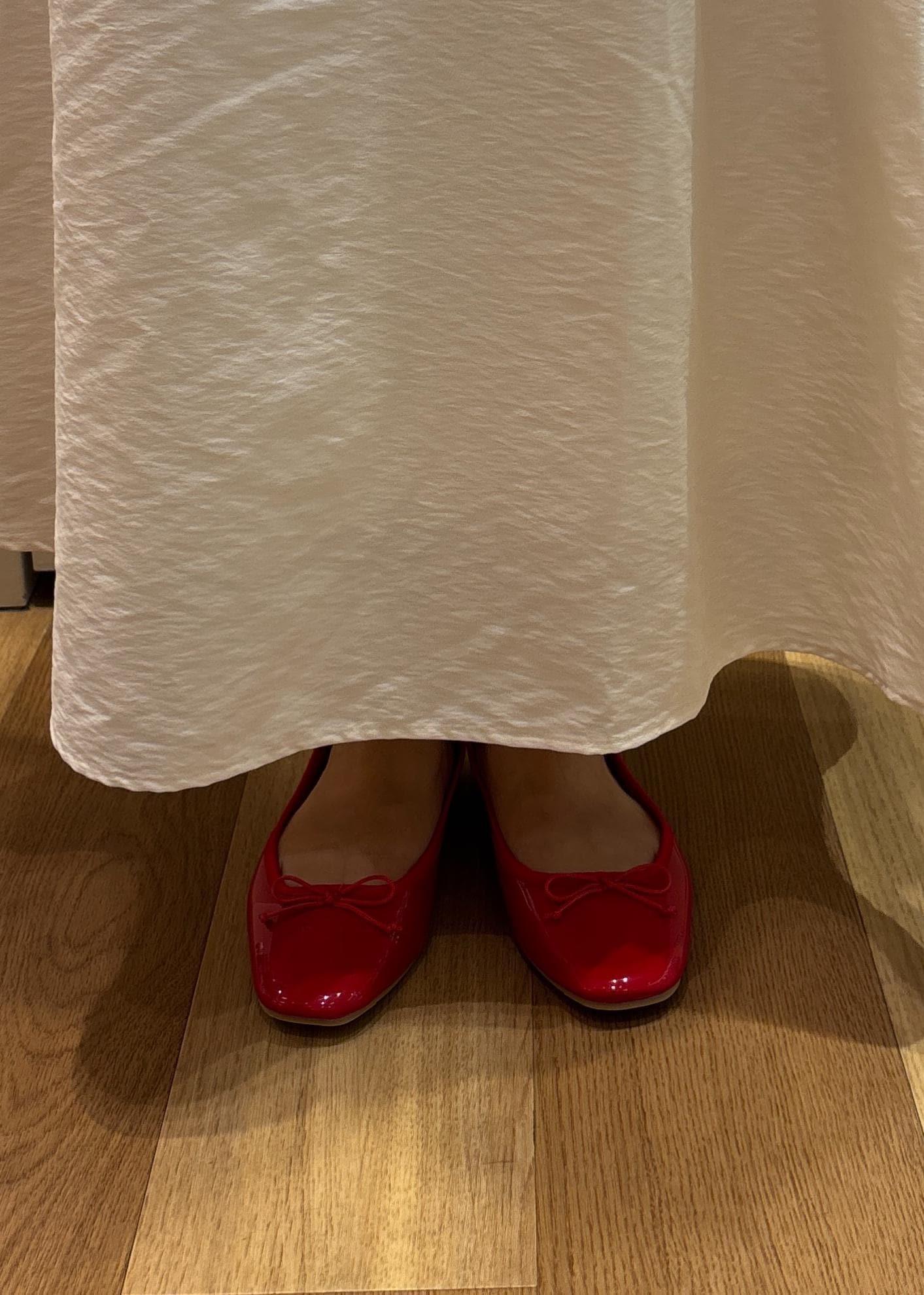 赤のバレエシューズを合わせフレンチシックを表現しました。