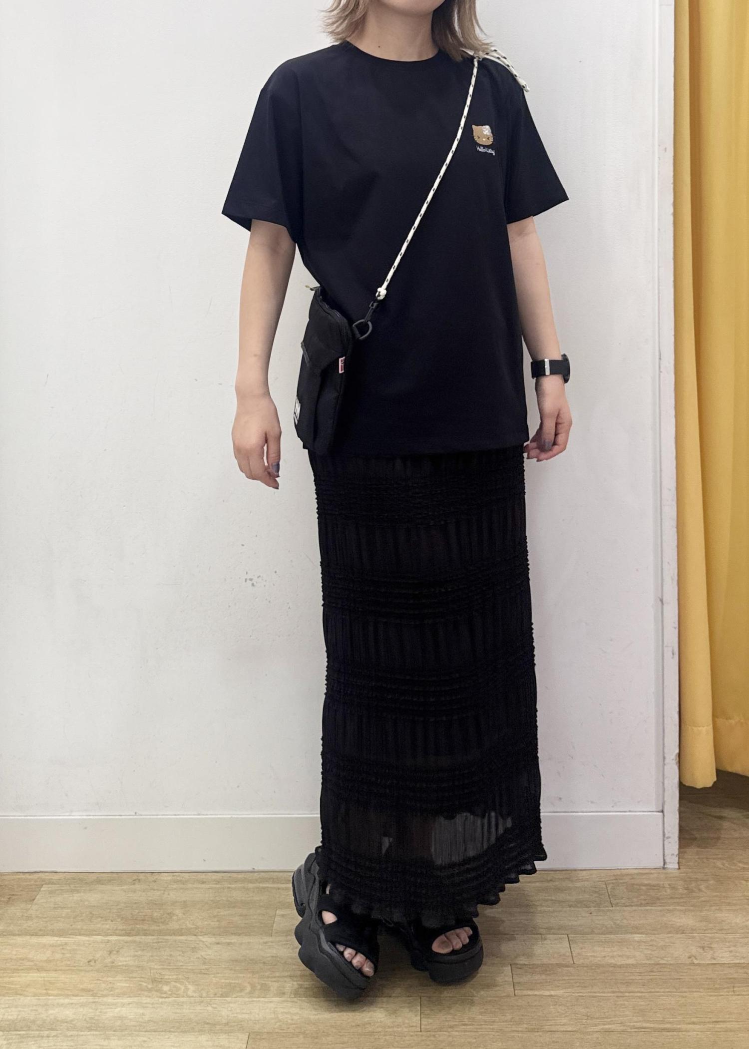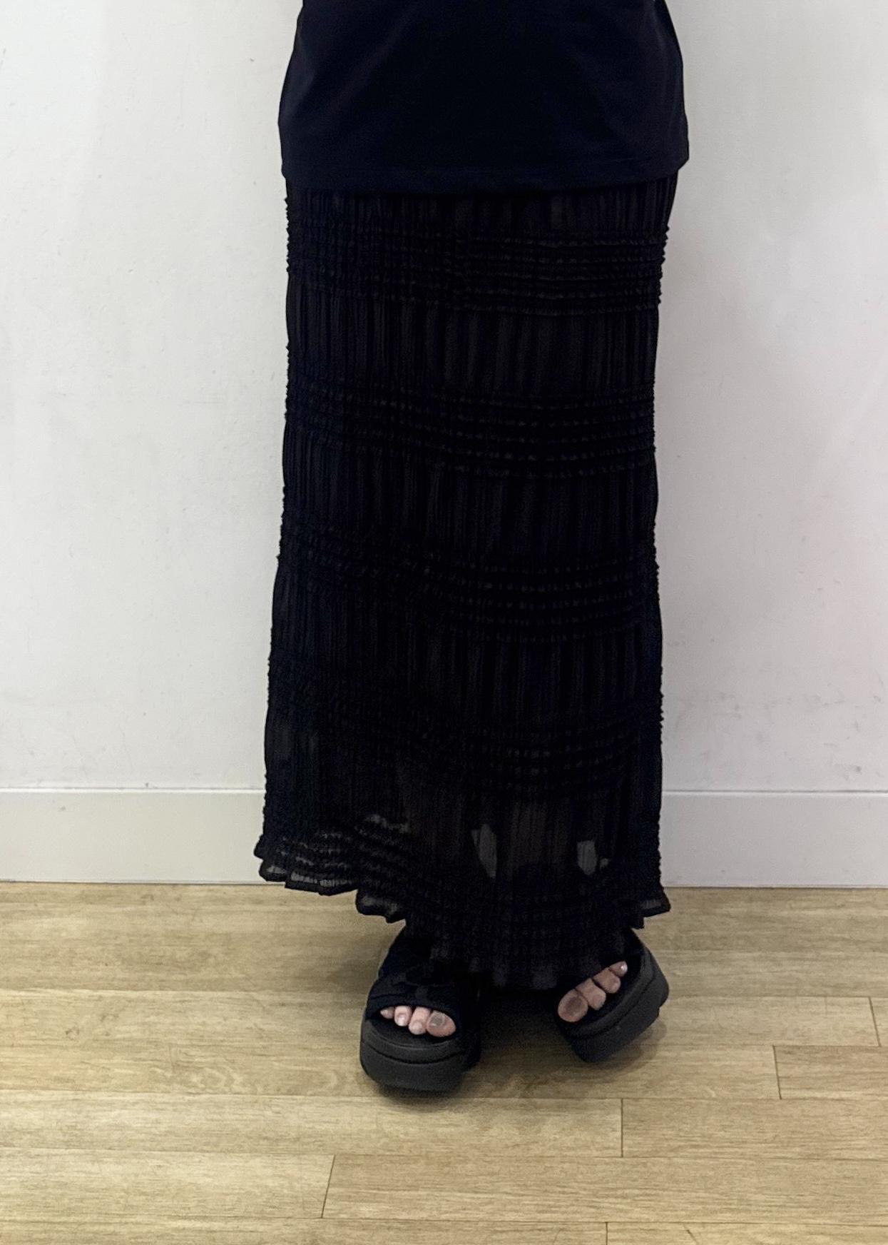 プリーツとフリルが細かく入ったデザインのスカートは、気になる身体のラインを拾い過ぎないキレイなシルエットです。 -