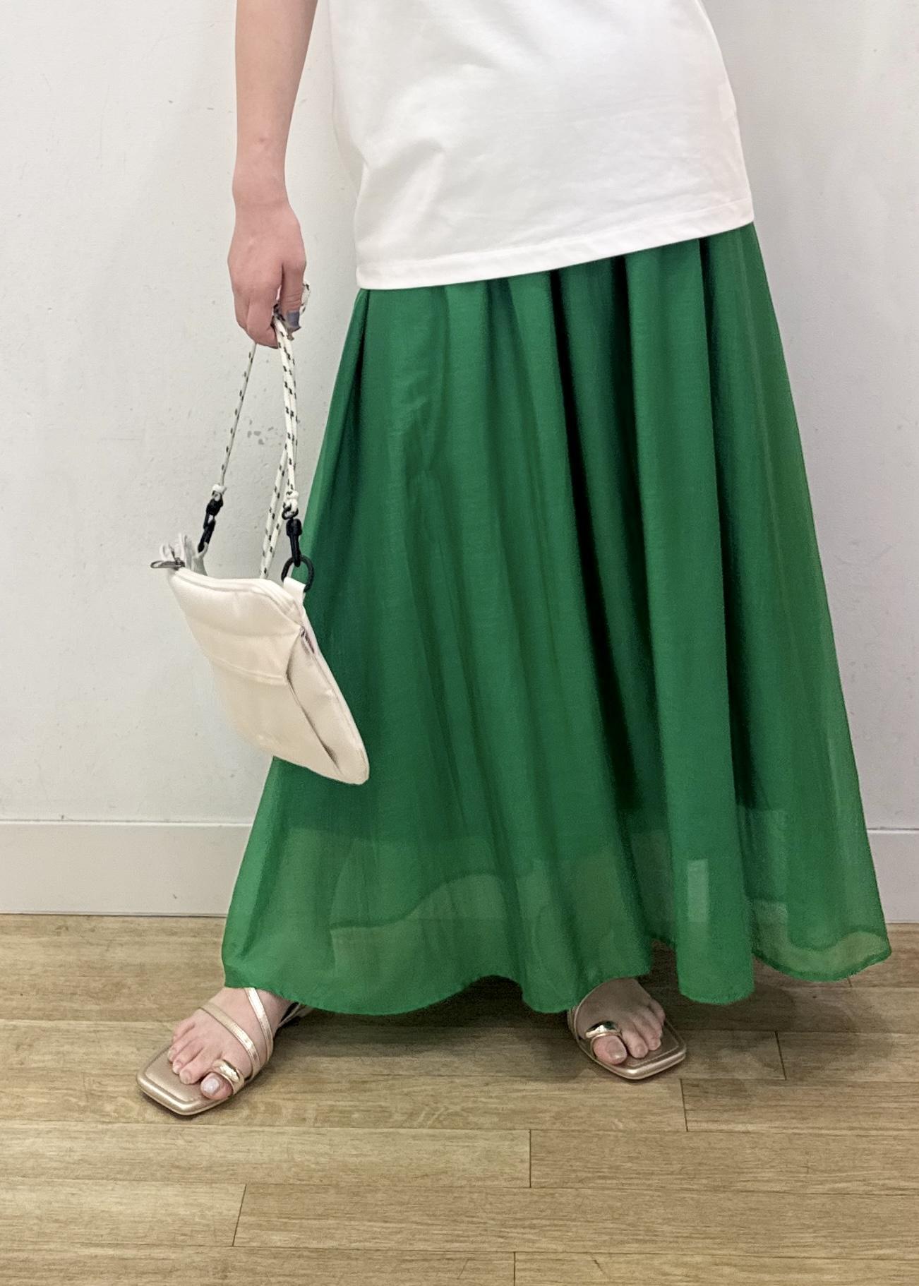 ROPÉ PICNICエアリーシアーギャザーロングスカートグリーン / 38¥6,490レビューウエストはオールゴムでゆったりとしたラクな穿き心地。