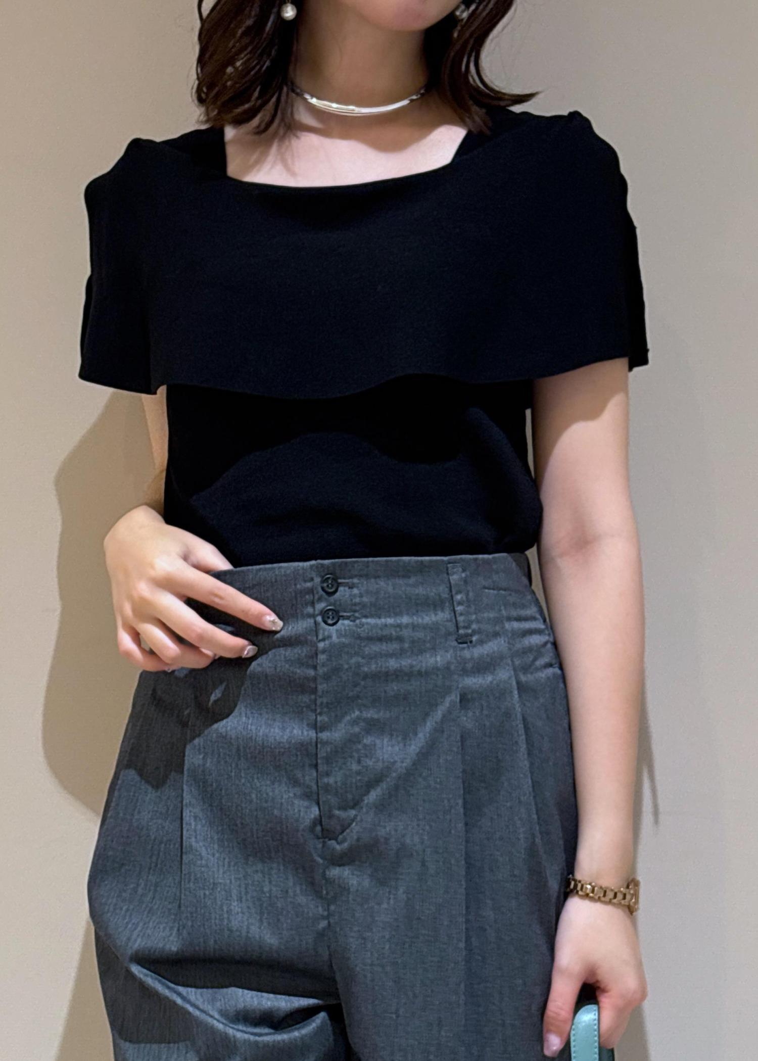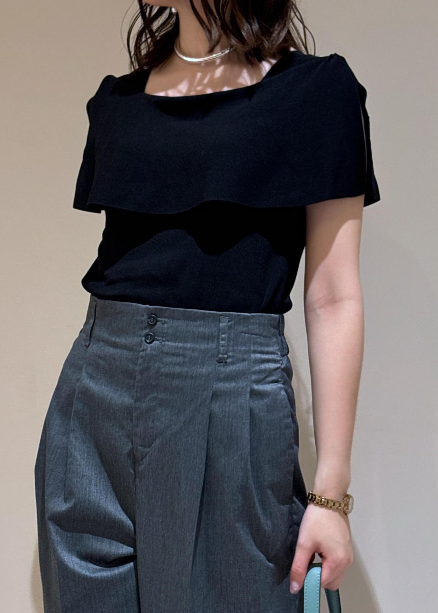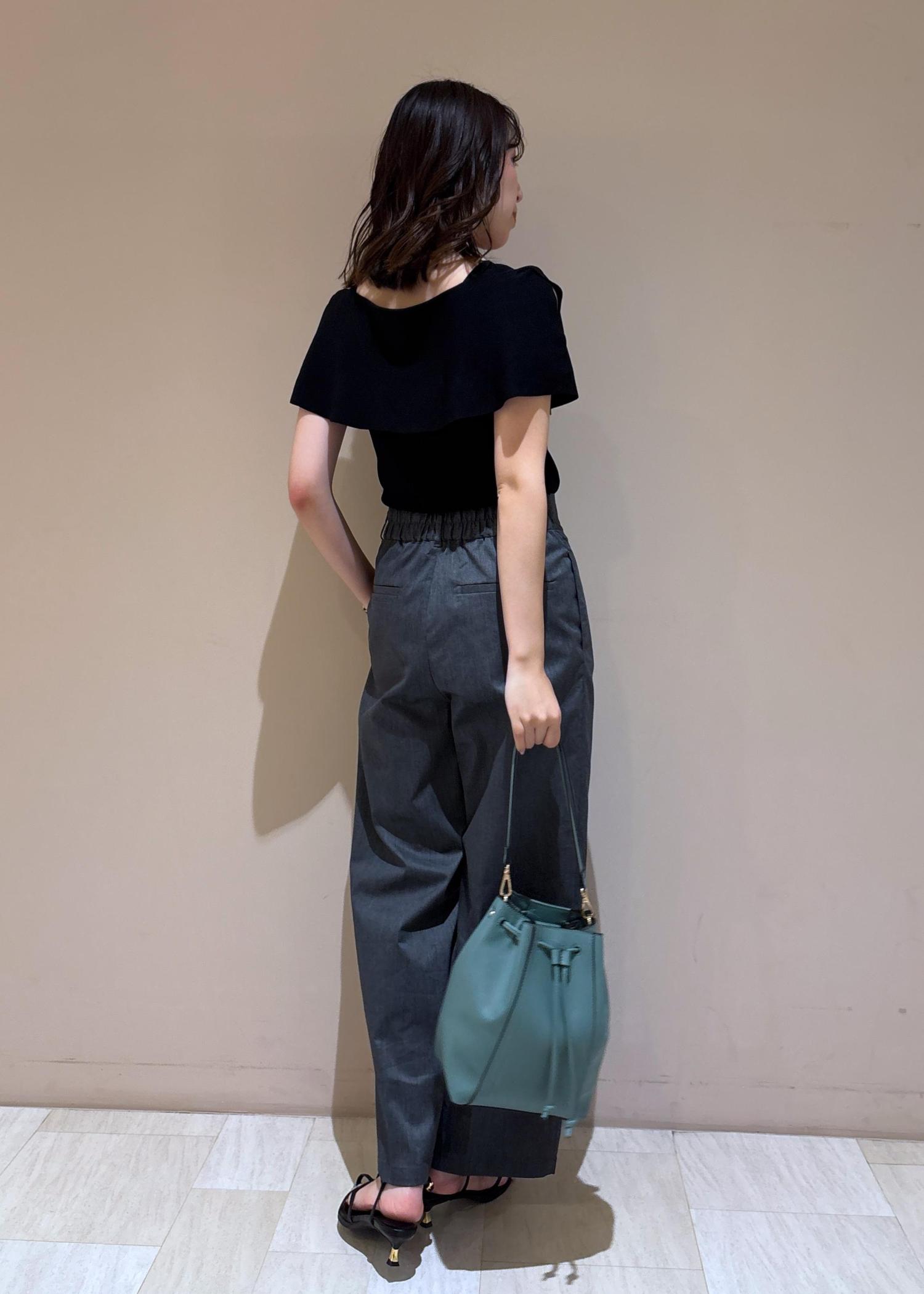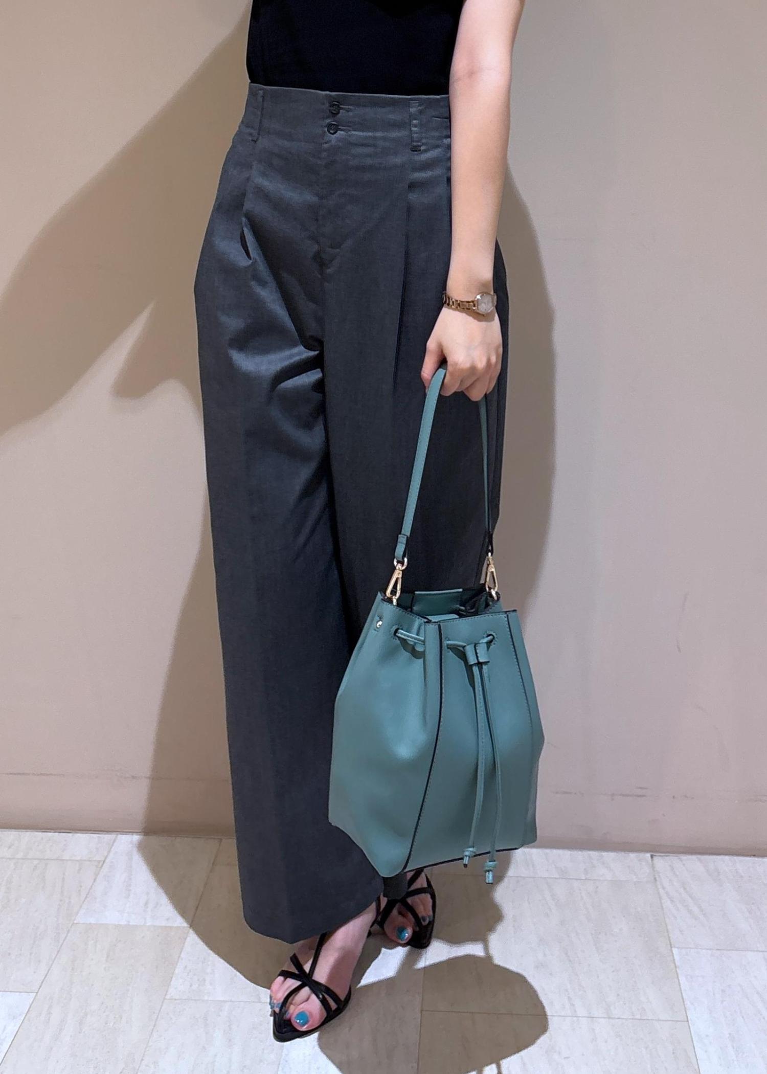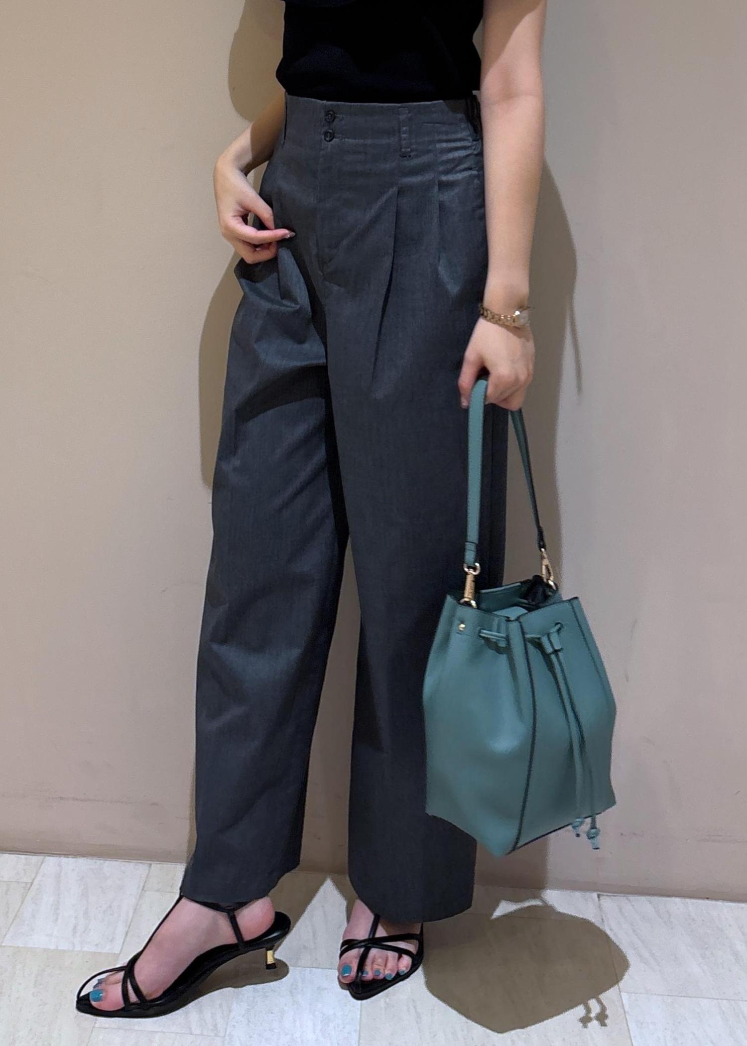 ハイウエストのデザインで、タック入りなので履くだけでシルエットがキレイに見えます。