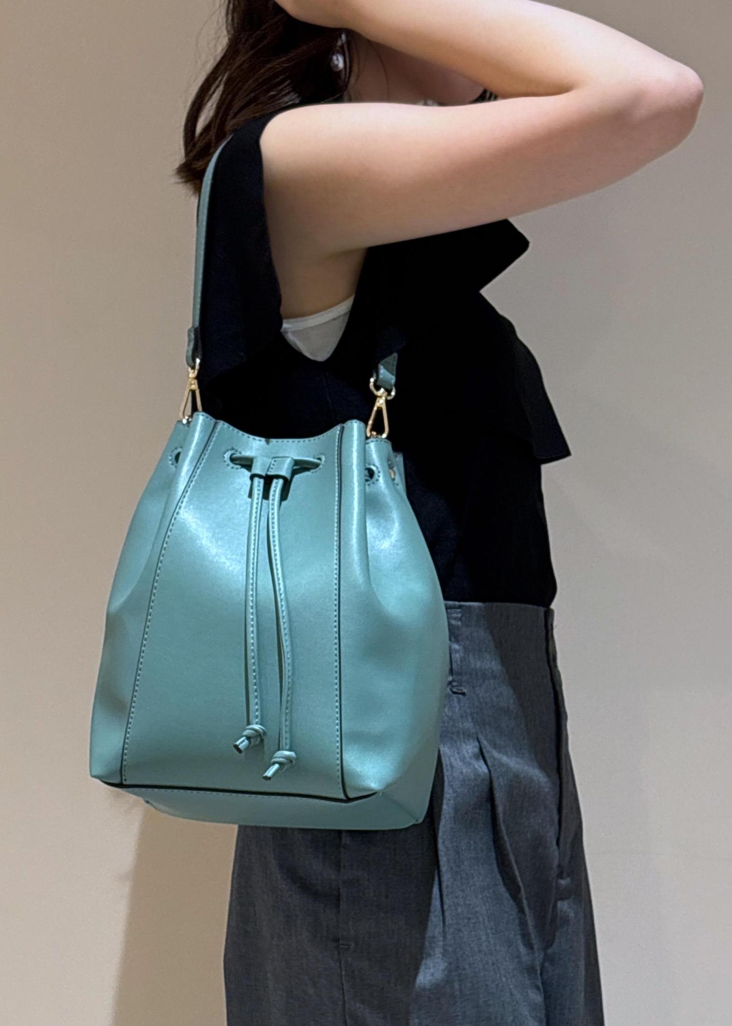 小物はトレンドのミントグリーンを選ぶとよりコーデ映えします。