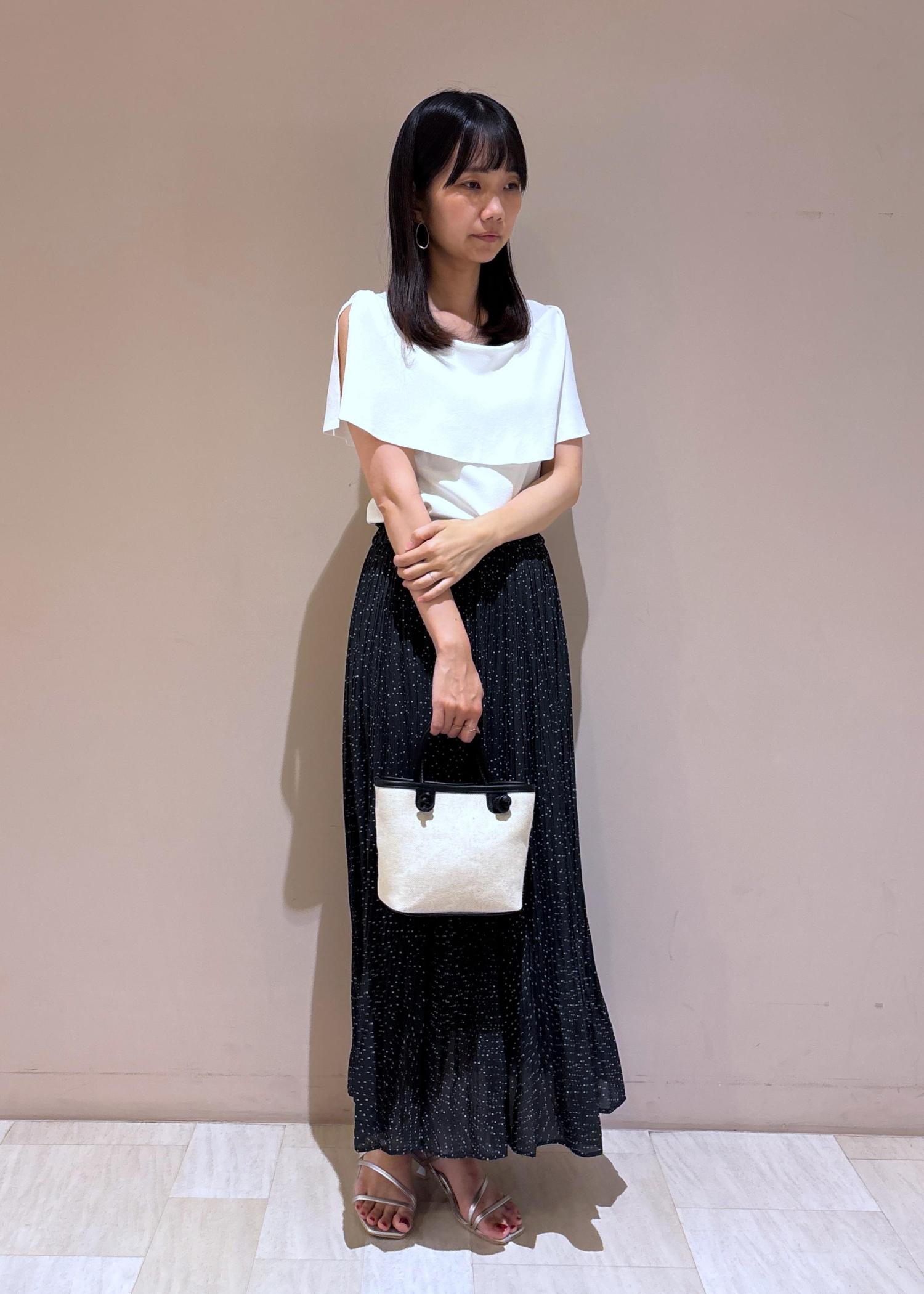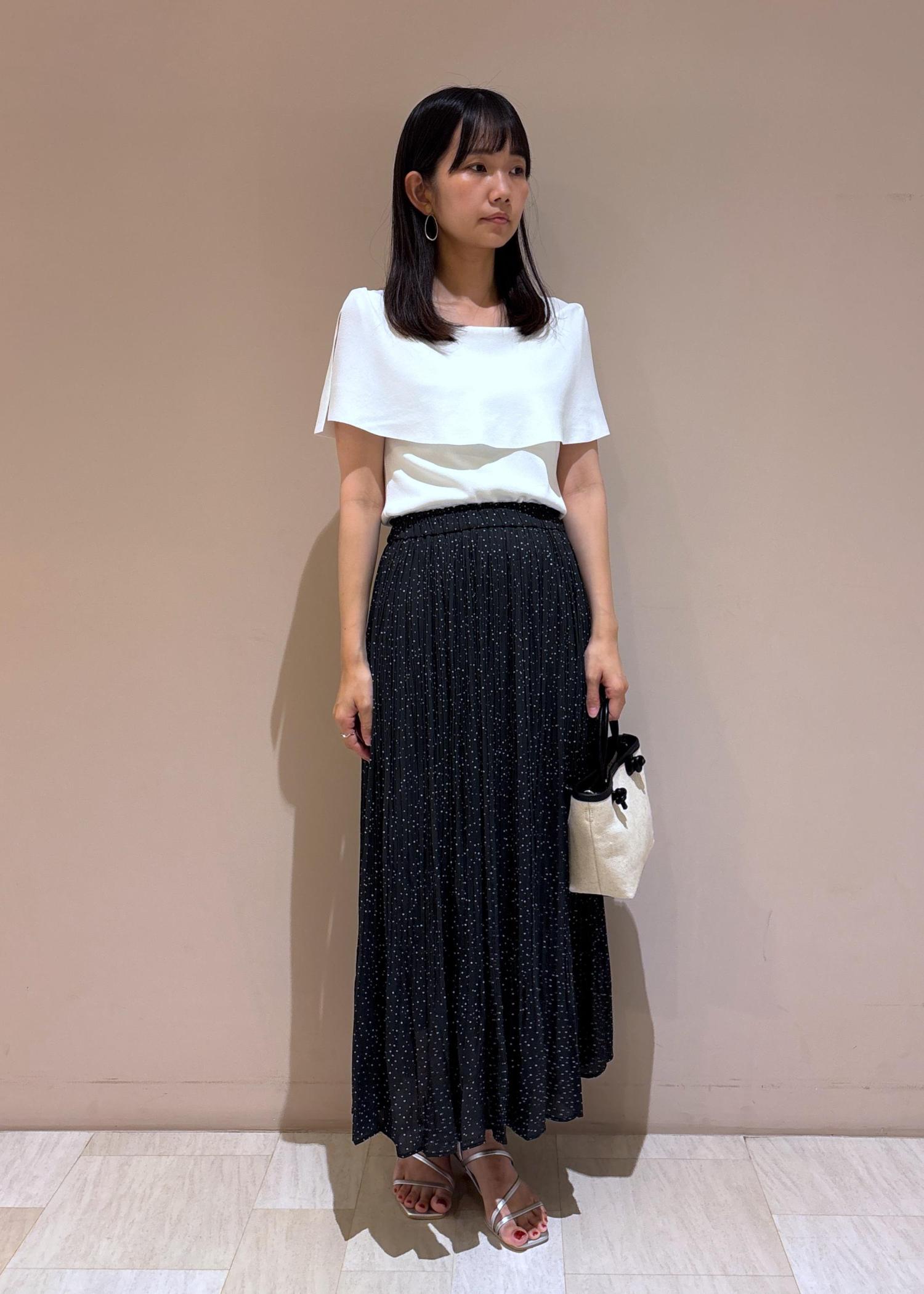 サラッとしたトップスと毎年人気のスカートを使ったモノトーンコーデです。