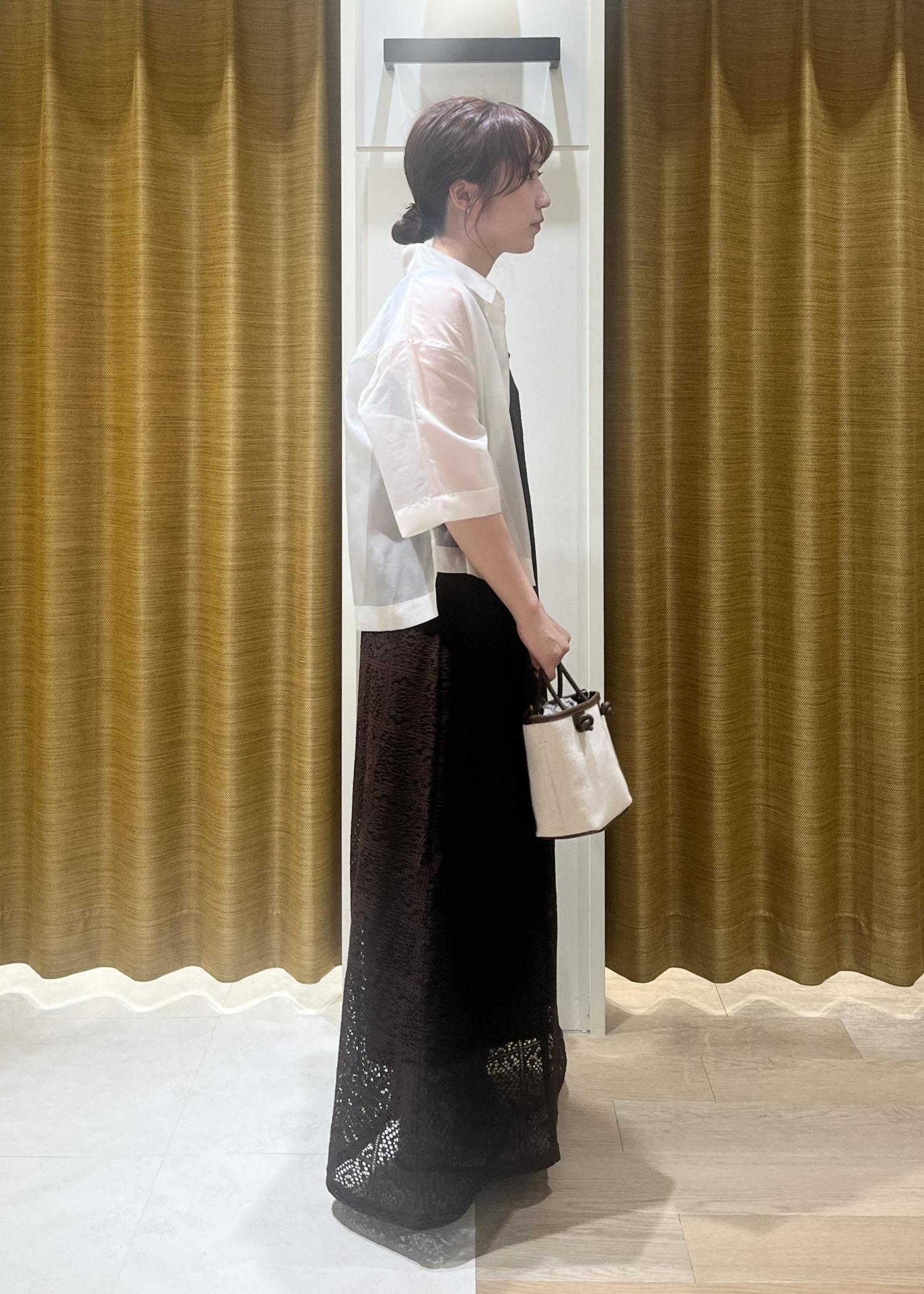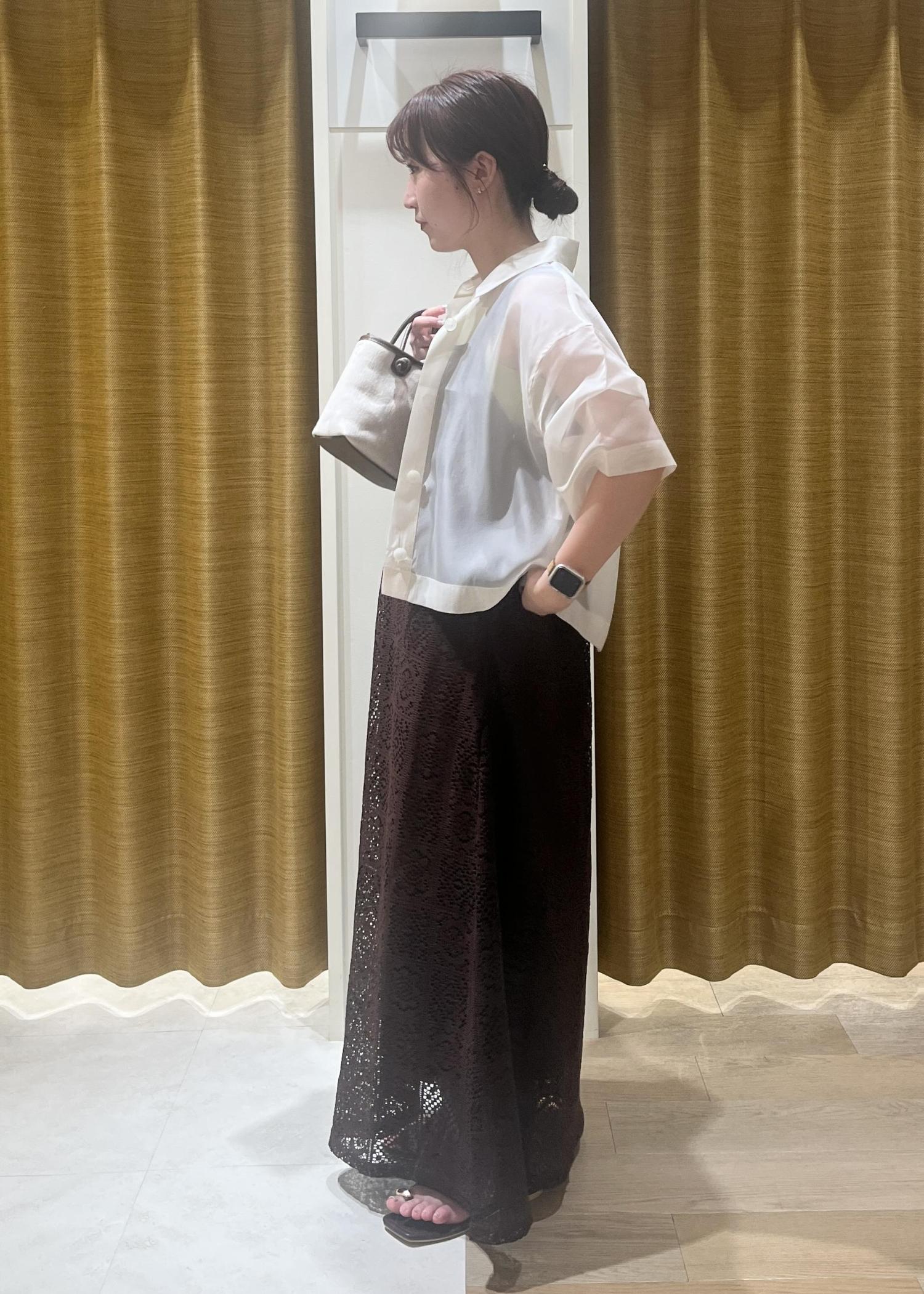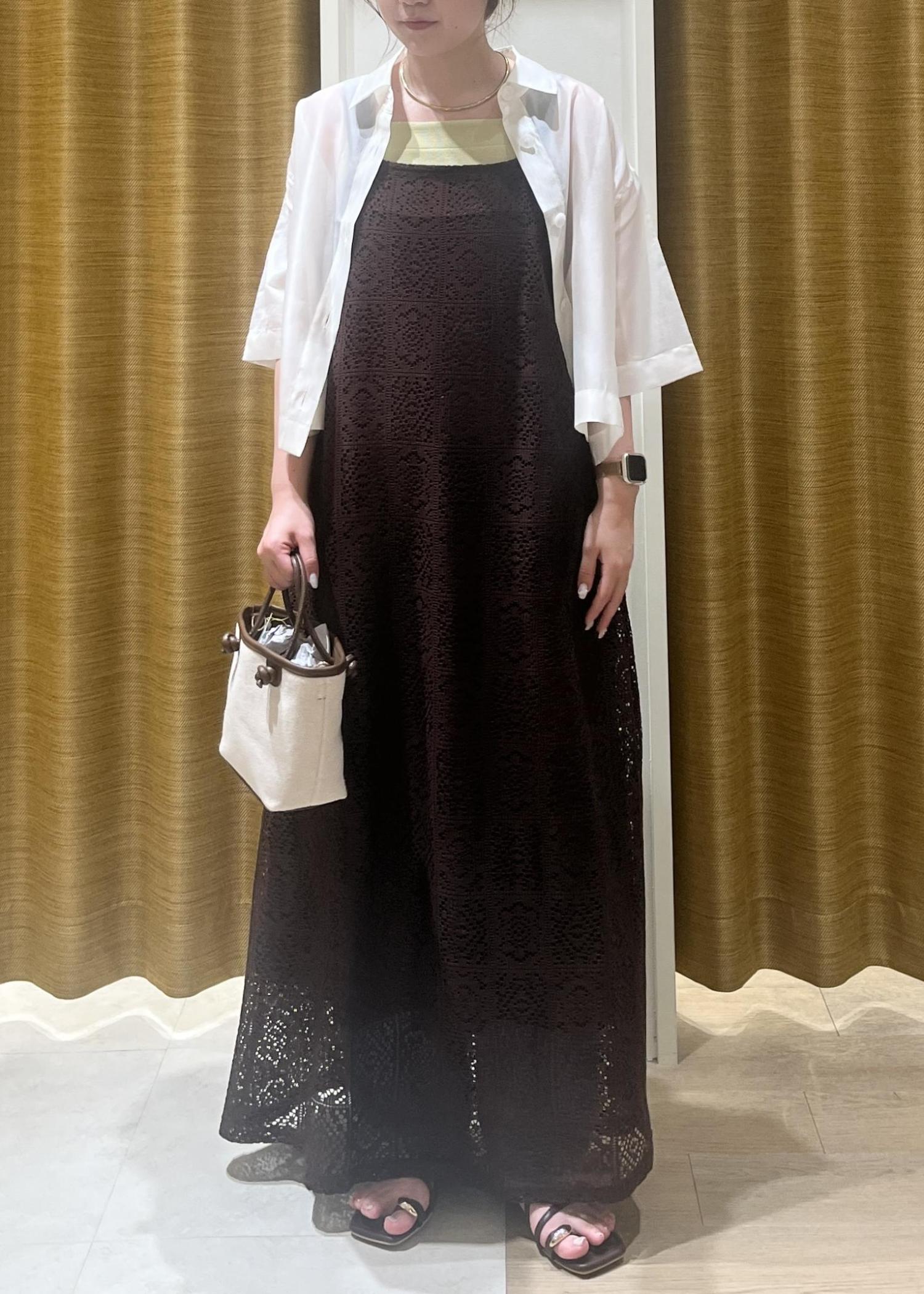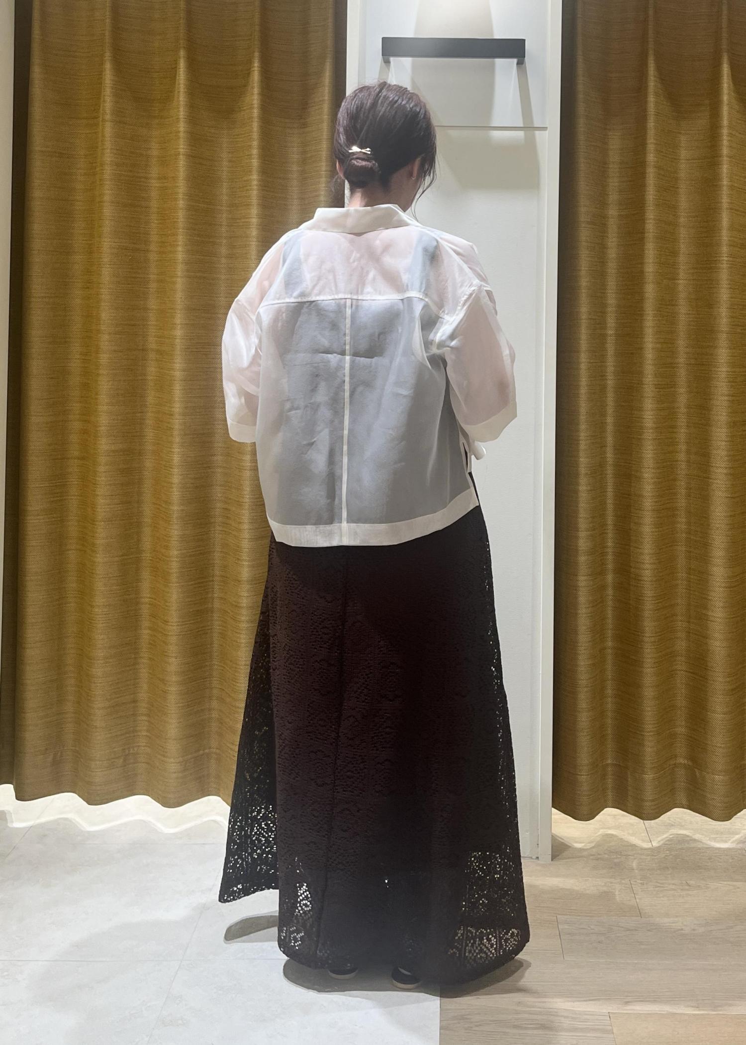 シアーシャツも羽織りで一枚あると日焼けや冷房対策もばっちり◎インナーにはグリーンでワンポイントに。