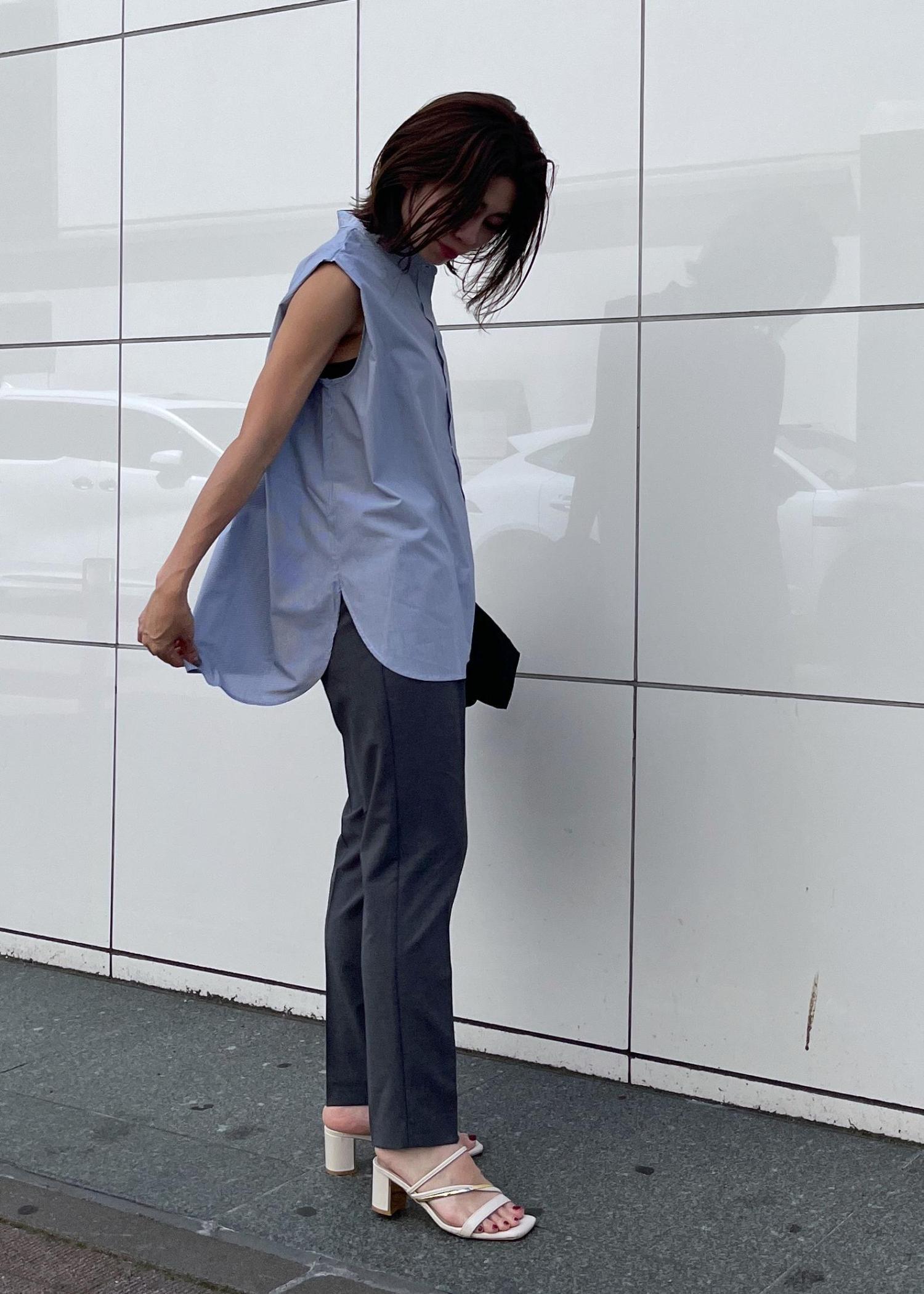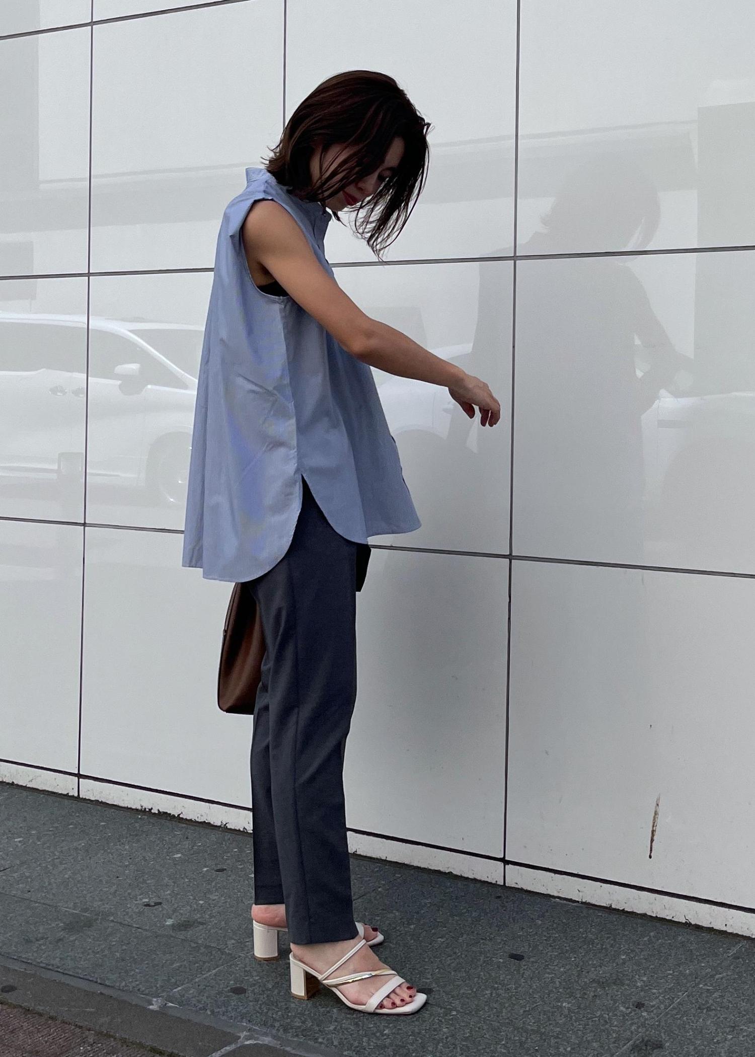 ROPÉ PICNIC【UVカット・接触冷感・イージーケア】バンドカラーノースリーブシャツ/通勤対応サックス / 38¥4,499レビューボックスシルエットで着丈が長めです。