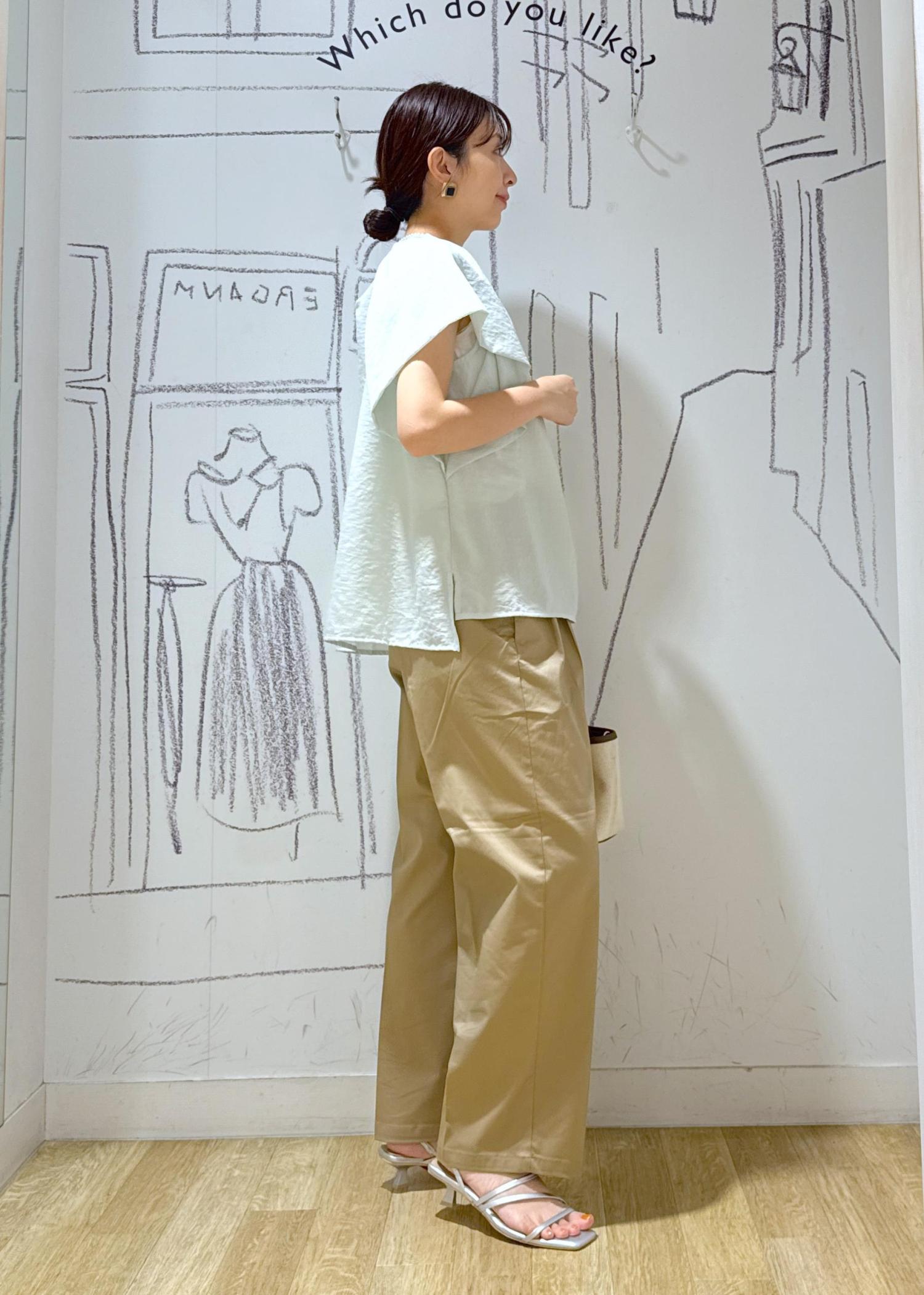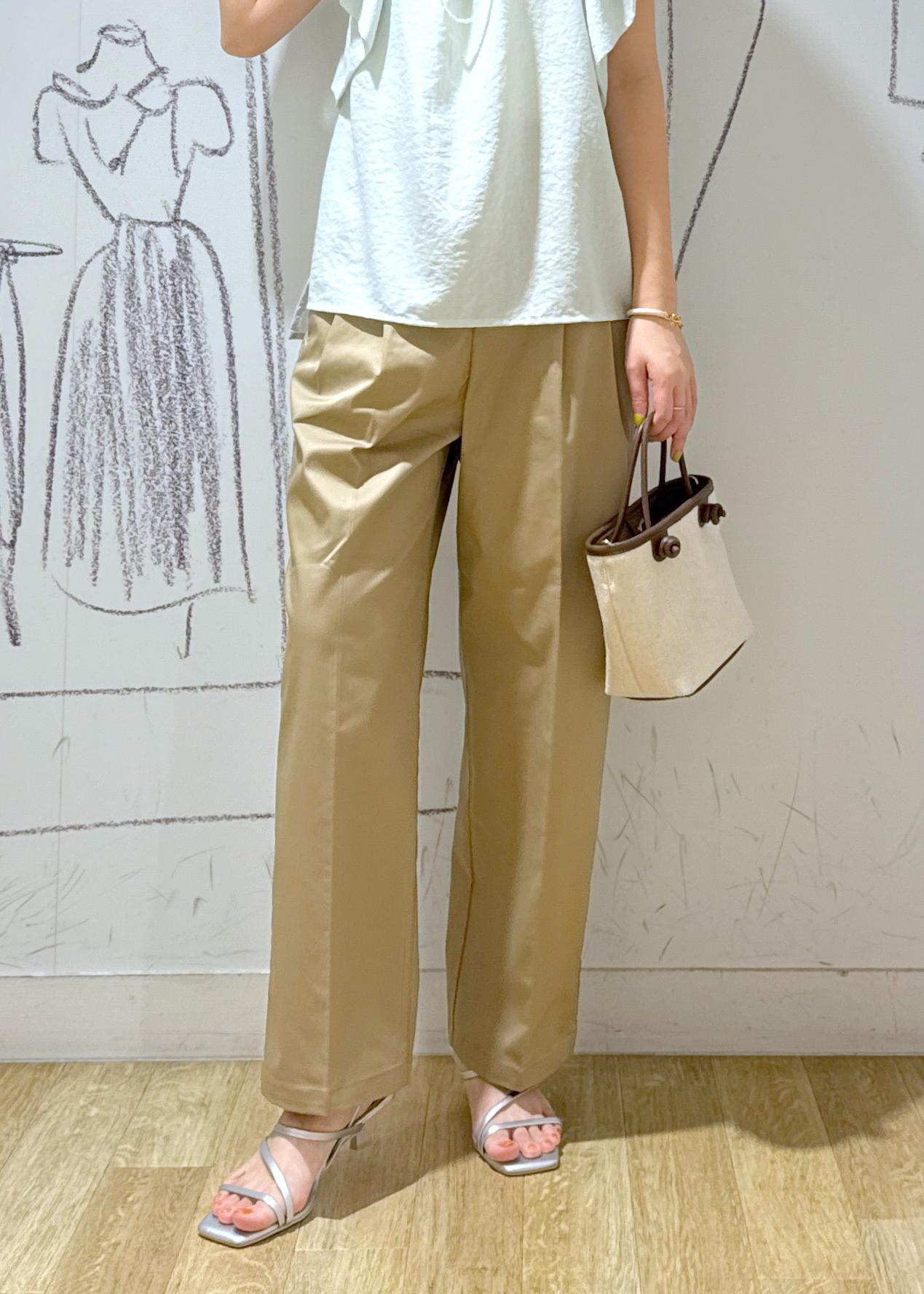 アウトレットROPÉ PICNIC【UVカット・接触冷感】タックチノワイドパンツベージュ / 36¥5,192レビュー骨格ウェーブなのでハイウエストデザインはスタイルアップ効果が大きく好きなデザイン。コシとハリ感のある生地なのでカジュアル、上品どちらのイメージでもスタイルが決まります。38サイズはウエストが大きく感じたので着るなら36サイズにします。着丈はくるぶしが隠れ、足の甲に若干掛かる長さです。