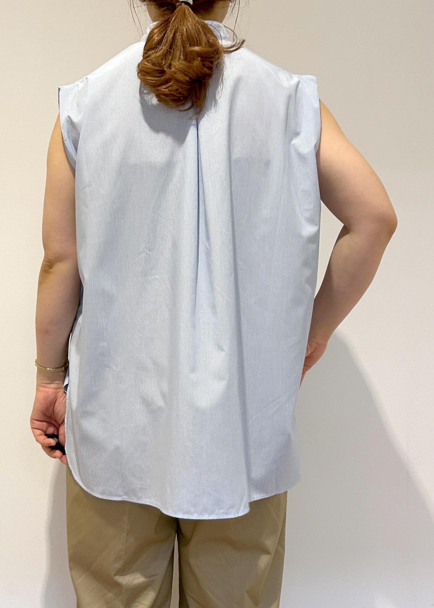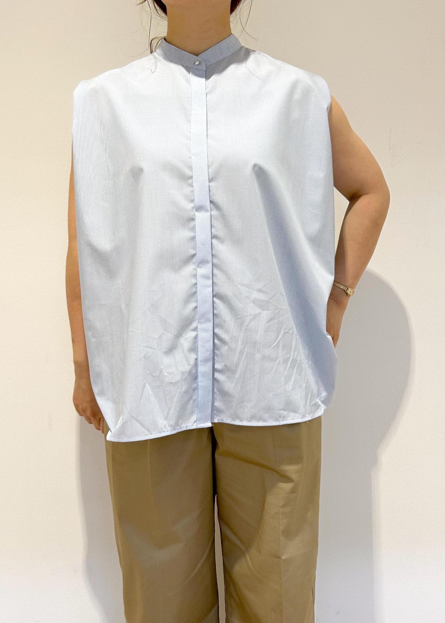 【UVカット・接触冷感・イージーケア】バンドカラーノースリーブシャツ/通勤対応