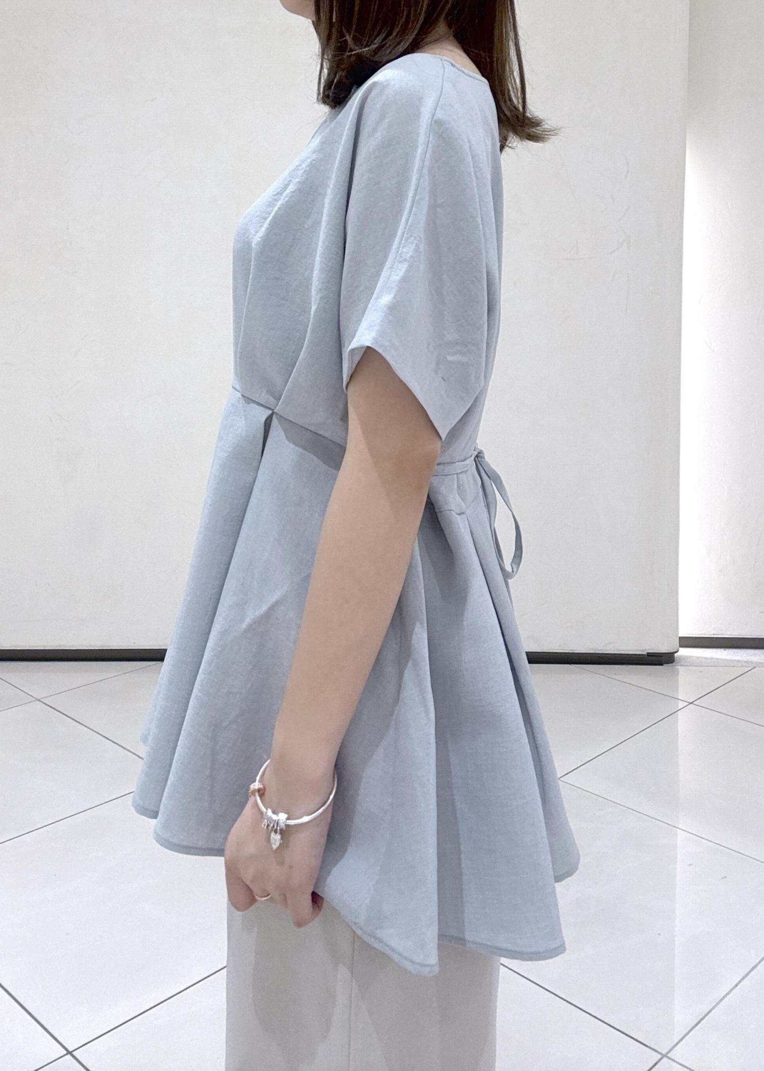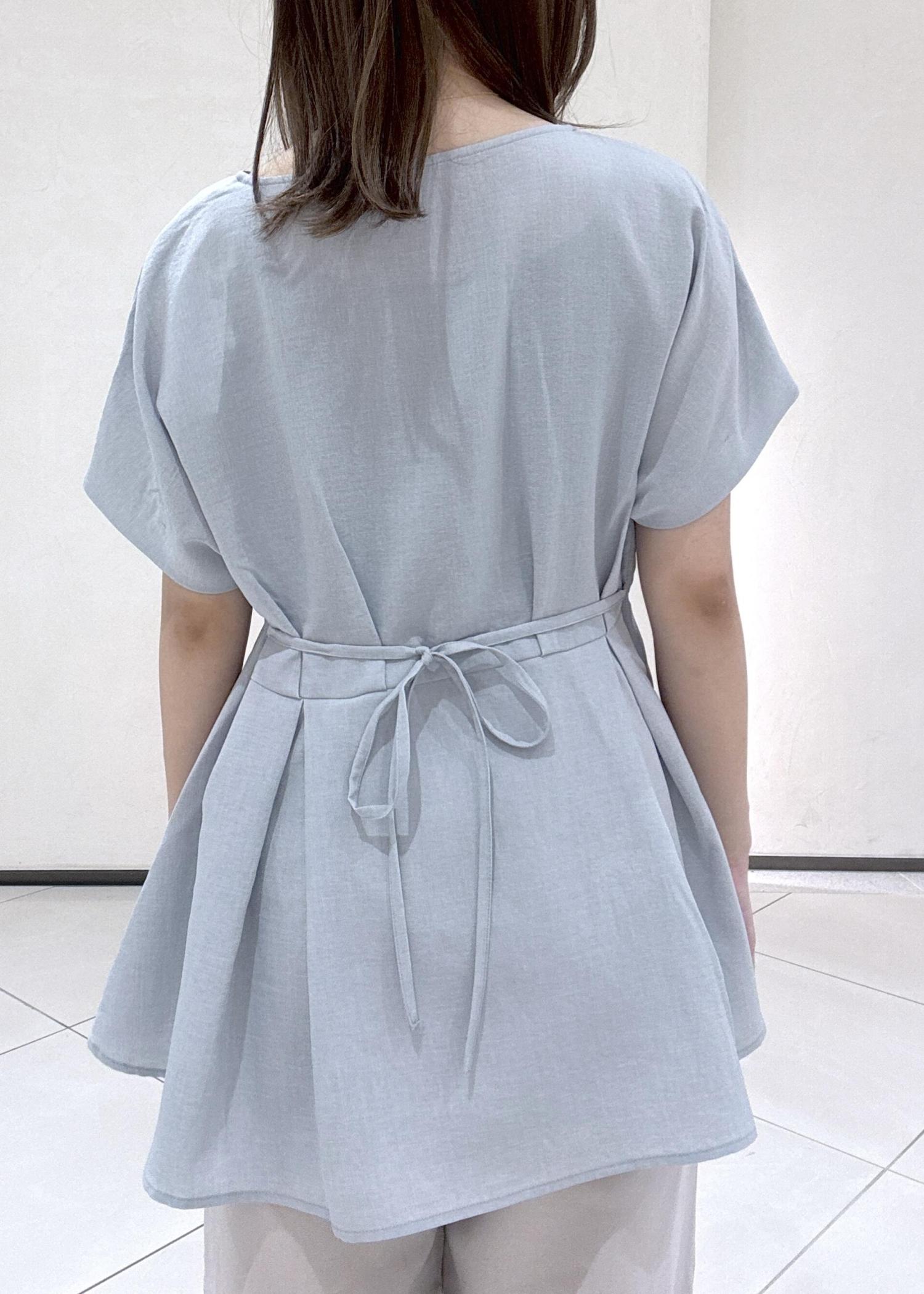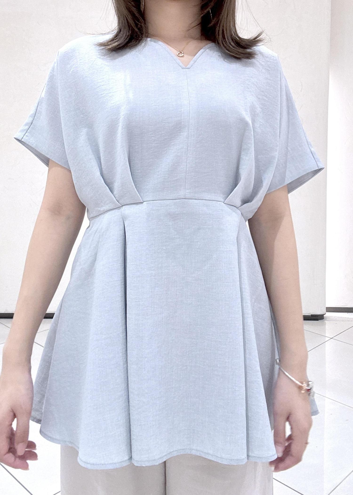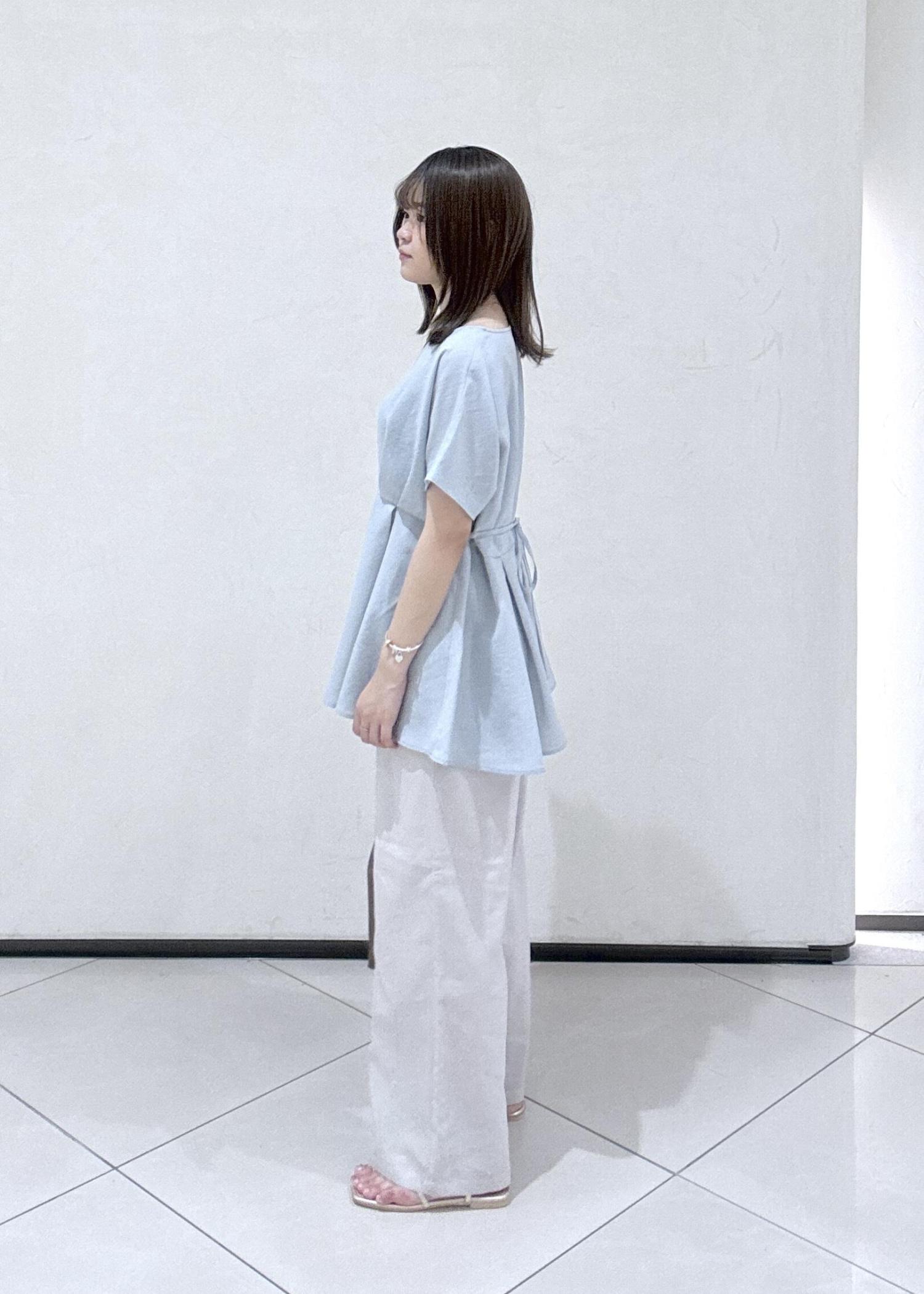 トップスは淡い水色で、涼しげな印象にコーデを組みました!素材も薄手で肌への張りつきを気にせず、暑がりの私でも快適に着られました!