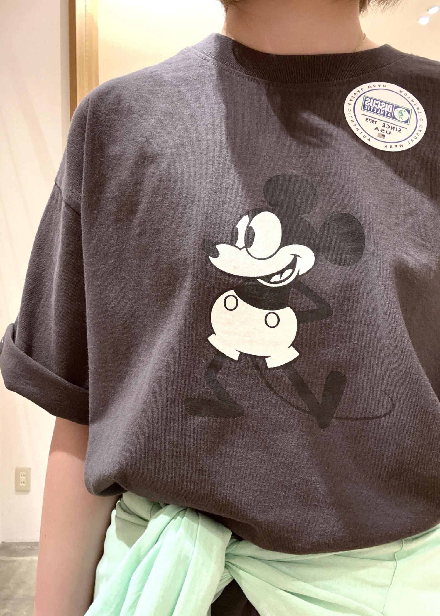 DISCUSとDisneyのコラボtシャツでミッキーマウスのプリントがポップで可愛いです。 -