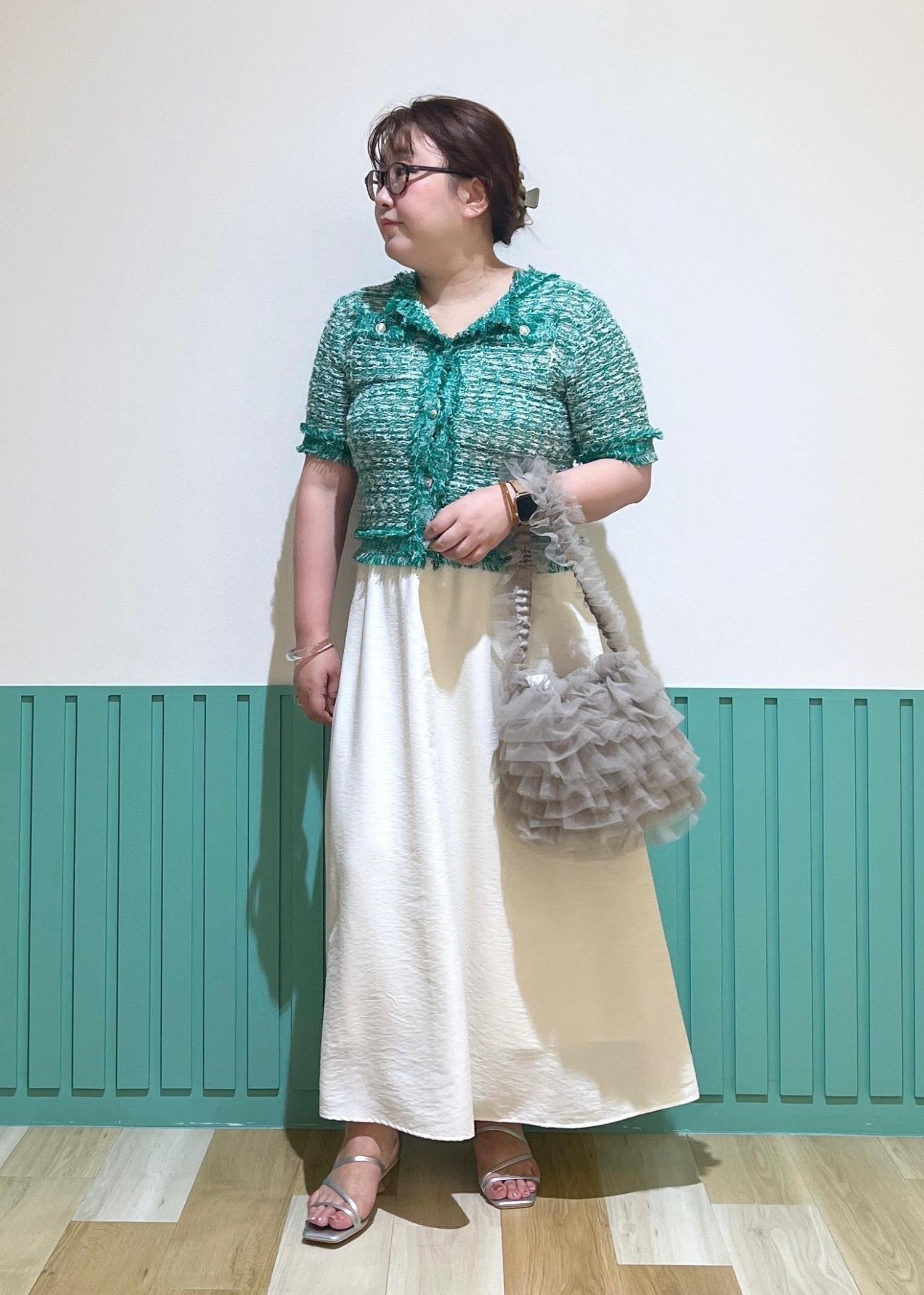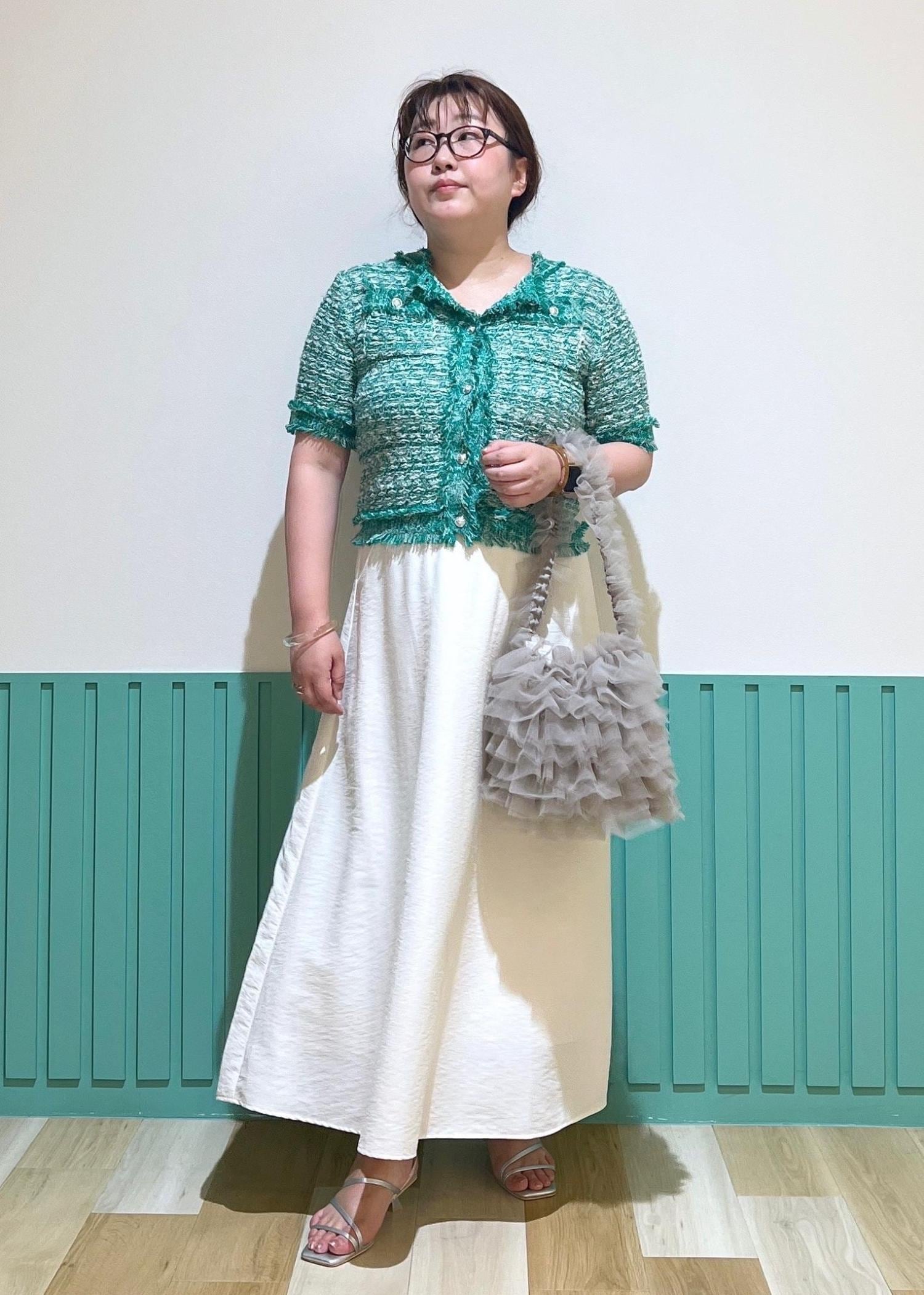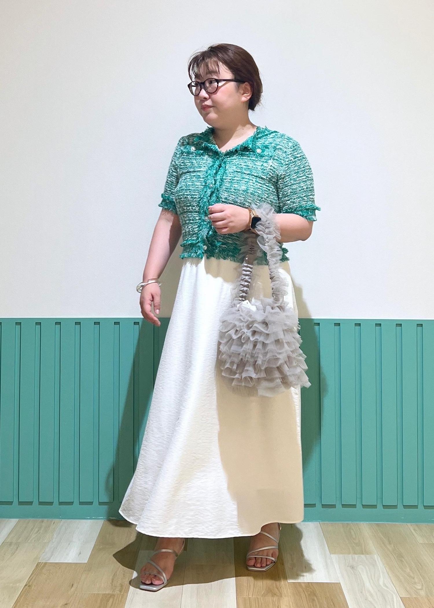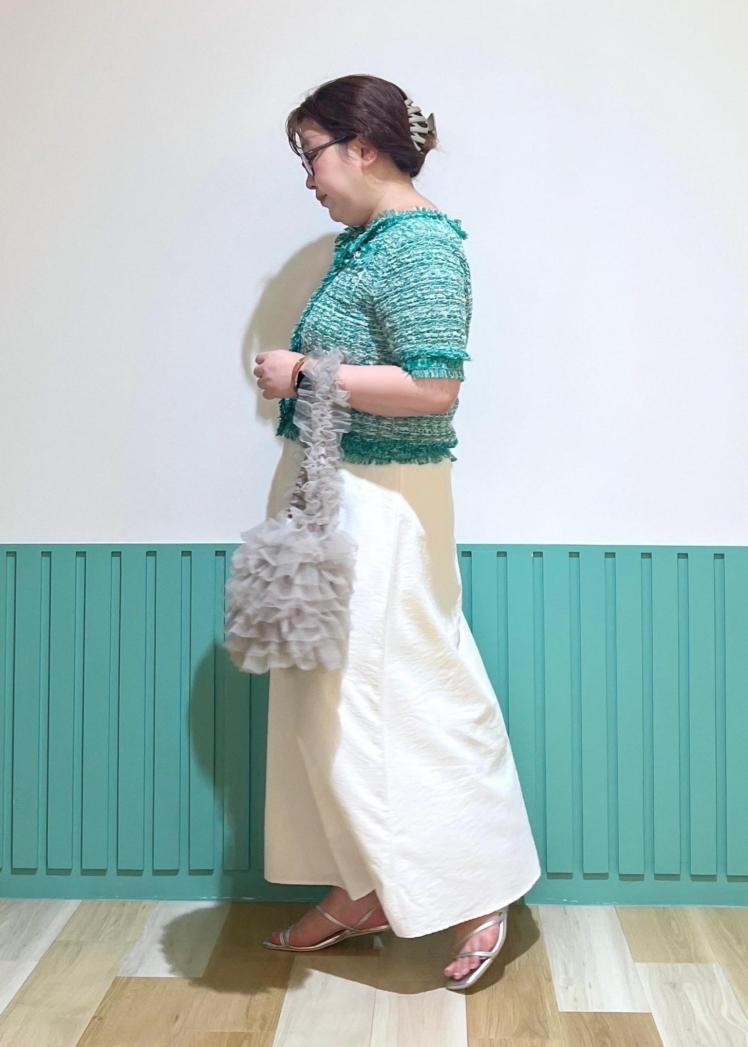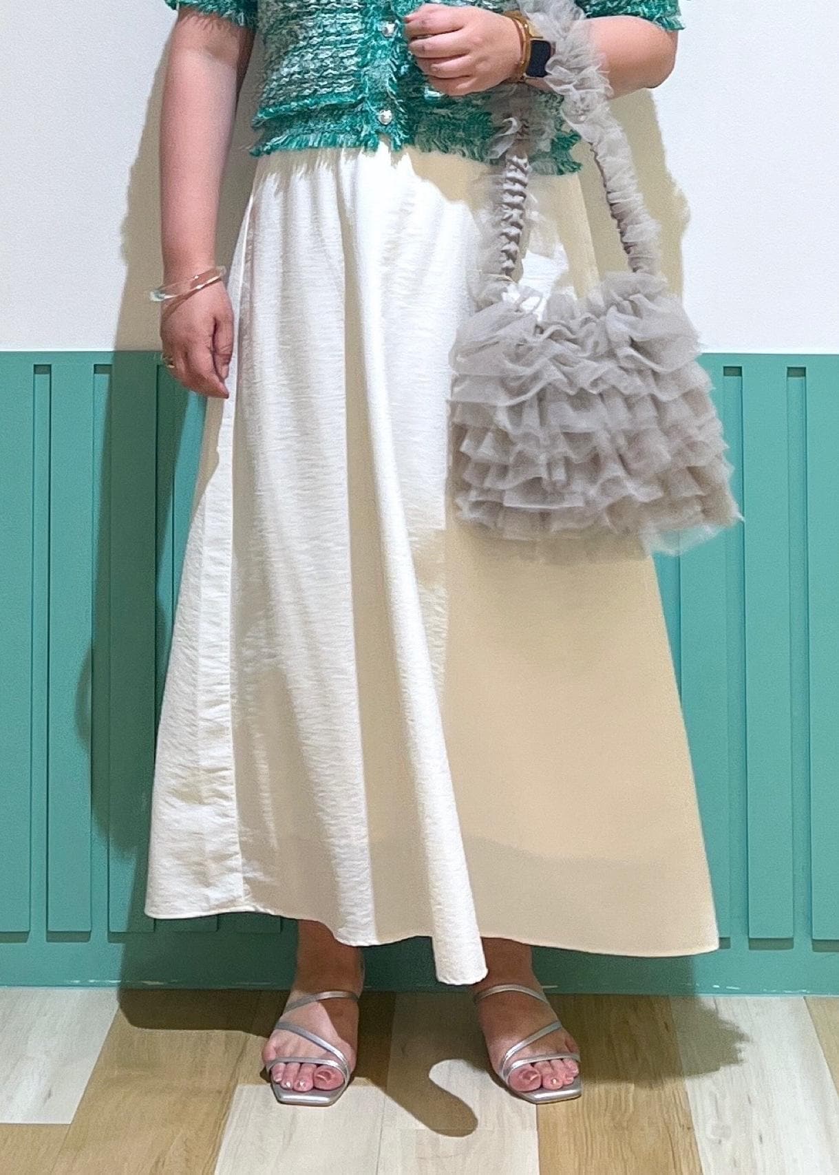 ホワイトのスカートと合わせたフェミニンスタイル♪
