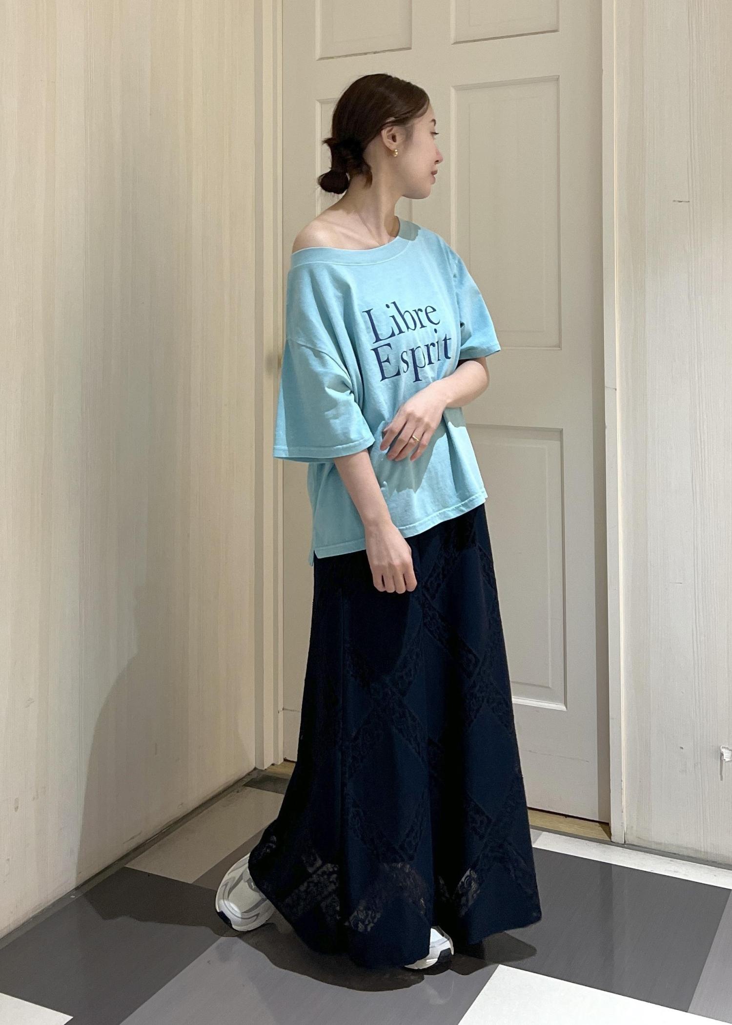 オフショルトップスに、ロングスカートでゆるっとまとめてみました◎