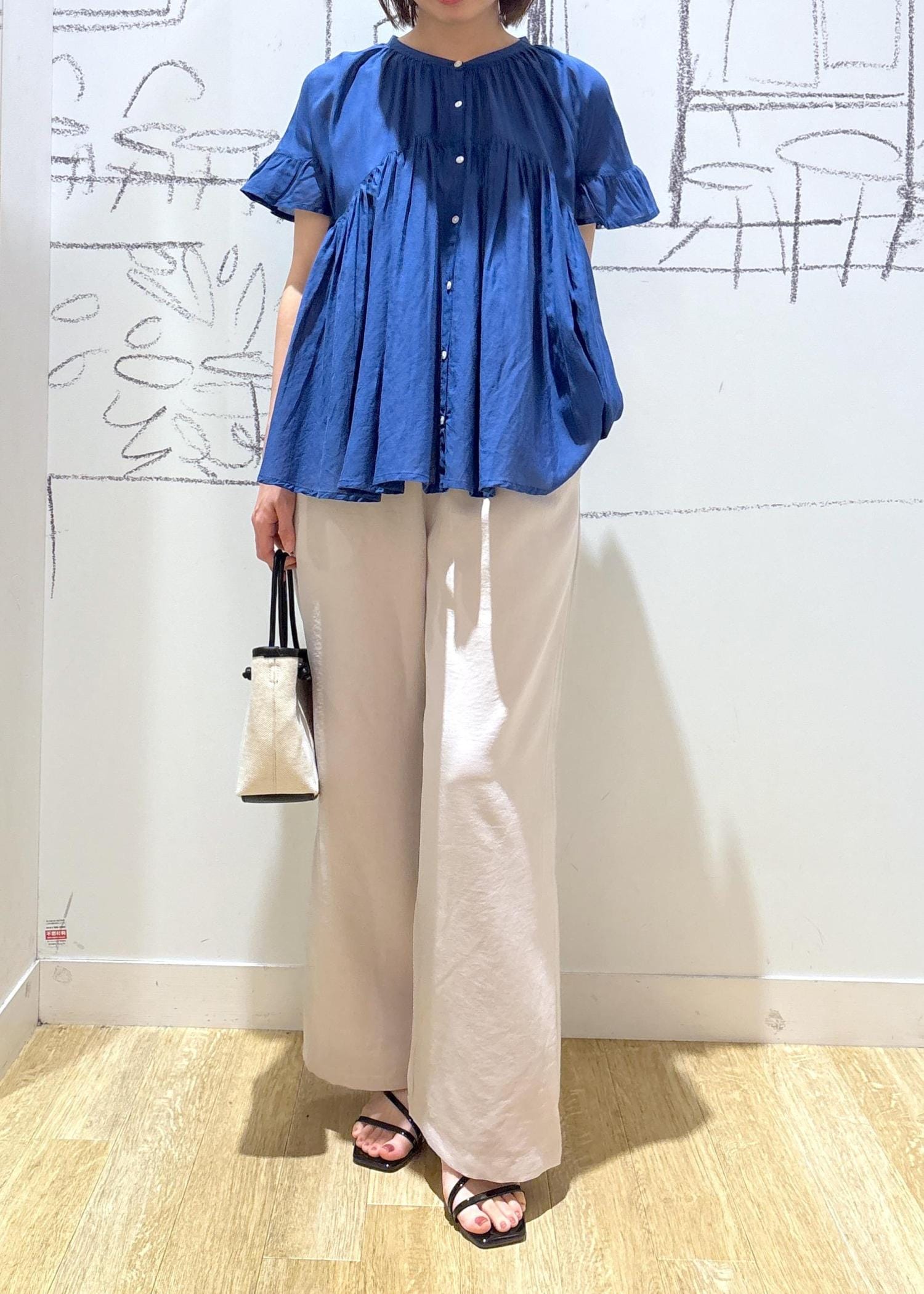 コットンボイルギャザーブラウス/リンクコーデ