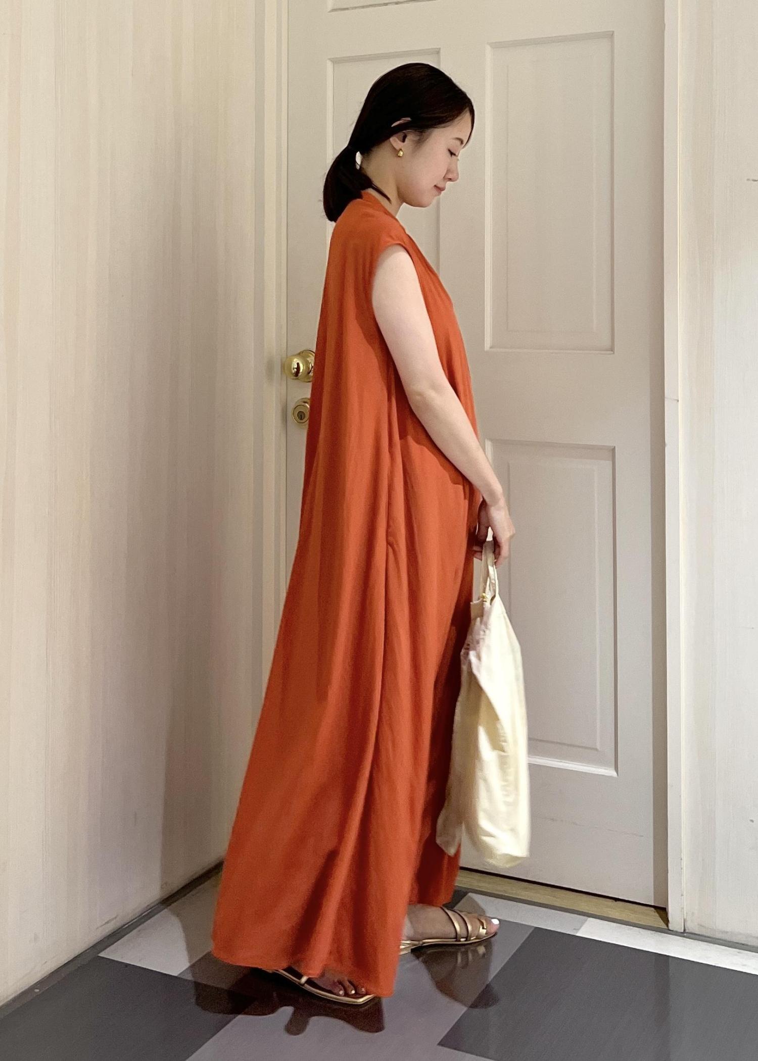 ROPÉ PICNICリラックススキッパーロングワンピースオレンジ / 38¥6,490レビューしっかりとボリュームがあるデザインで、高見えしました。さらっとした素材でカジュアルすぎず、上品な印象に。